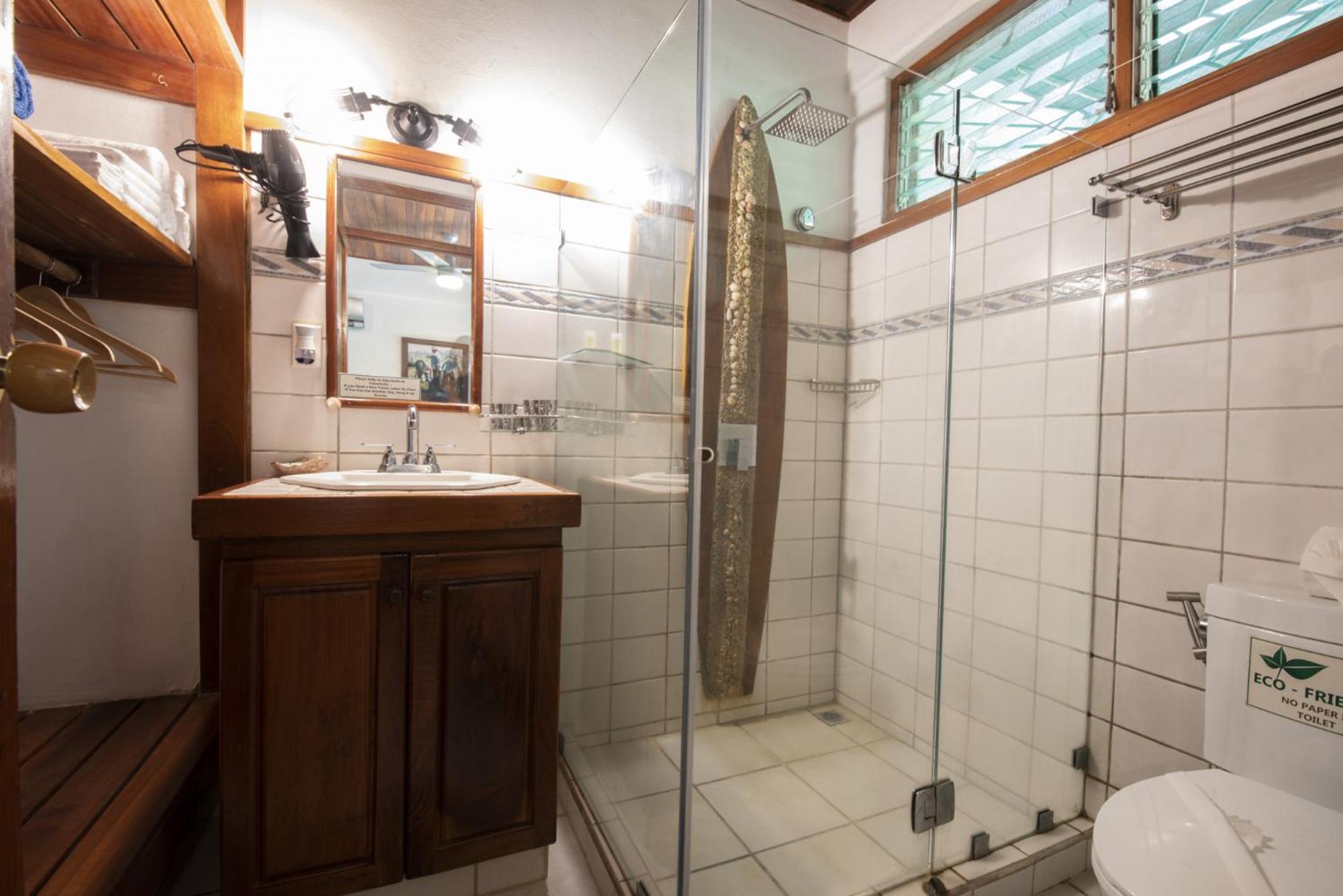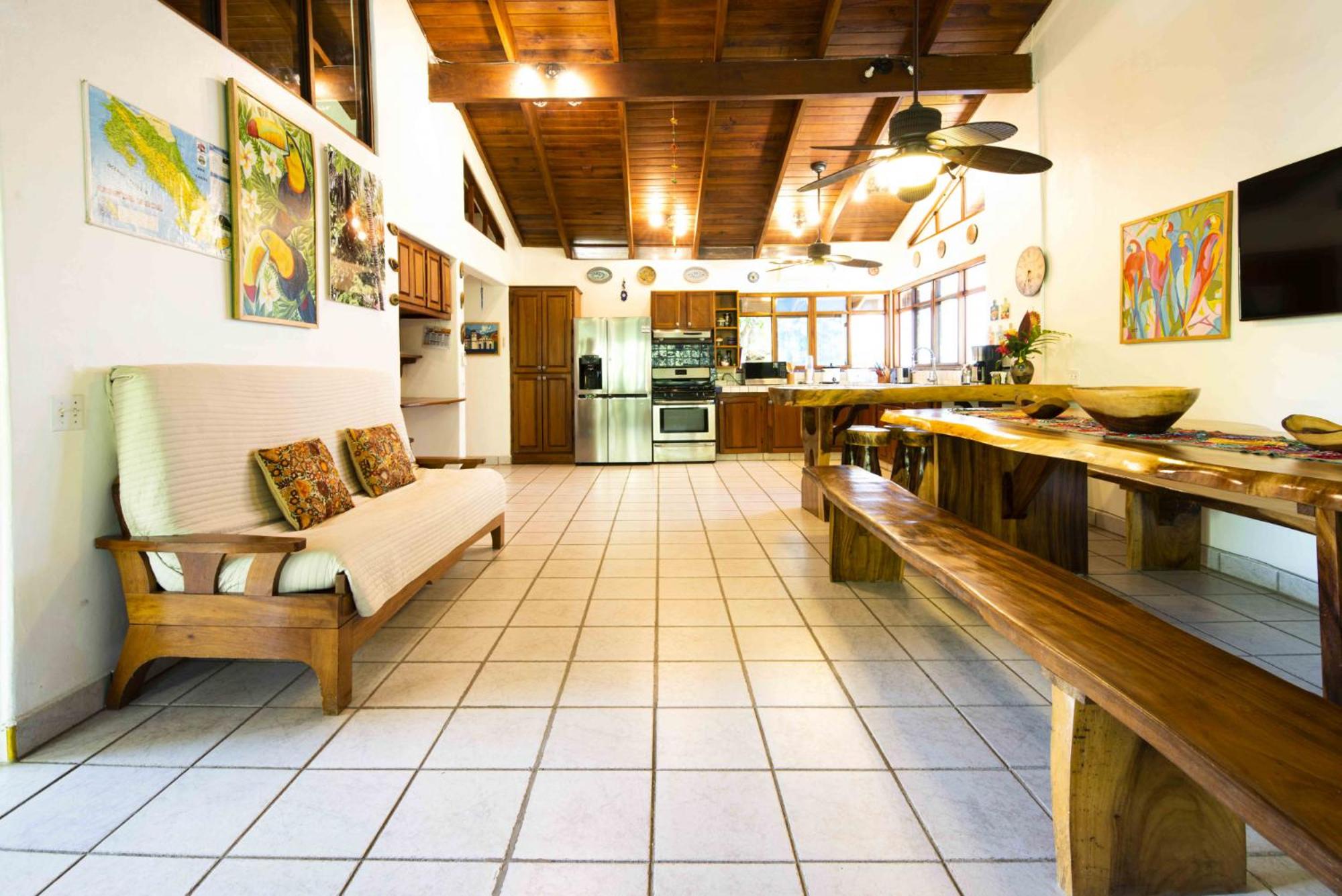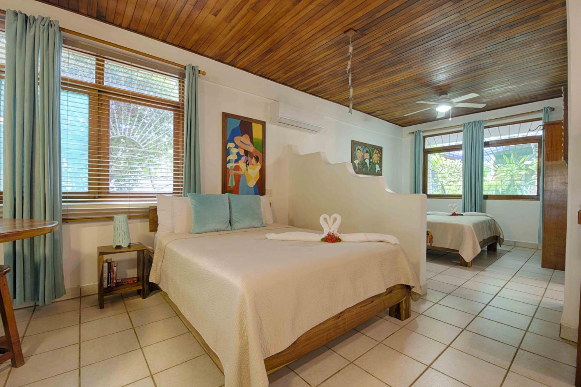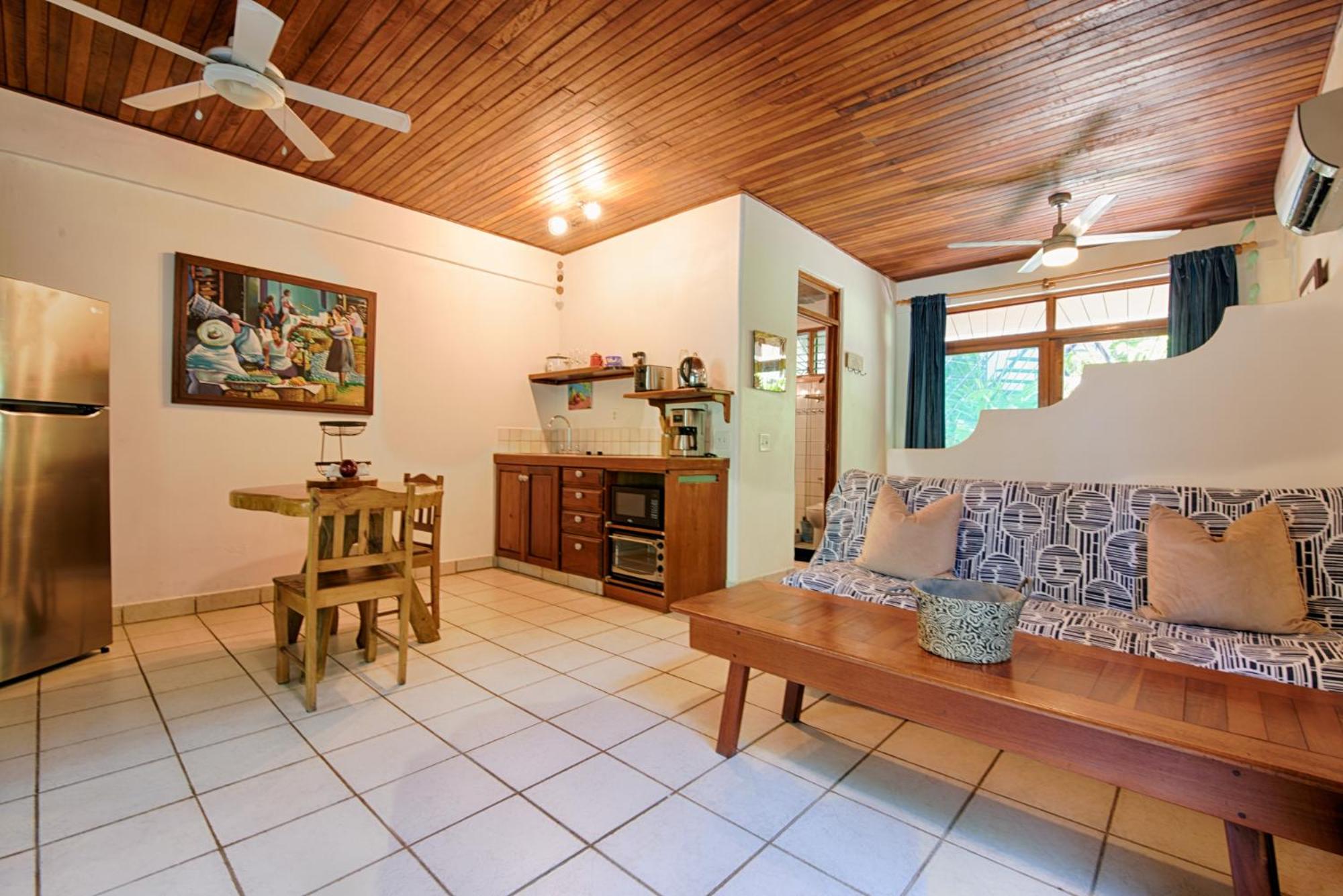 We booked two rooms. The large house is absolutely stunning. Each separate apartment has its own character with interesting decorations, neat wood furniture, and private patios. The patios overlook a beautiful garden and the pool. We spent a lot of time in the hammocks and at the patio tables. The rooms are quiet - it seems as if the building is very good at reducing noise levels. The location is superb - a quiet neighborhood, the path to the beach across the street, and just down the road a few minutes is the path to Playa Langosta too. Couldn’t get any better. So thankful we were able to stay here. The staff were amazing and friendly. They helped me work on my Spanish conversation skills and the property manager helped me out on a couple of issues (self-caused issues like me forgetting my room passcode).