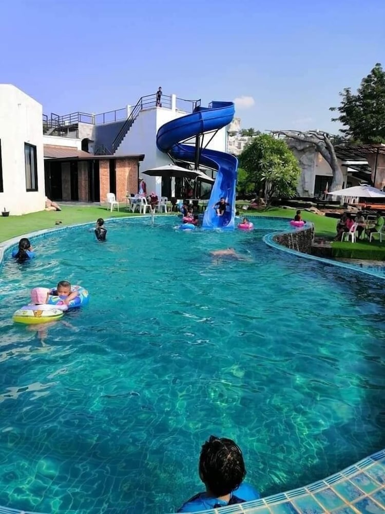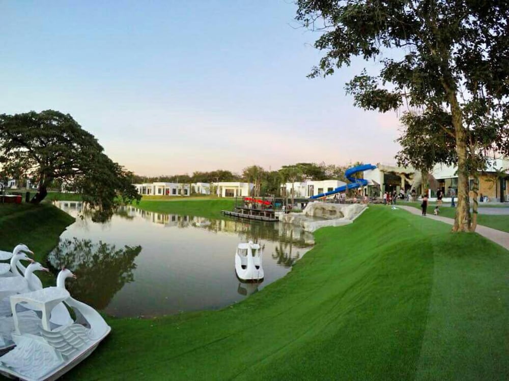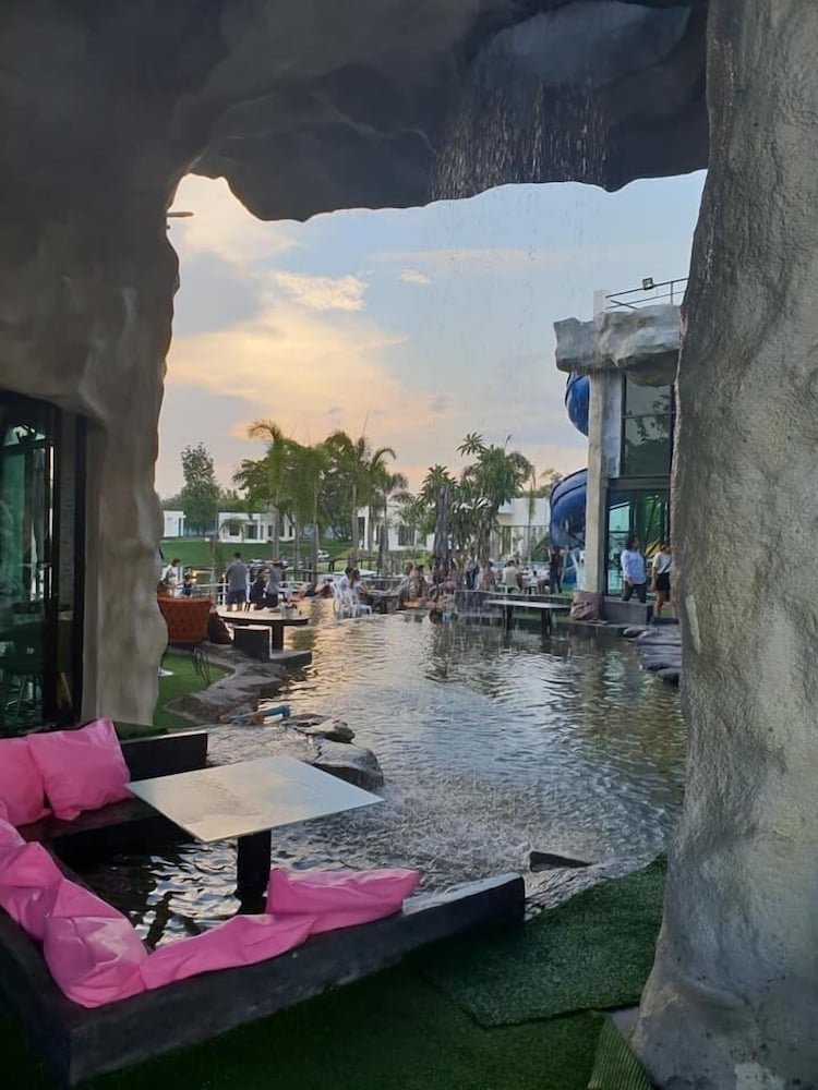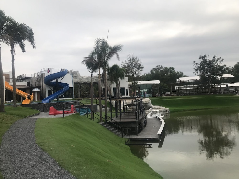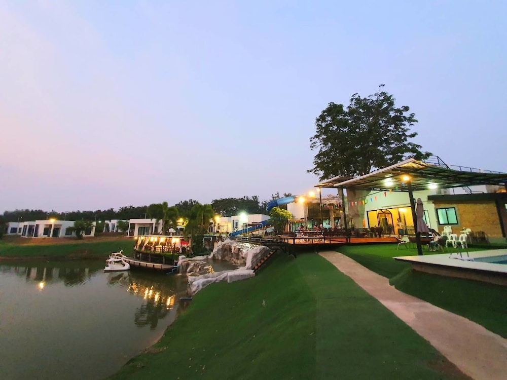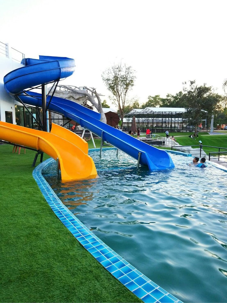 Nice place with pool, lake and water slides. Great to watch the sunset from the roof terrace. Good starting point to visit red lotus lily lake, about 30 min drive away.