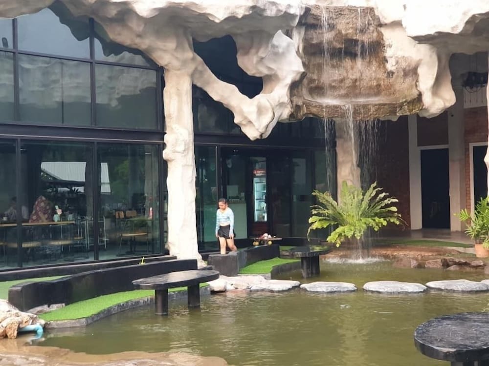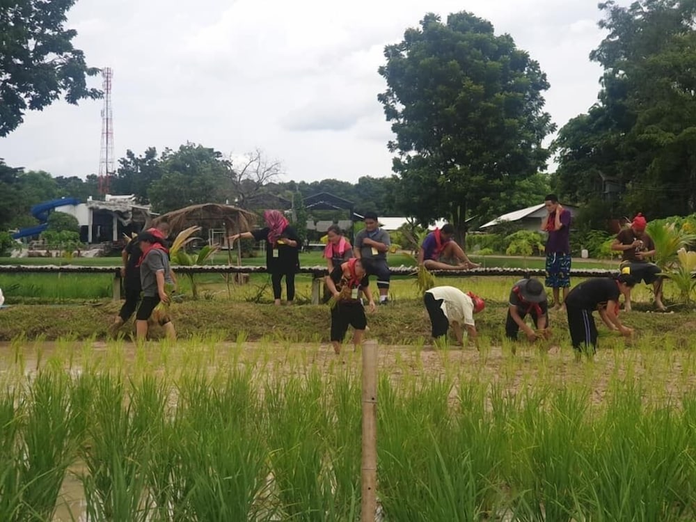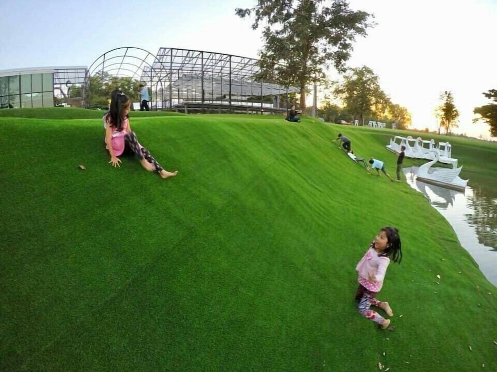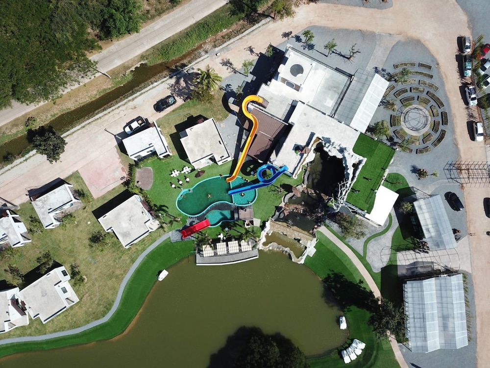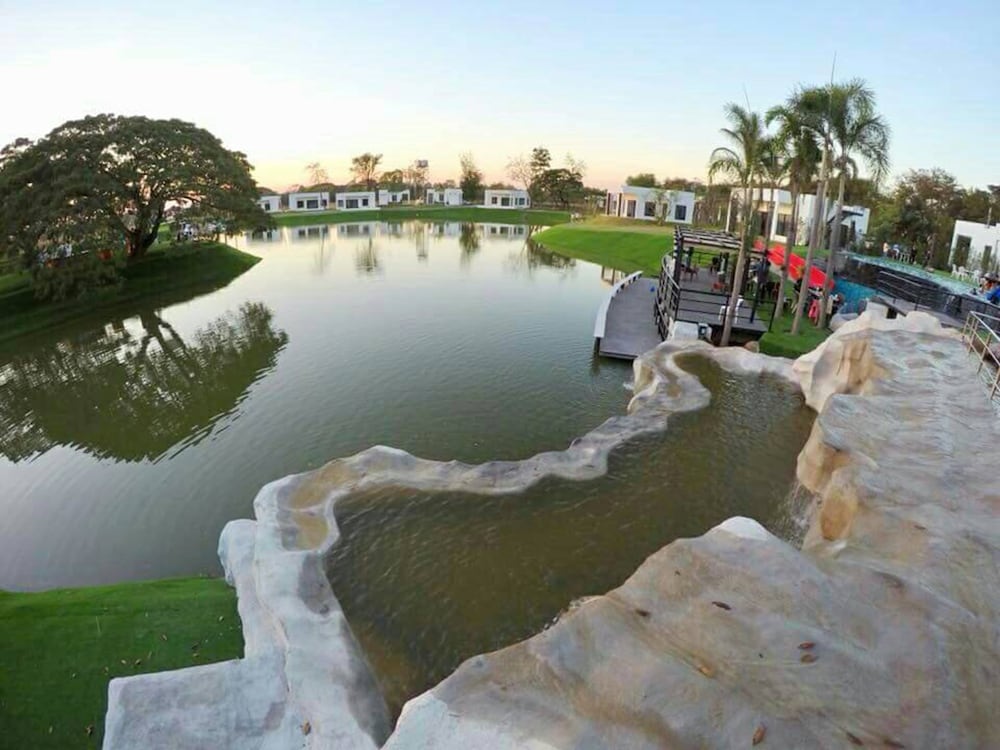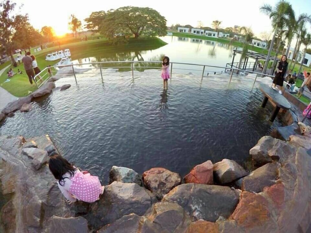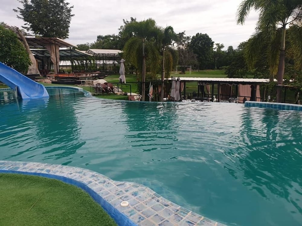 Nice place with pool, lake and water slides. Great to watch the sunset from the roof terrace. Good starting point to visit red lotus lily lake, about 30 min drive away.