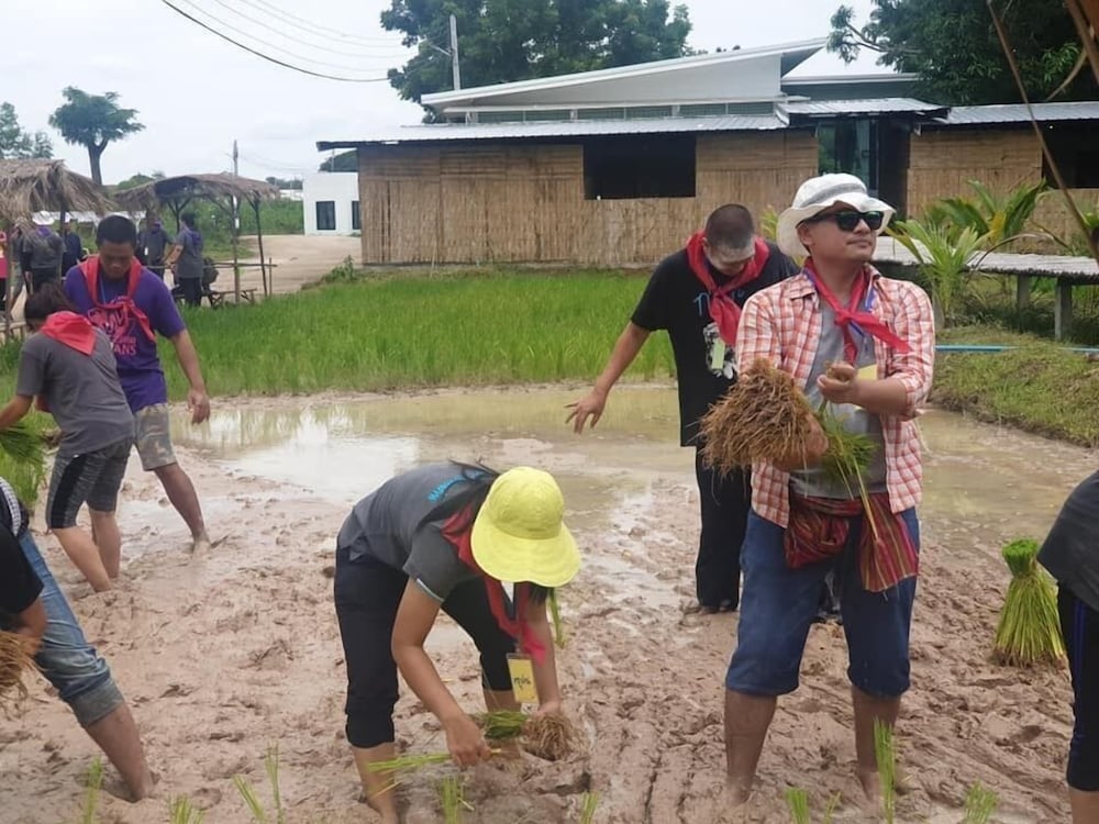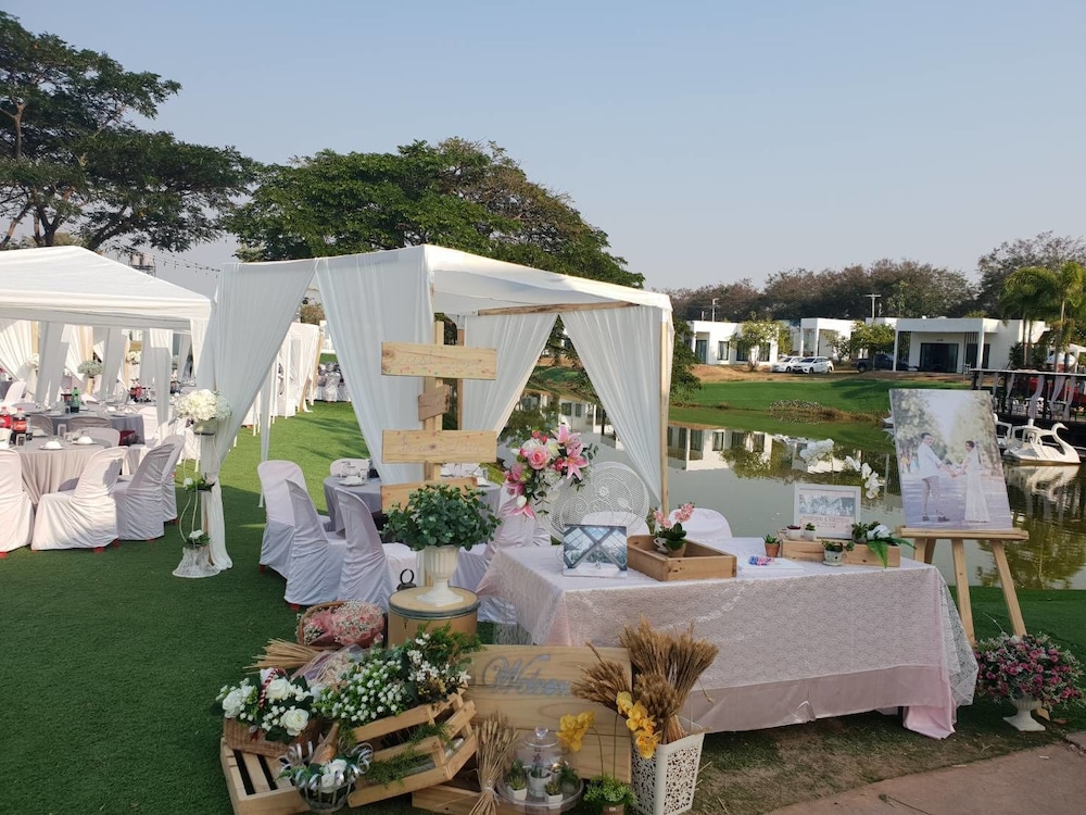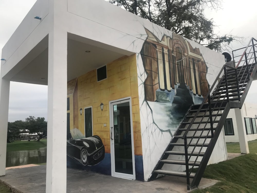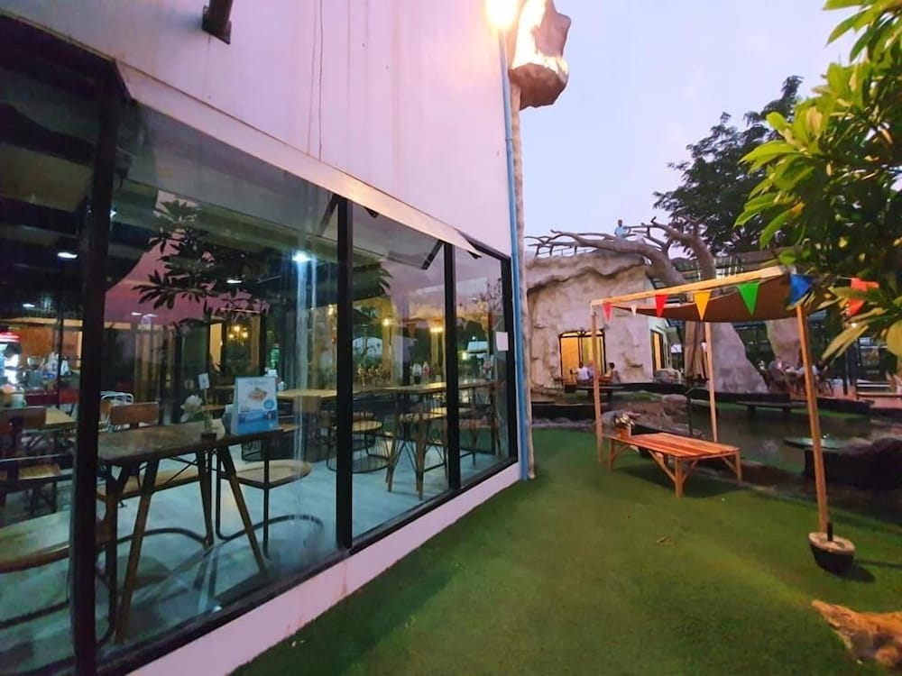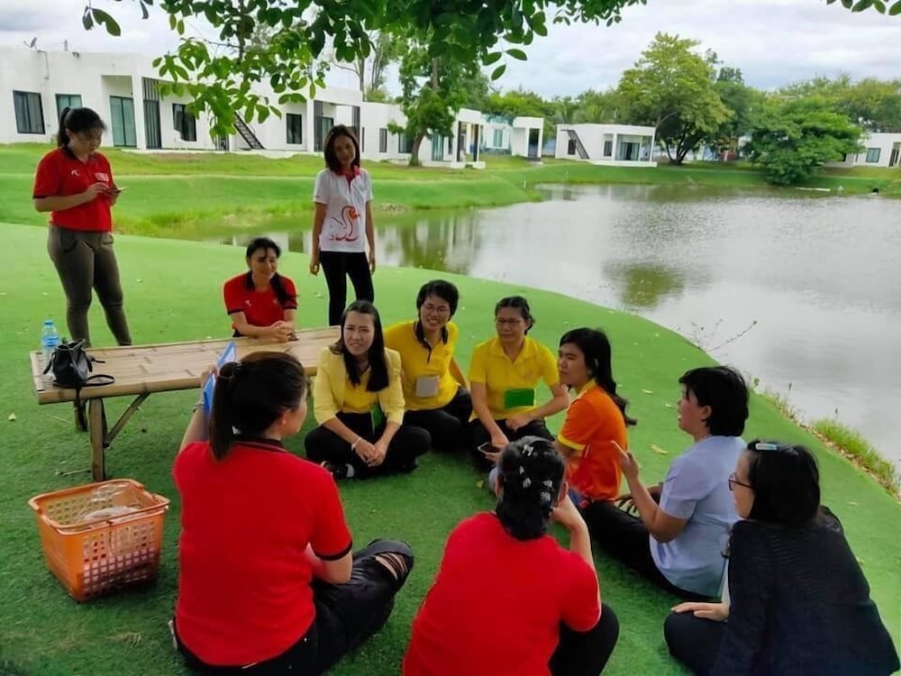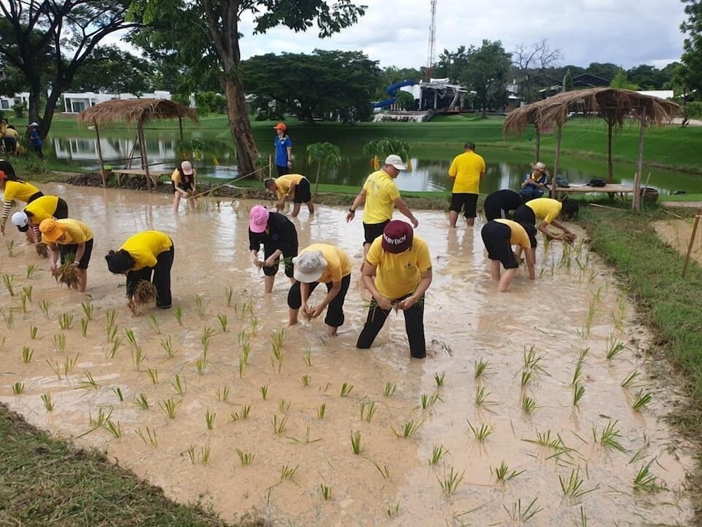 Nice place with pool, lake and water slides. Great to watch the sunset from the roof terrace. Good starting point to visit red lotus lily lake, about 30 min drive away.