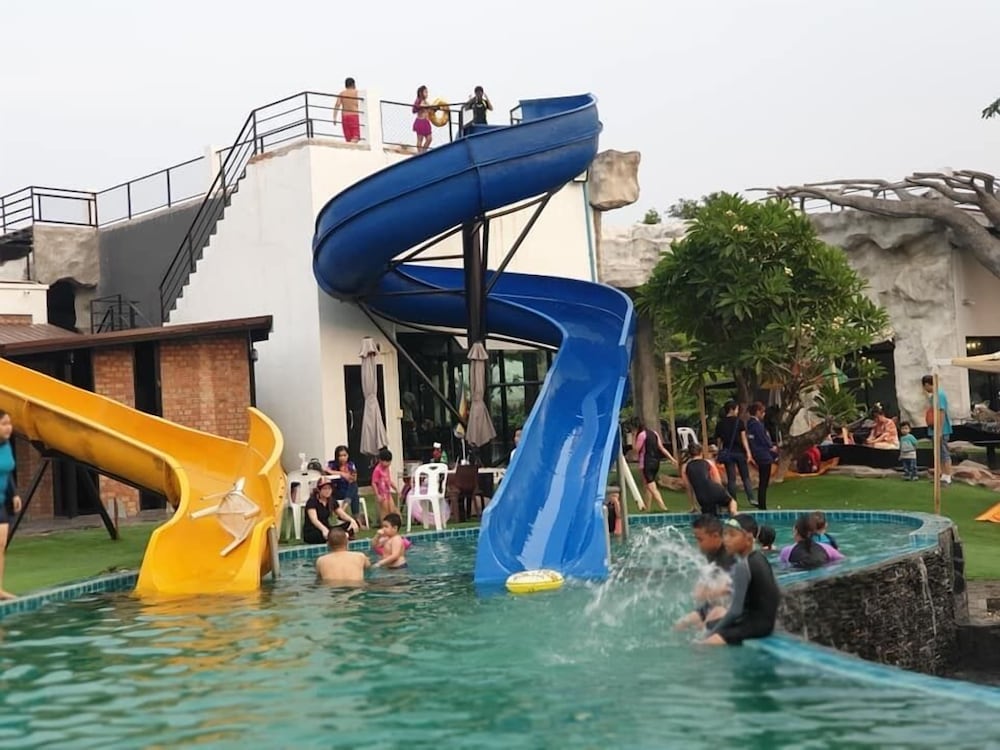 Immerse yourself in fun with our outdoor pool and waterslide, perfect for relaxation and enjoyment during your stay.