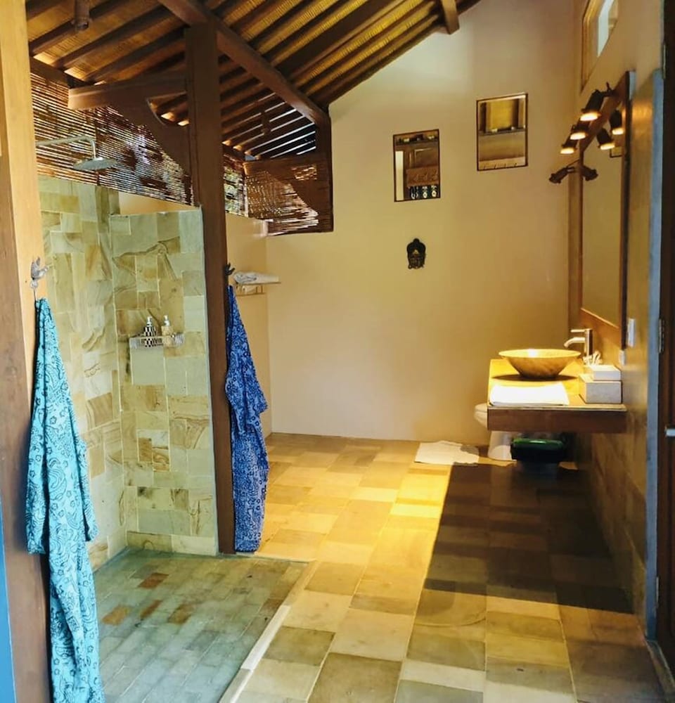 Although my son and his wife enjoyed their bedroom with the adjacent ‘outdoor bathroom’, I’m glad to have the bathroom which was enclosed next to the other bedroom. It’s nice to look at a ‘bathroom within nature’ but the vulnerability for me would have been too much.