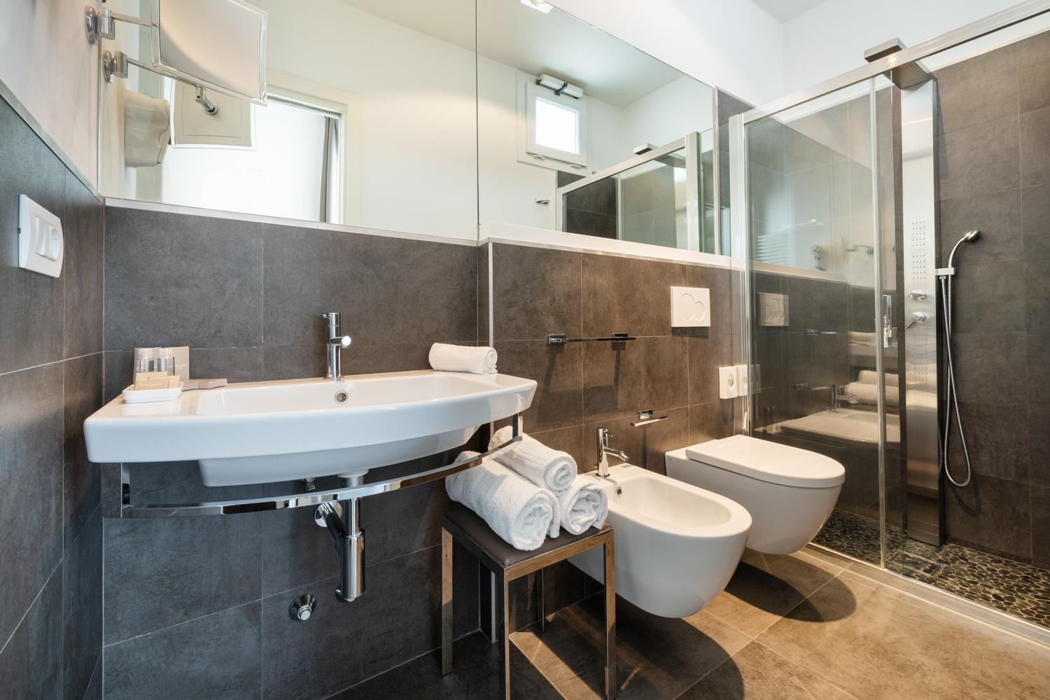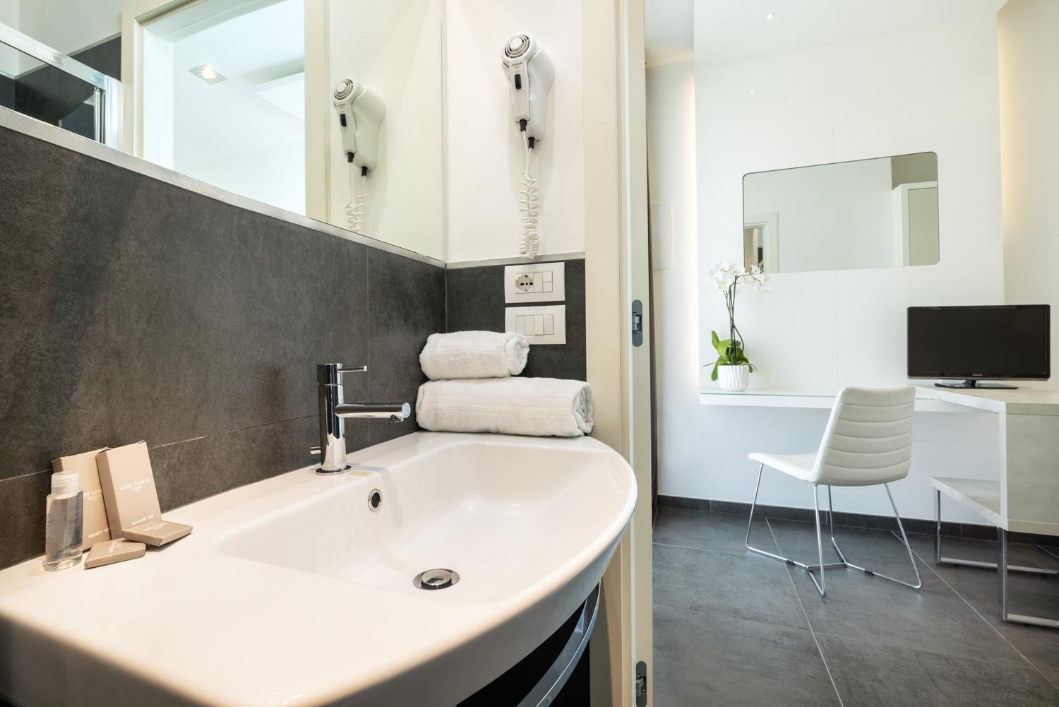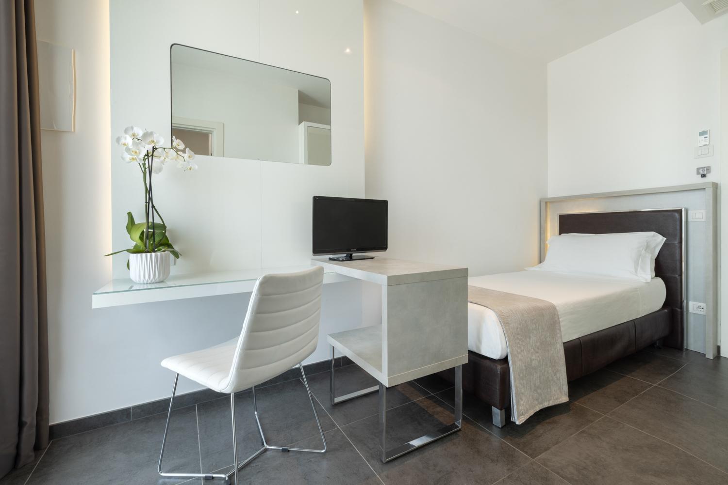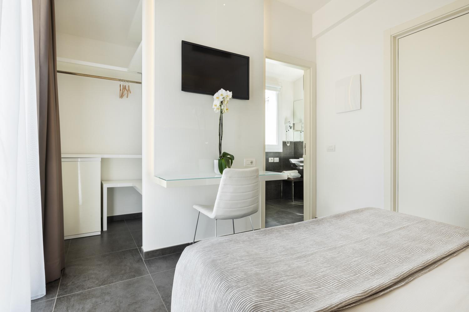 The rooms at Baldinini Hotel offer a perfect blend of comfort and style, featuring a balcony, contemporary furnishings, air conditioning, free Wi-Fi, and a flat-screen TV. The well-equipped bathroom provides free toiletries and a hairdryer for your convenience.
