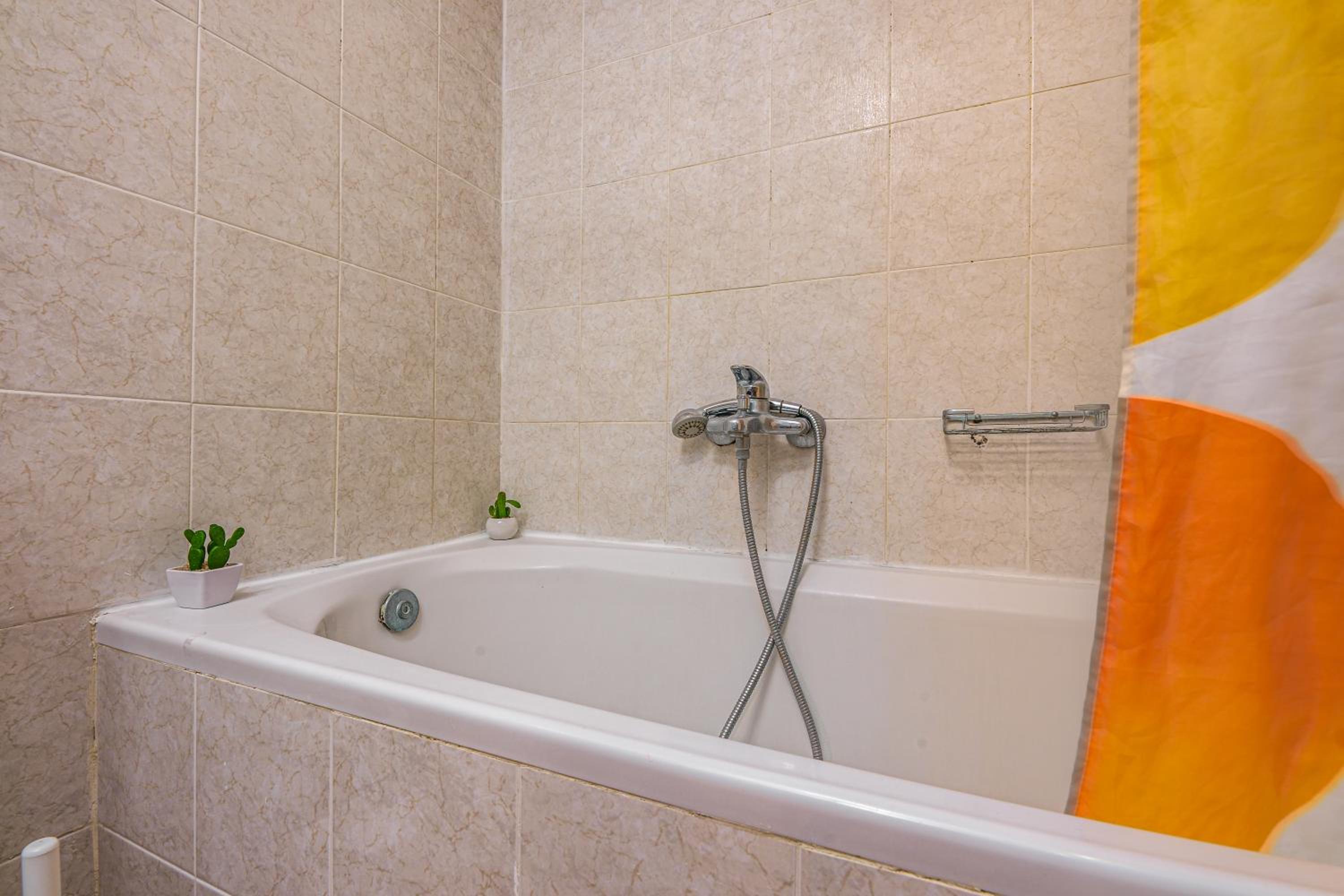 A szoba elég kicsi volt, hiányzott 1-2 ruhásszekrény, a fürdőszoba elég szűk