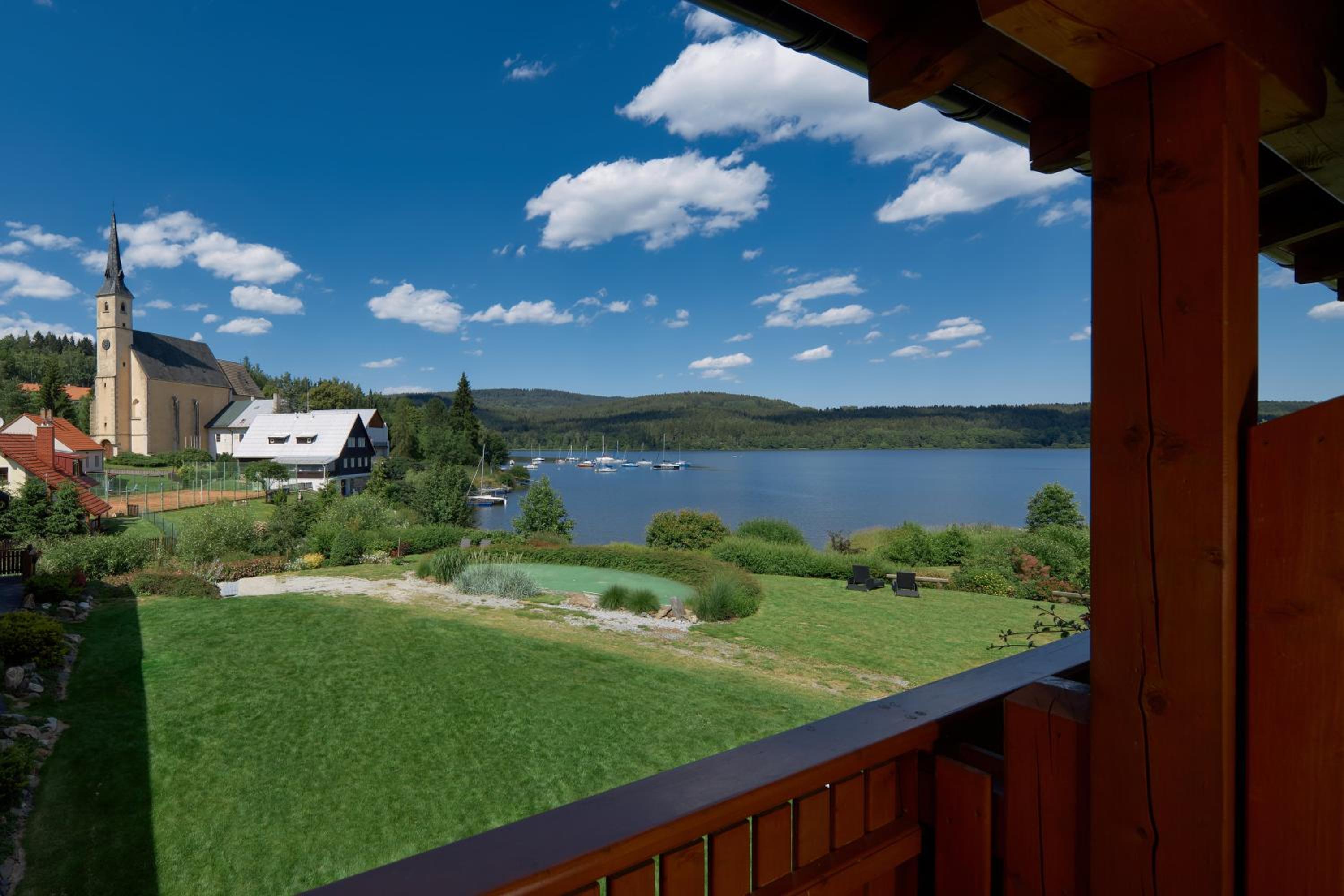 Hotel Albatros, nestled on the shores of Lipno Lake, offers picturesque lake views from rooms with balconies. Enjoy the luxury of a sauna, outdoor whirlpool, and a massage chair.