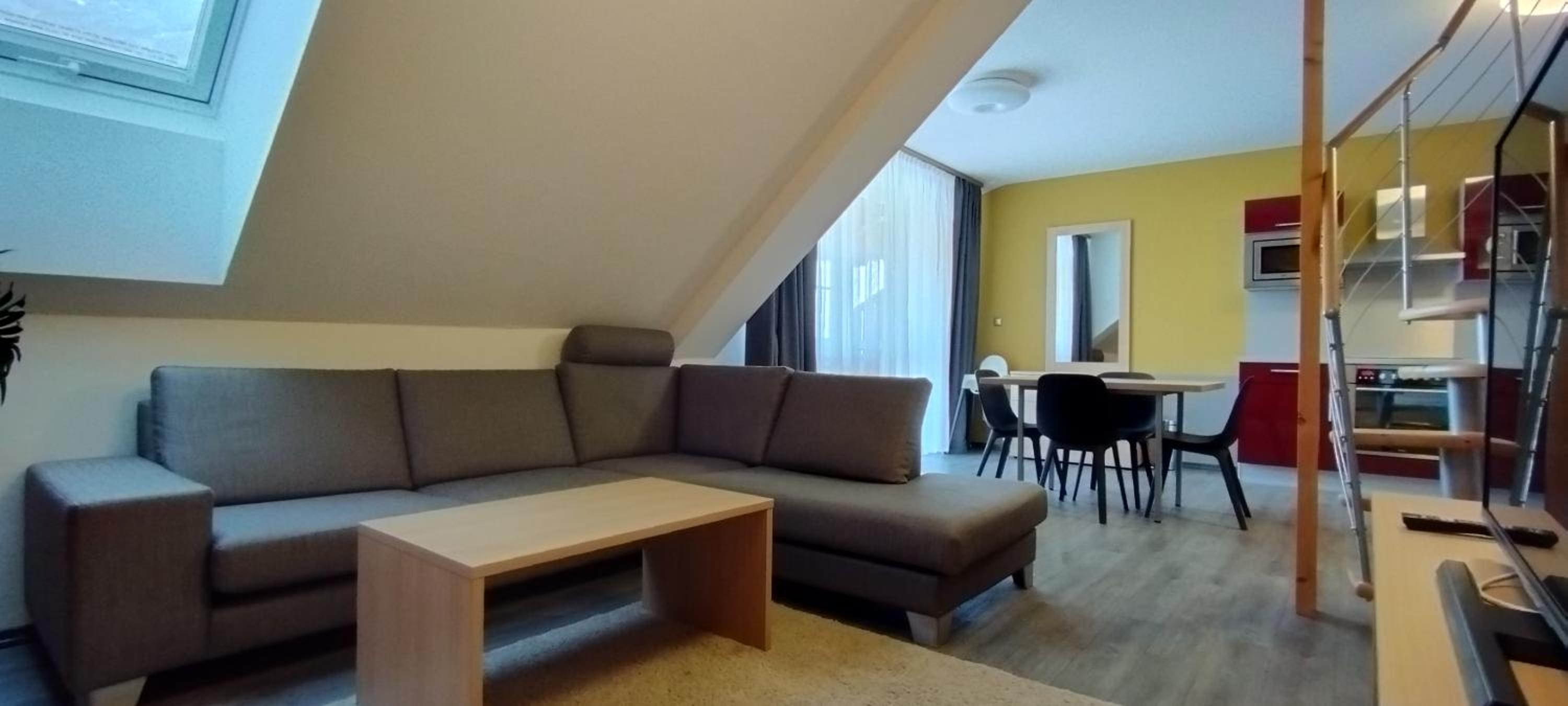Hotelzimmer schlicht und funktional mit kl Küche.