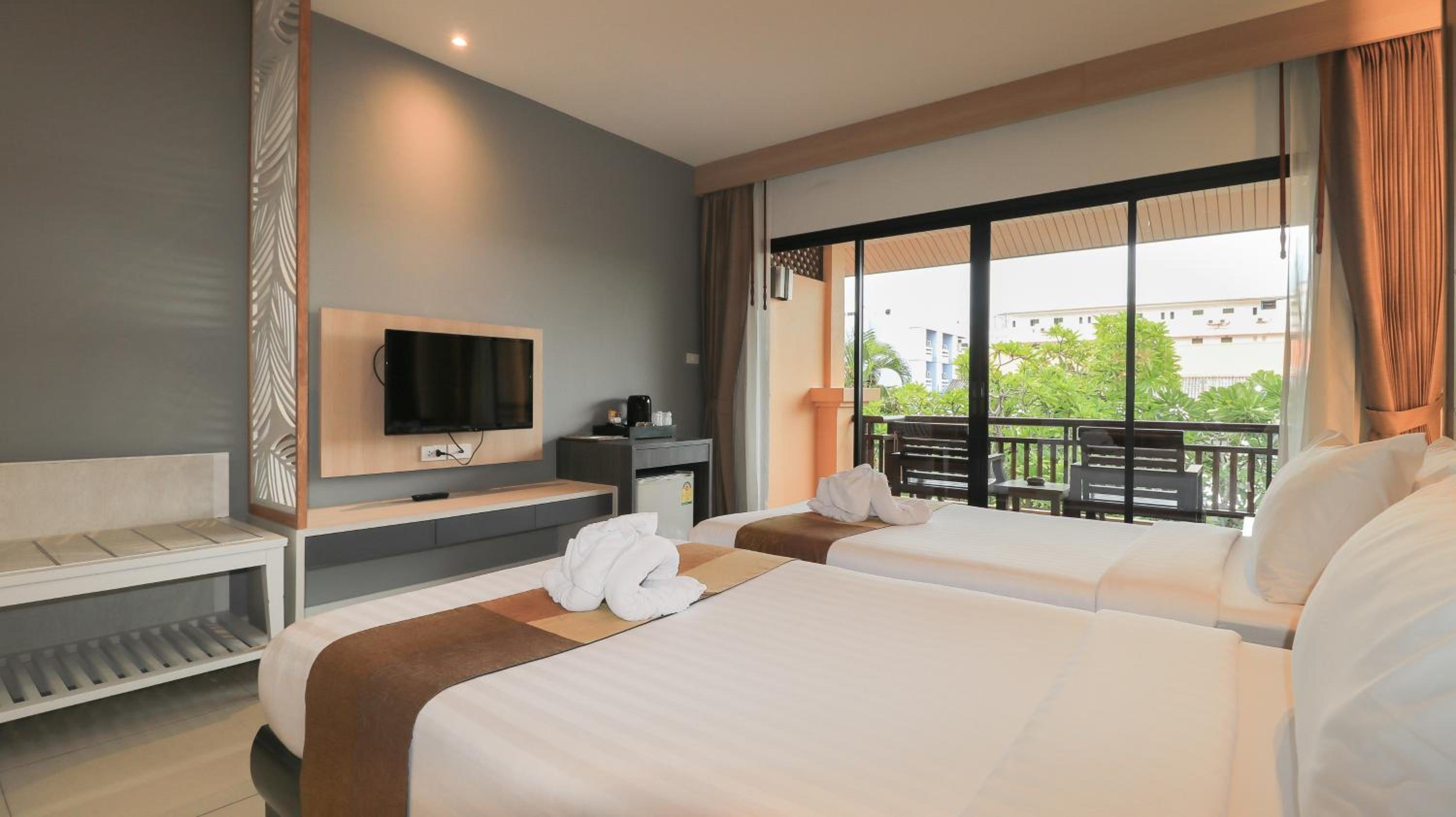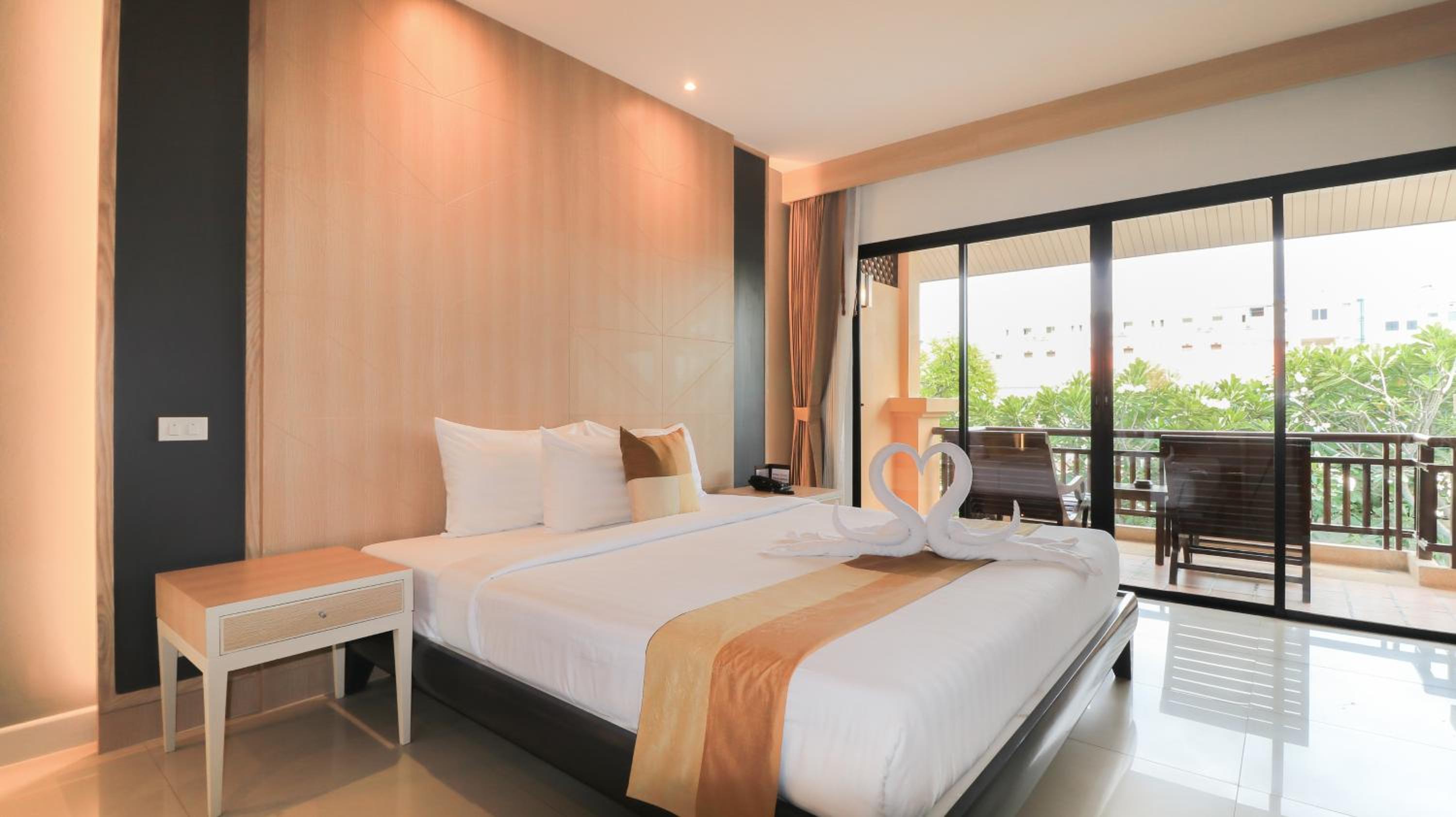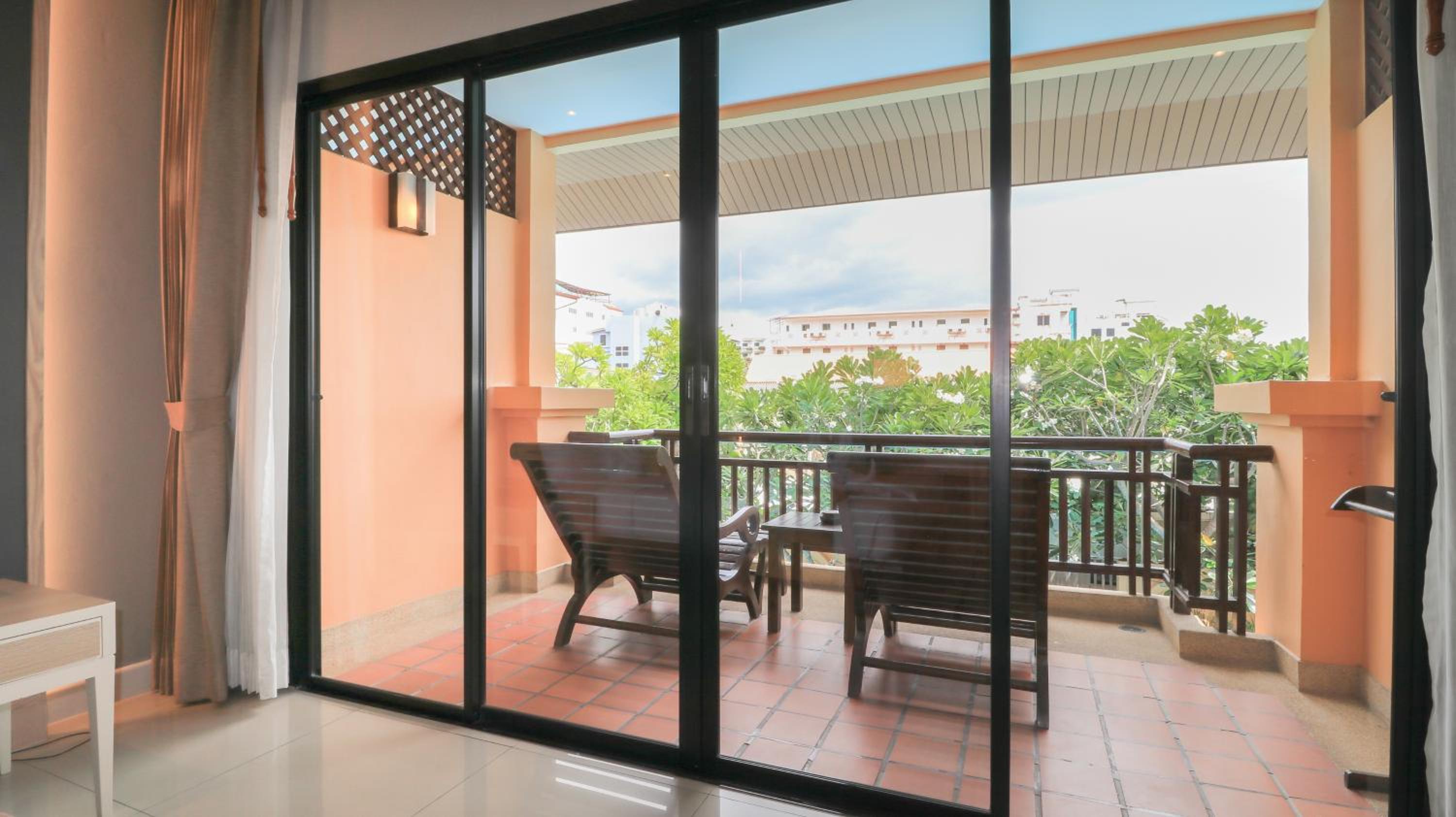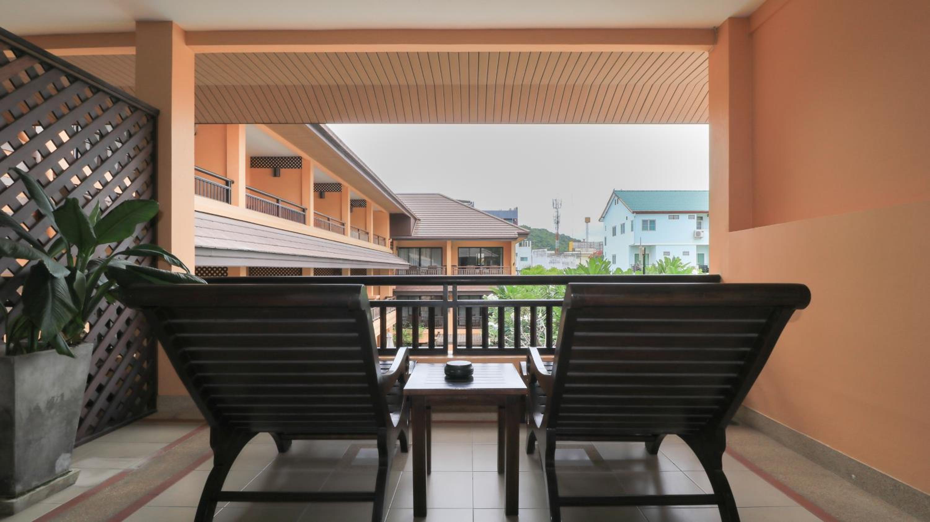 Experience comfort and elegance at La Maison Hua Hin with spacious rooms featuring private balconies overlooking the outdoor pool. Each room boasts dark wood furnishings, decorative artwork, and modern amenities like cable TV and a safety deposit box.