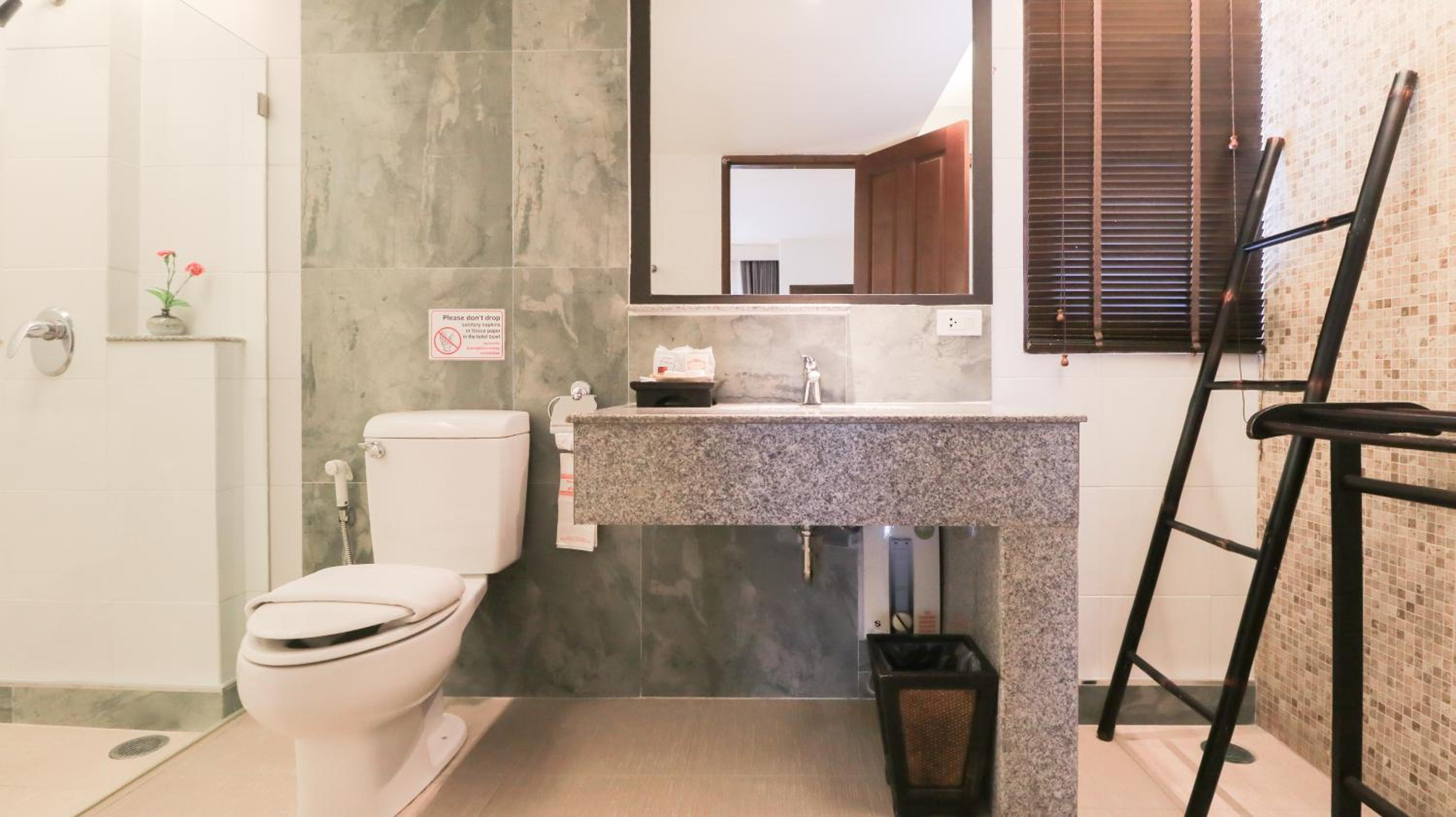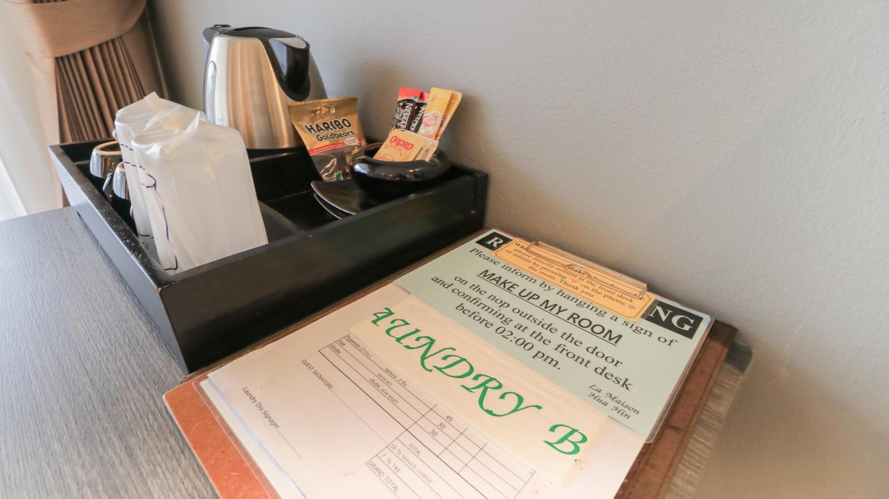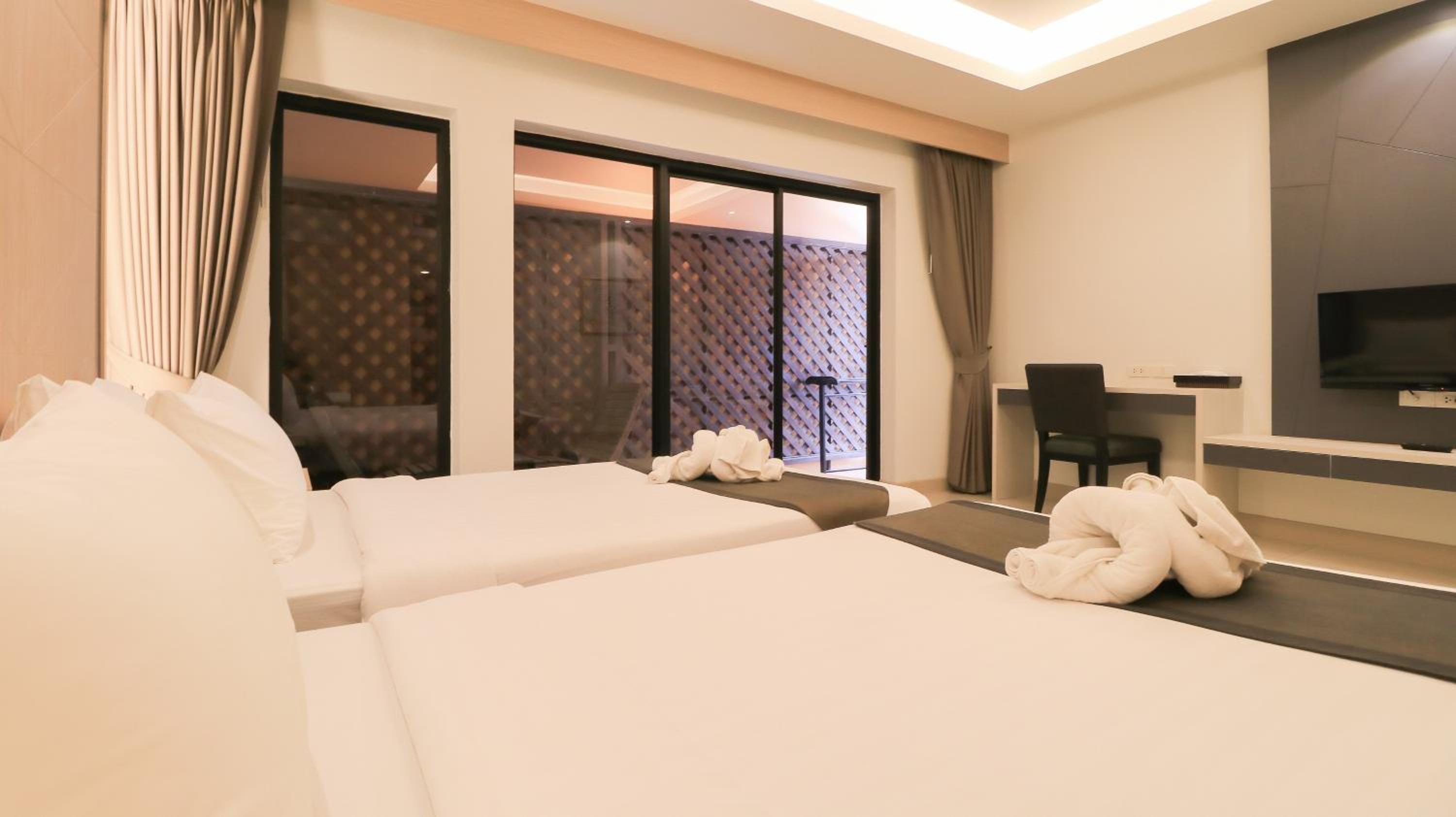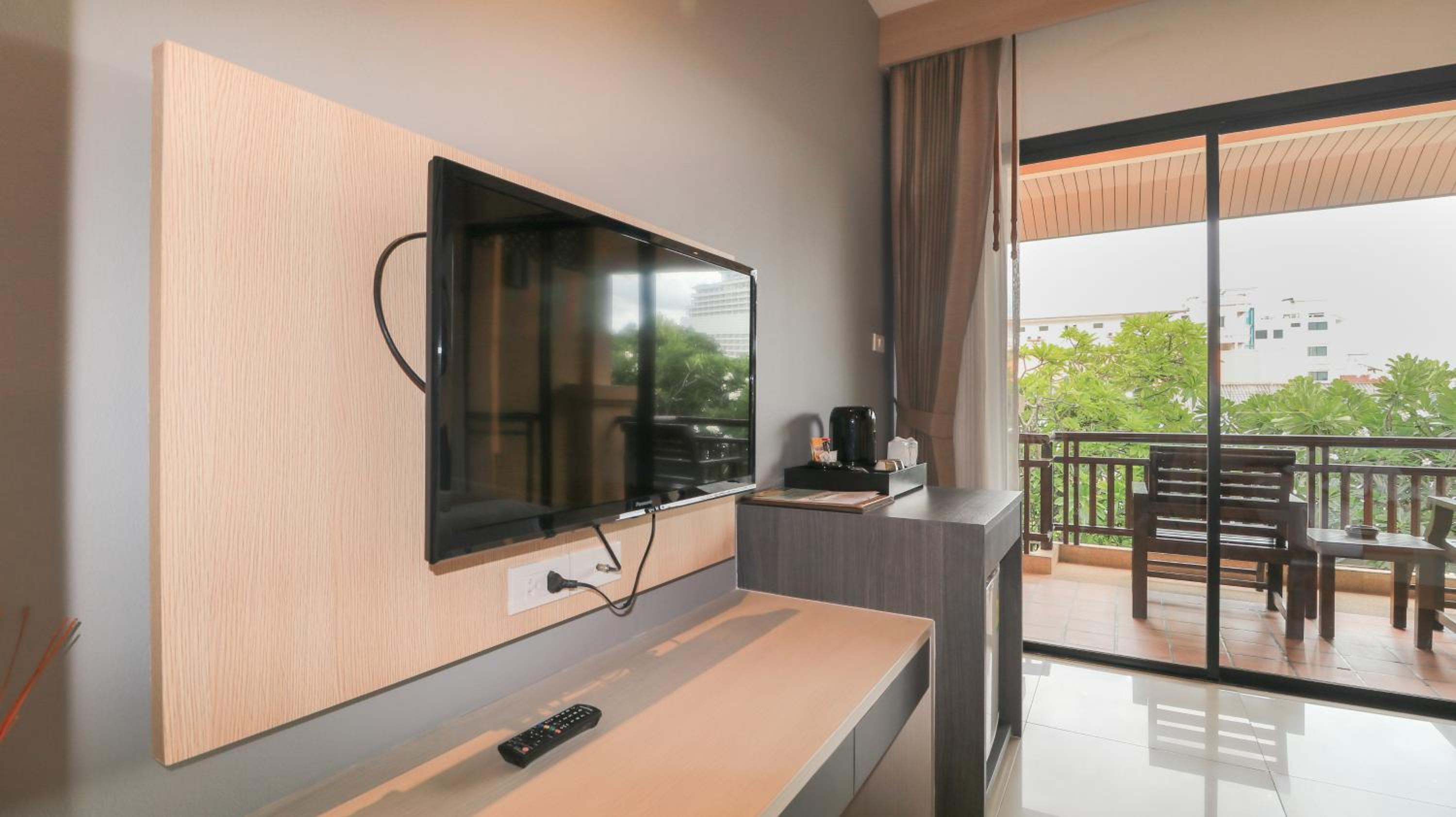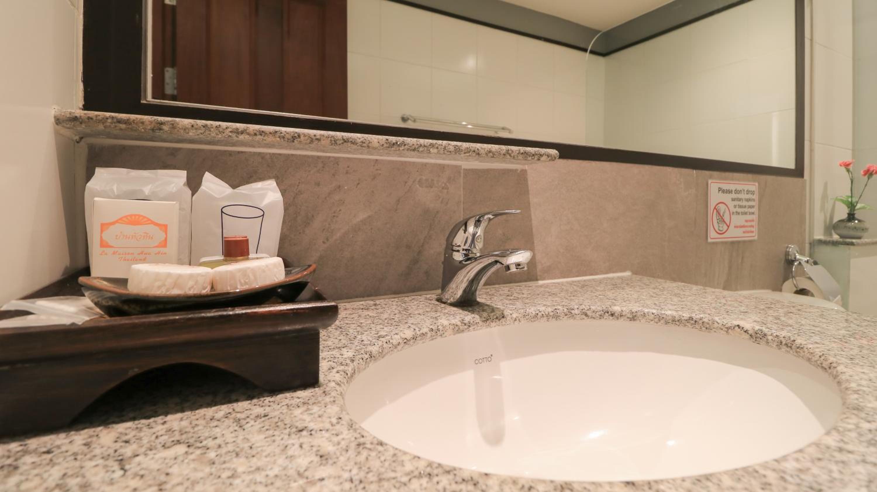 Experience comfort and elegance at La Maison Hua Hin with spacious rooms featuring private balconies overlooking the outdoor pool. Each room boasts dark wood furnishings, decorative artwork, and modern amenities like cable TV and a safety deposit box.