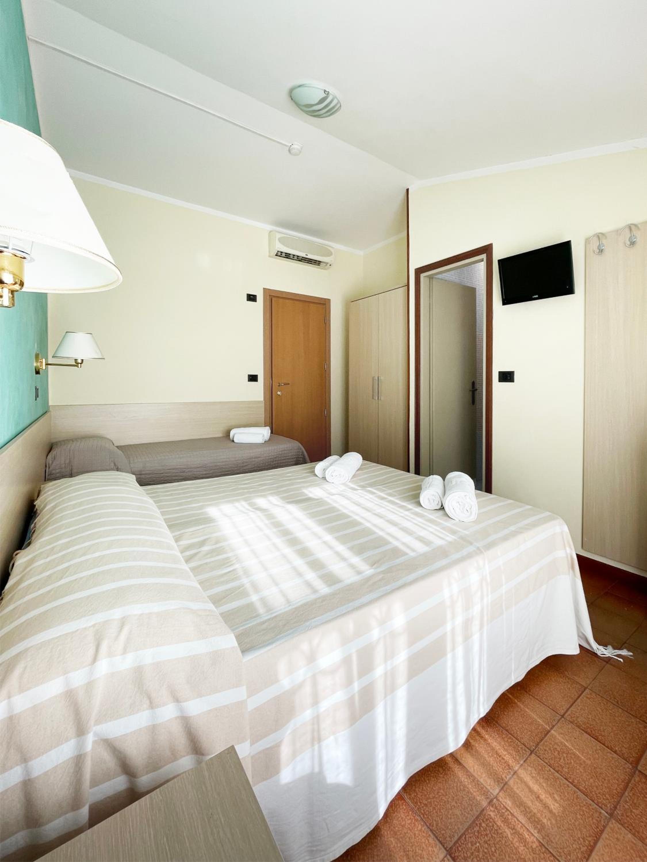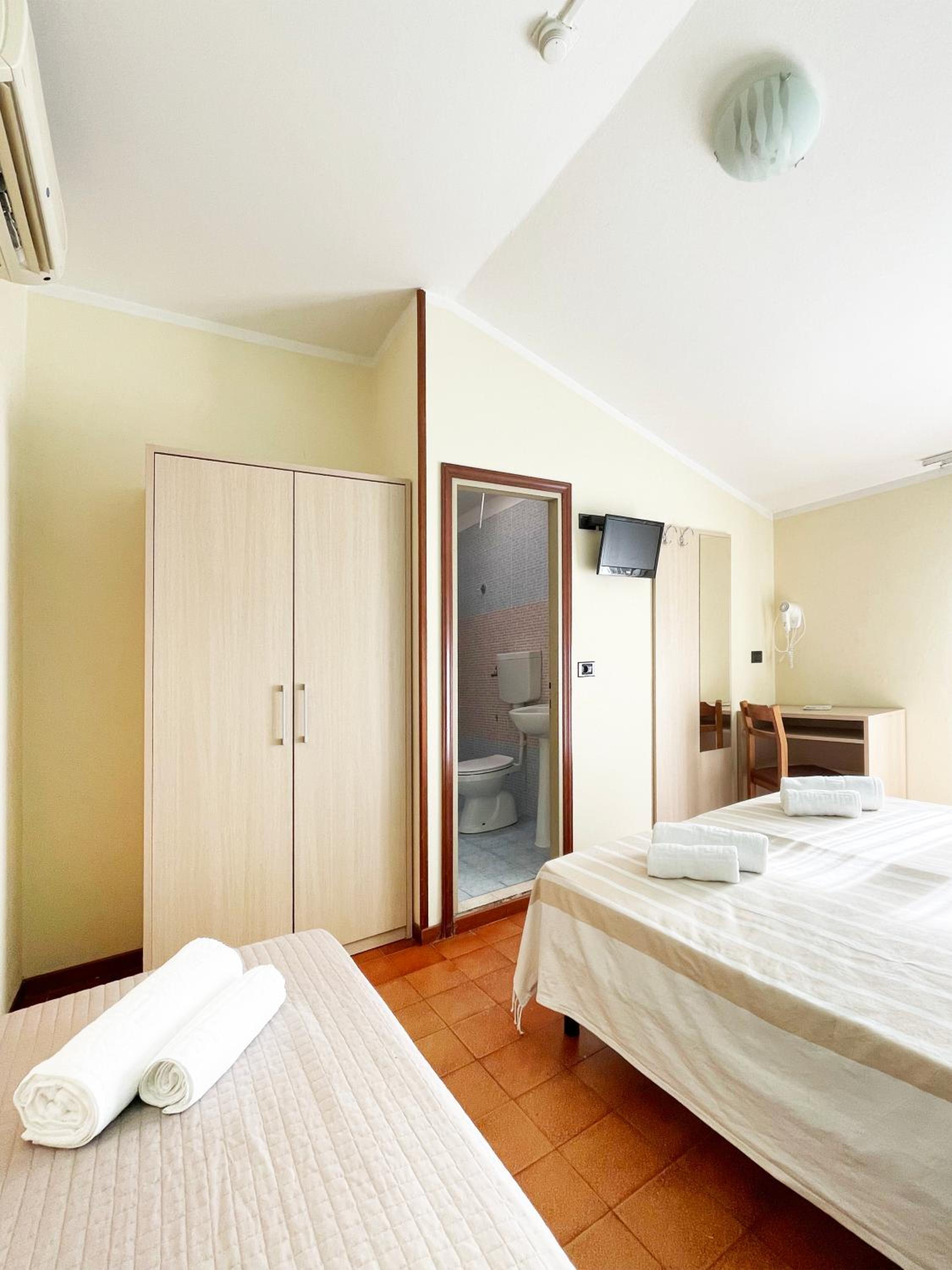 Hotel molto scadente gestito in modo improvvisato e senza un'etica e un rispetto per l'ospite. Esperienza del tutto negativa in visita a Rimini per la fiera. Camera gelata e acqua gelata sia la sera all'arrivo che la mattina dopo (quindi me ne sono andato chiedendo il giusto e dovuto rimborso non per la notte in cui ho dormito ma per qauelle a venire) che il giorno dopo quando ho riportato la chiave che mi era rimasta in tasca (non avevevno quandi rimediato al problema nemmeno dopo che me ne fossi andato non potendo ammarlami con l'acua fredda) e continuavano ad affermare che l'acqua era calda in modo del tutto falso per non rimborsare. Hanno incassato la tassa di soggiorno senza che io abbia soggiornato e non l'hanno restituita, non hanno emesso nessuna fattura ad oggi dopo 10 gionri dal soggiorno e non hanno fatto alcun rimborso non solo della mia camera ma anche di quella della mia collaboratrice che non è venuta. Altri commenti su etica e correttezza penso siano superflui
