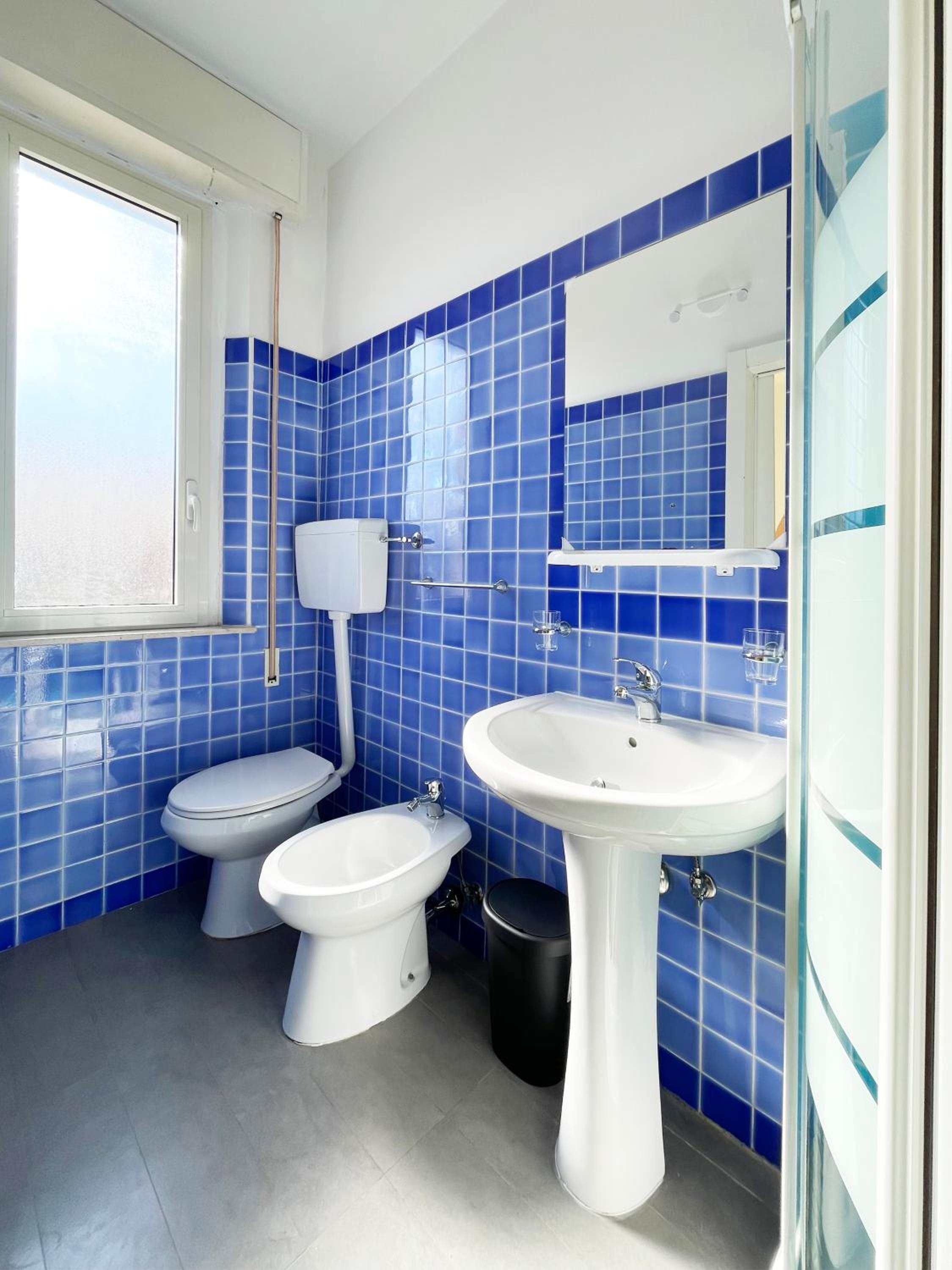 Bagno un po' piccolino, ma credo che a Rimini sia nello standard.