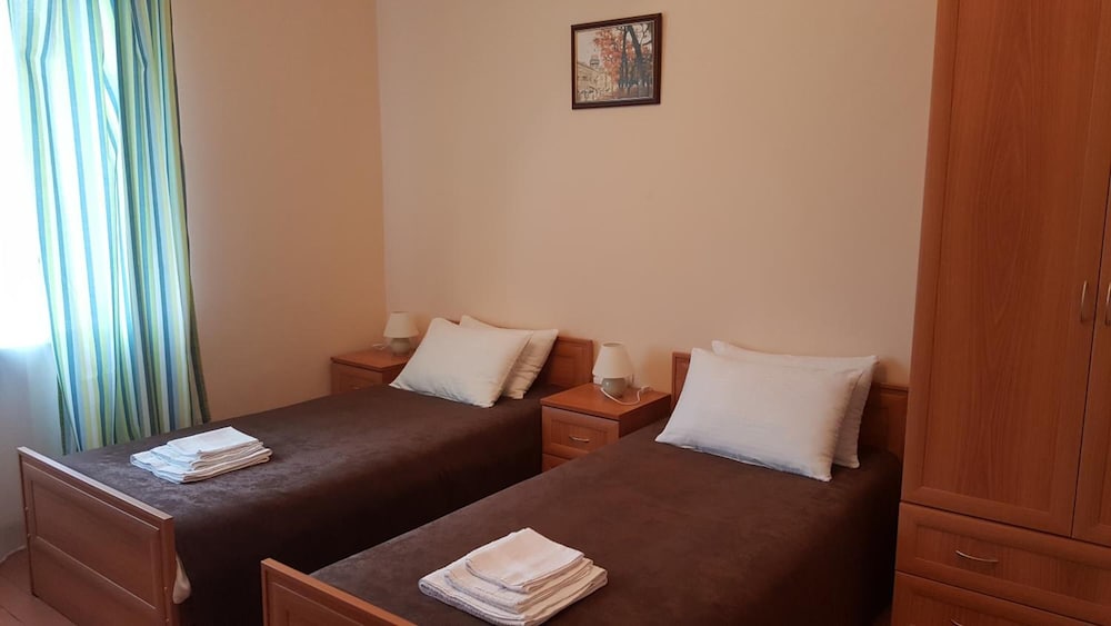 Номер оборудован всем необходимым, есть даже индивидуальные зубные щетки и паста. Отель находится в тихом месте, до фонтанов на машине 10 минут. В номере есть вентилятор. Нам все очень понравилось