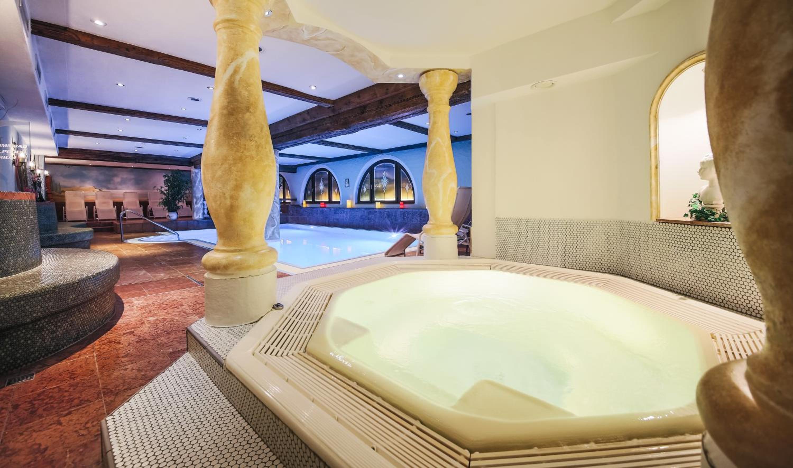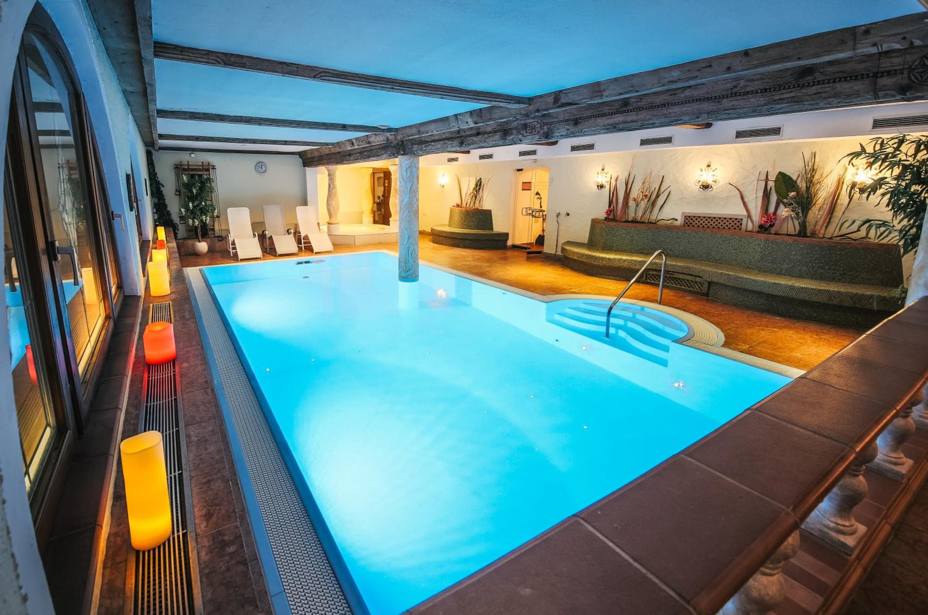 Indulge in relaxation at the spa area with an indoor pool, steam bath, hot tub, infrared cabin, and sauna - the perfect retreat after a day of adventure.