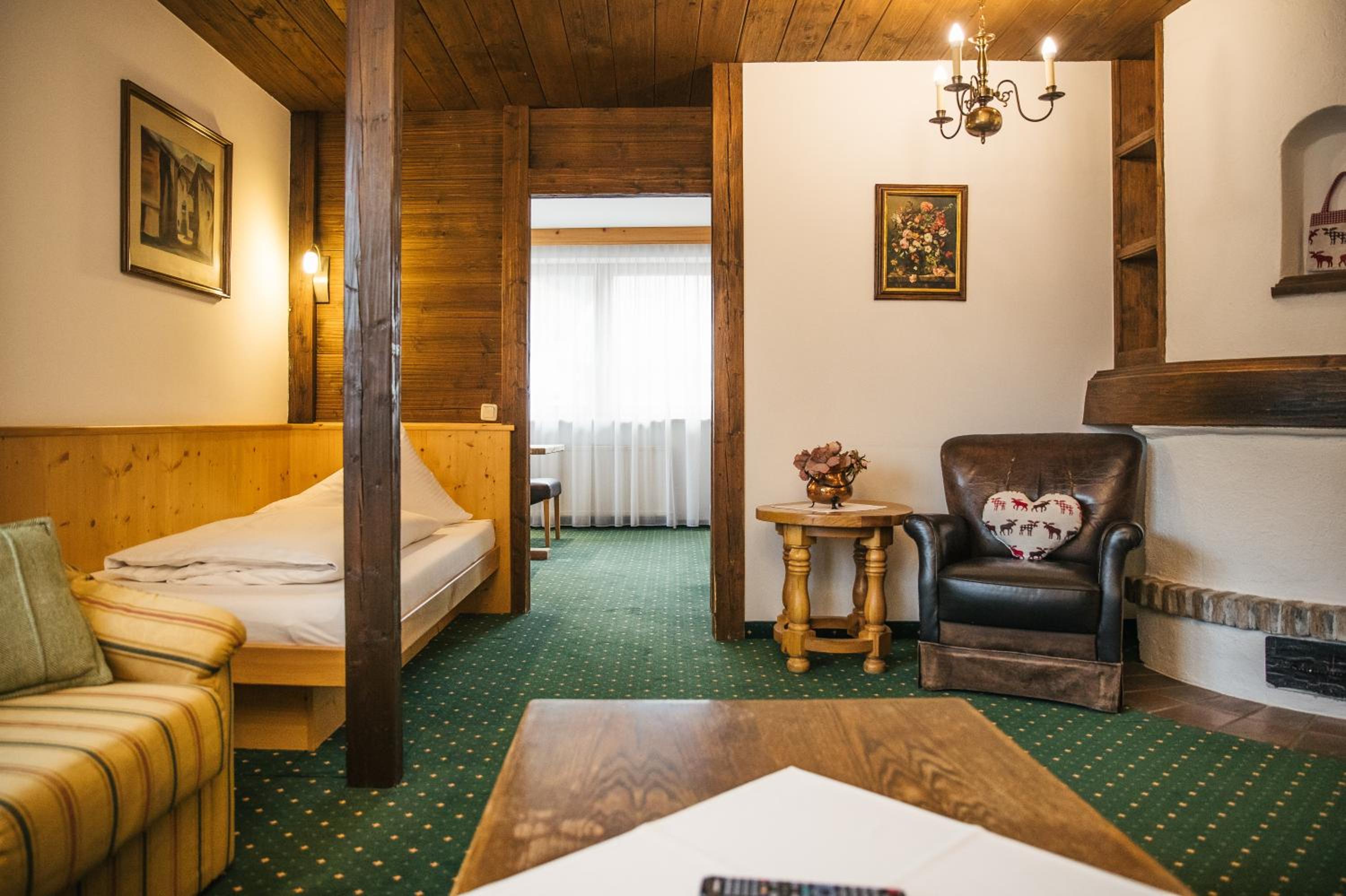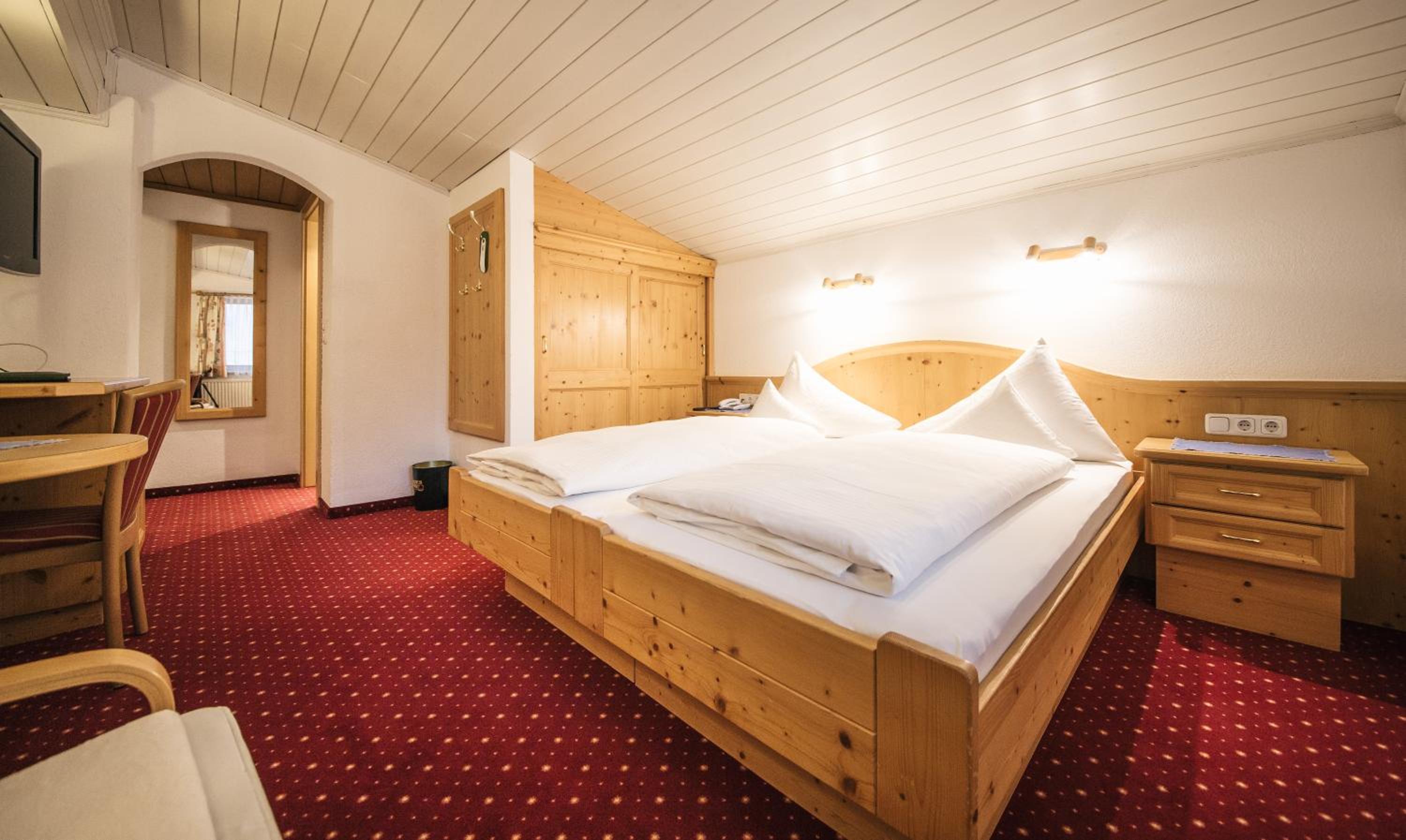 Tyrolean style but still modern and comfortable. Great space in the double room.