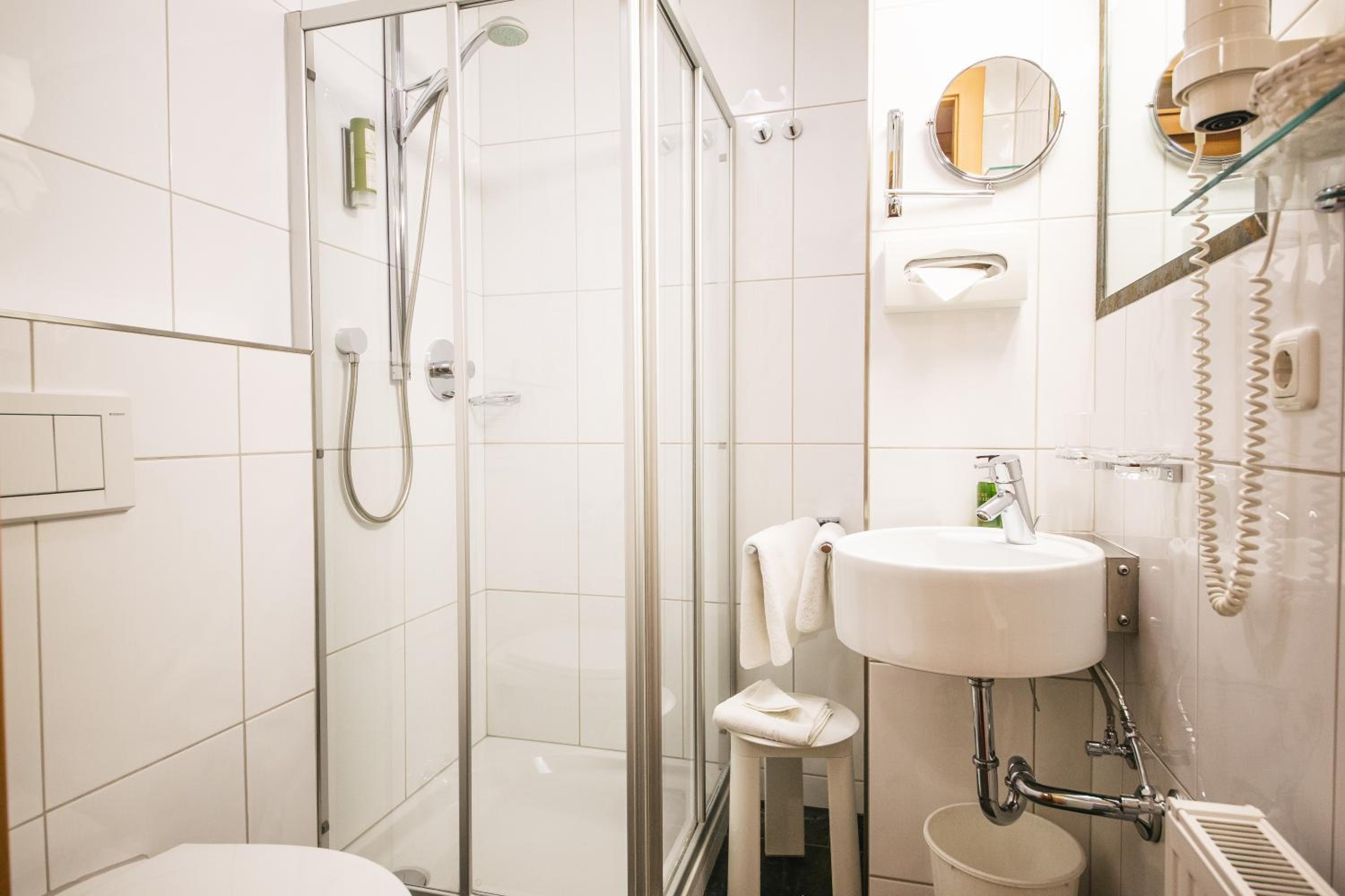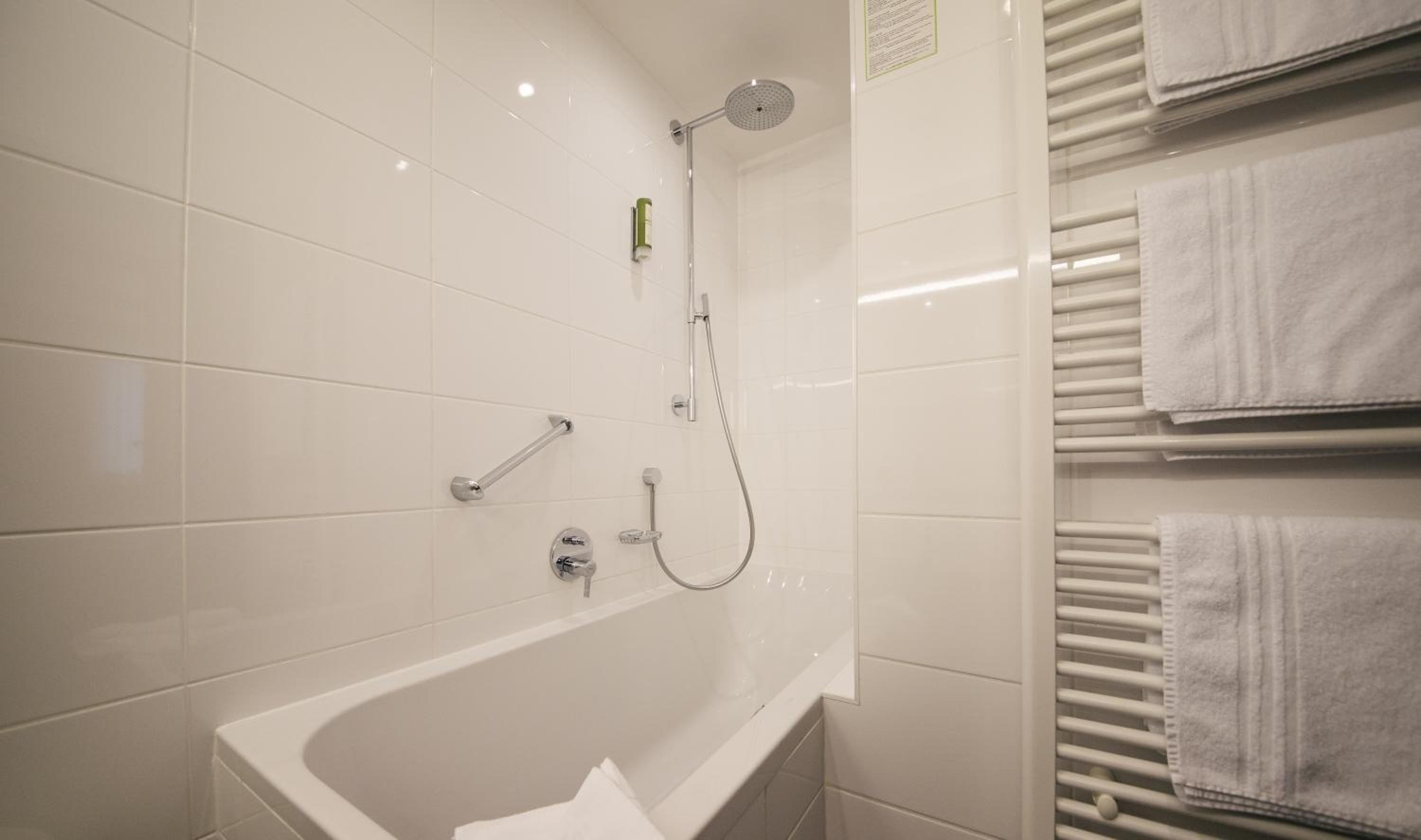 De douche op kamer 121 gaf een matig straaltje warm water.