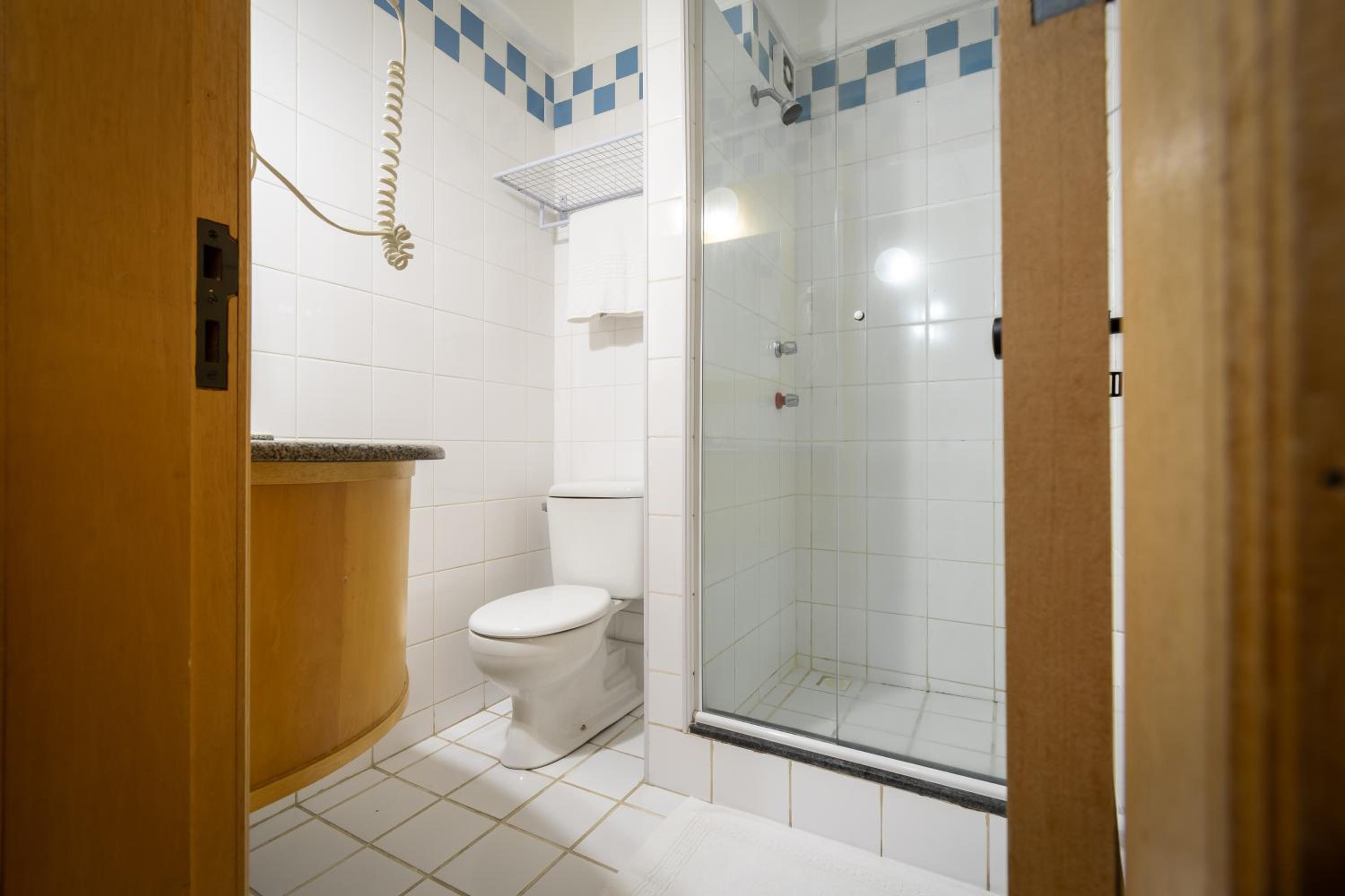 Do sistema de TV que tive que ligar muitas vezes na recepção e o Marcos prontamente me ajudou, mas a culpa era do sistema de TV que saía do ar toda hora, programa de uma emissora passando no canal de outra. E as toalhas do banheiro já deram o que podia, estavam em péssimo estado de conservação.