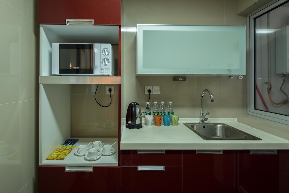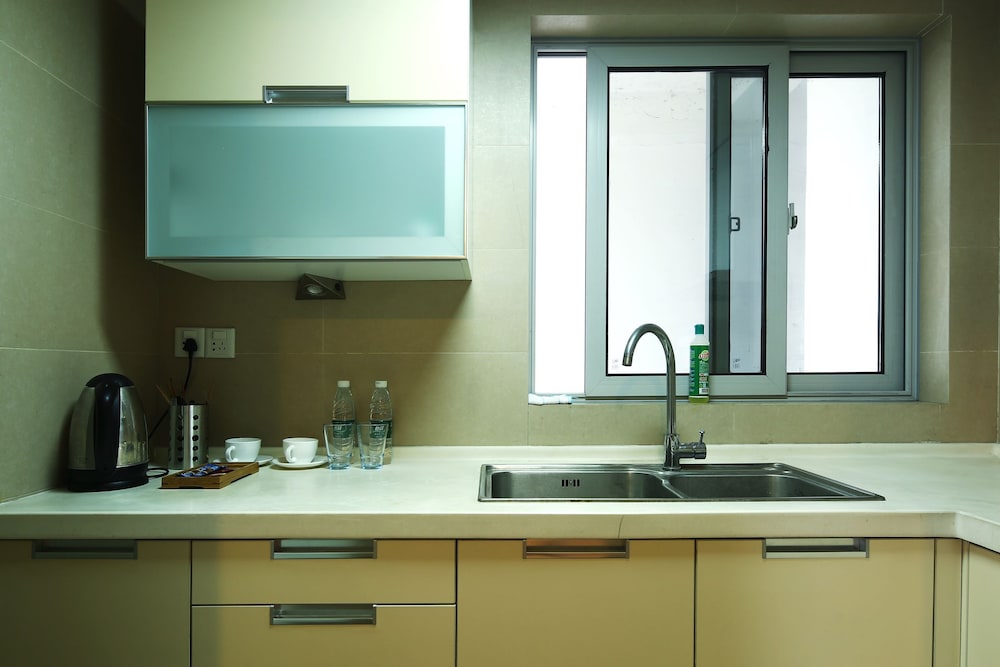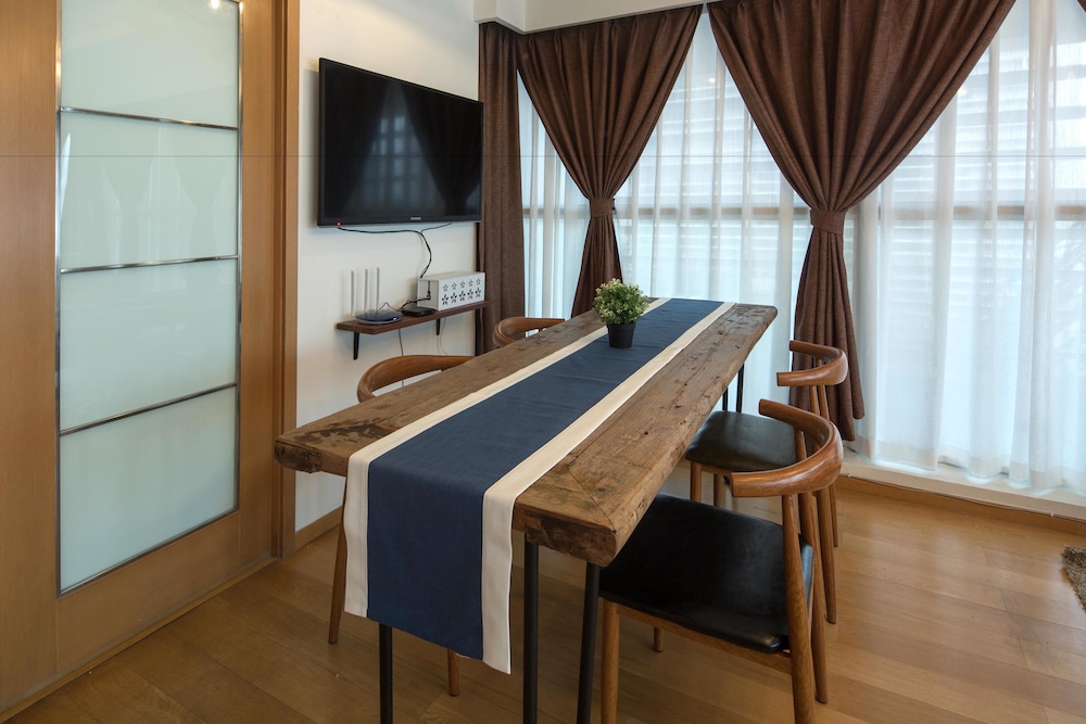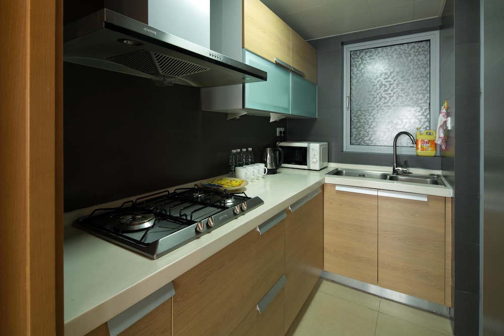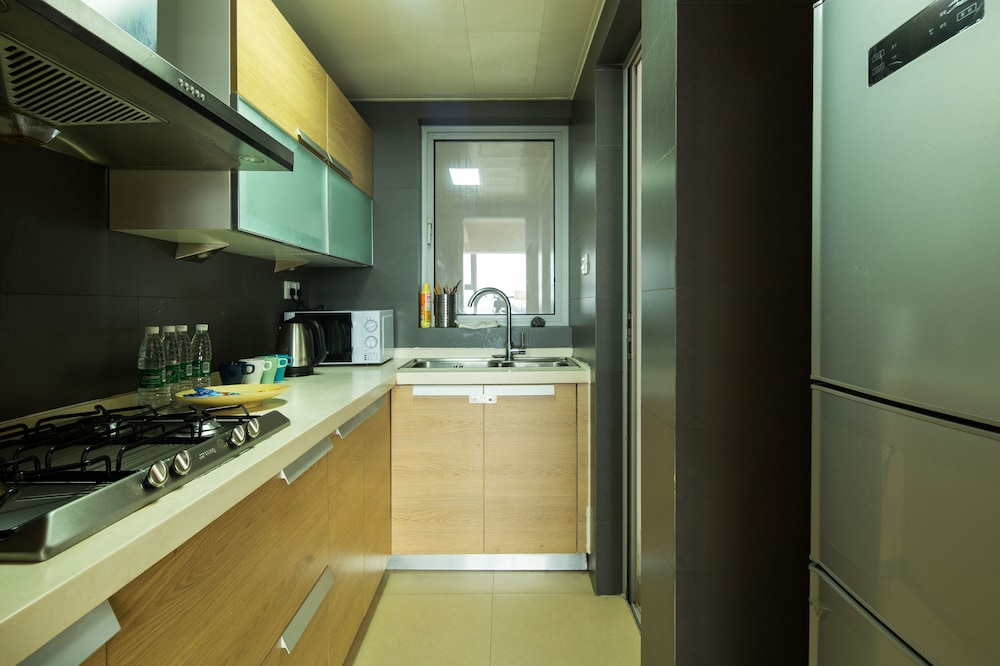 The place is in very convenient and safe area. Easy access to Chunxi shopping center, many good international food restaurants, and metro stations. Room service was very good with bringing water bottles, coffee, and daily cleaning. Strongly recommend this place if you travel as group of 2 - 5 people or family with children. Very good for the price.