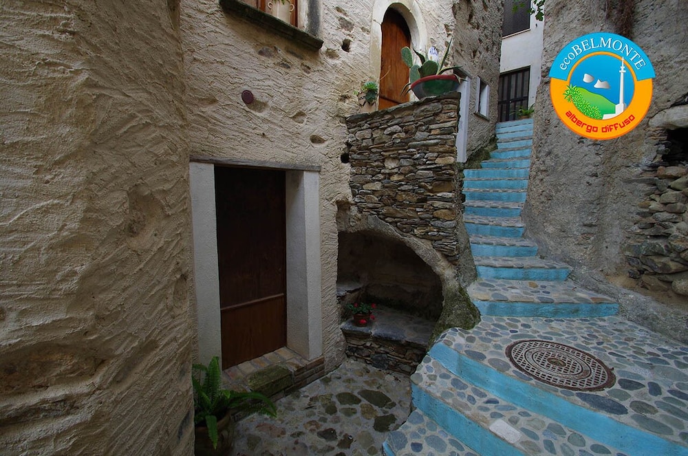 Ecobelmonte è molto piu' di un albergo diffuso: è un progetto di vera valorizzazione del patrimonio storico, architettonico ed emozionale del meraviglioso borgo di Belmonte Calabro, un intrico magico di vicoli, gradini e scorci imperdibili di mare e colline verdeggianti. Il tutto gestito con amore, rispetto e un pò di sana follia dall'omonima associazione ed in primis da Gianfranco e Gabrilla che oltretutto è una cuoca sopraffina. Abbiamo alloggiato 3 notti in una delle casette di paese che fungono da "camere" , tutte ristrutturate con materiali originali o di recupero e provviste di tutto, ed è stato come calarsi in una realtà di altri tempi. Veramente affascinante e rilassante. Un'esperienza sorprendente che consiglio vivamente, anche perché il mare è molto vicino e bello e si possono fare escursioni sia in collina che in altri borghi vicini, tra cui Fiumefreddo Bruzio, altra "terrazza" con affaccio mozzafiato sul mare.