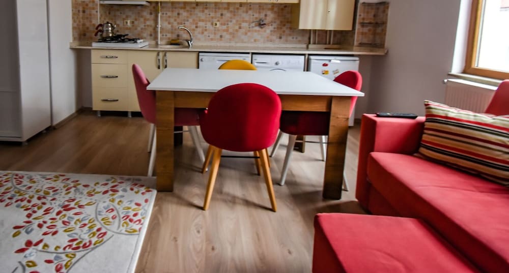 Otel yeni temiz bakımlı 4 tek kişilik yatak istemiştim iki kişilik yatak vardı bildirdim bir yatak daha geldi bir kişi de koltukta idare etti mutfak araç gereçleri yetersizdi bıçak bile yoktu tek takım havlu kaşık çatal tek tencere isteyince de kendi tavamızı veriyoz odada yok diyorlar. Apart demek bşr evde olması gereken ne varsa makarna süzgeçi pilav süzgeçi meyve tabagı kase salata tabagı tencere tava seti kahve için cezve fincan ama bunlardan bşr çogu yoktu ama gelişmeye açık bir işletme ☺️