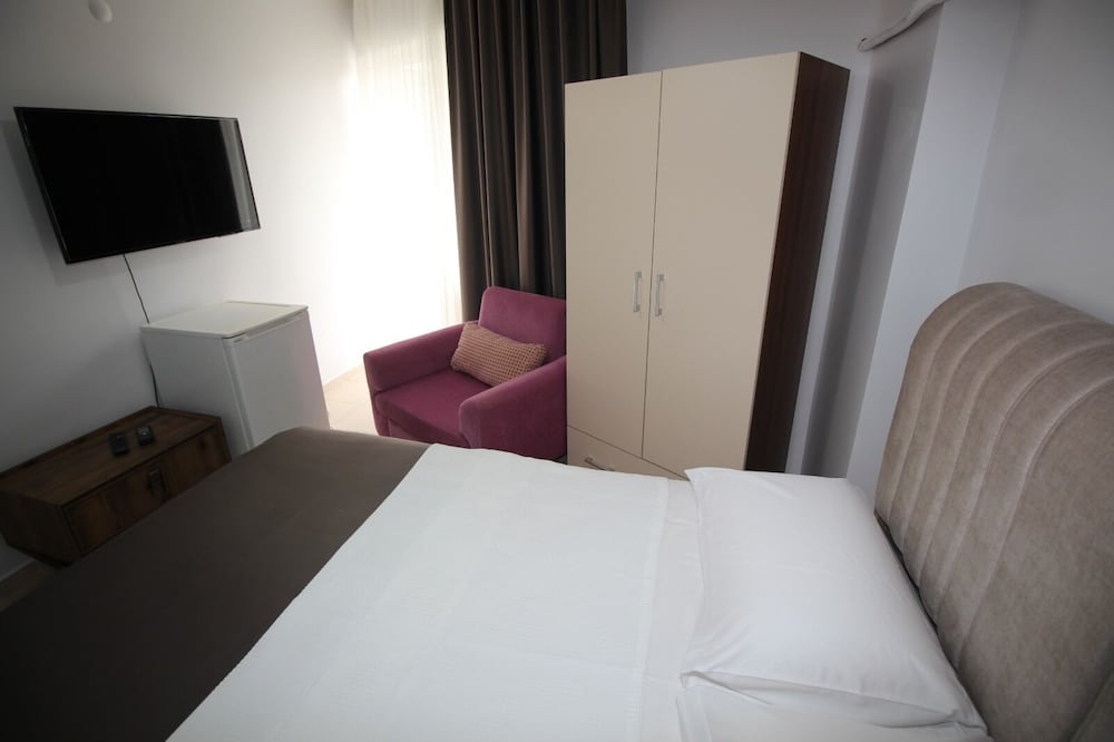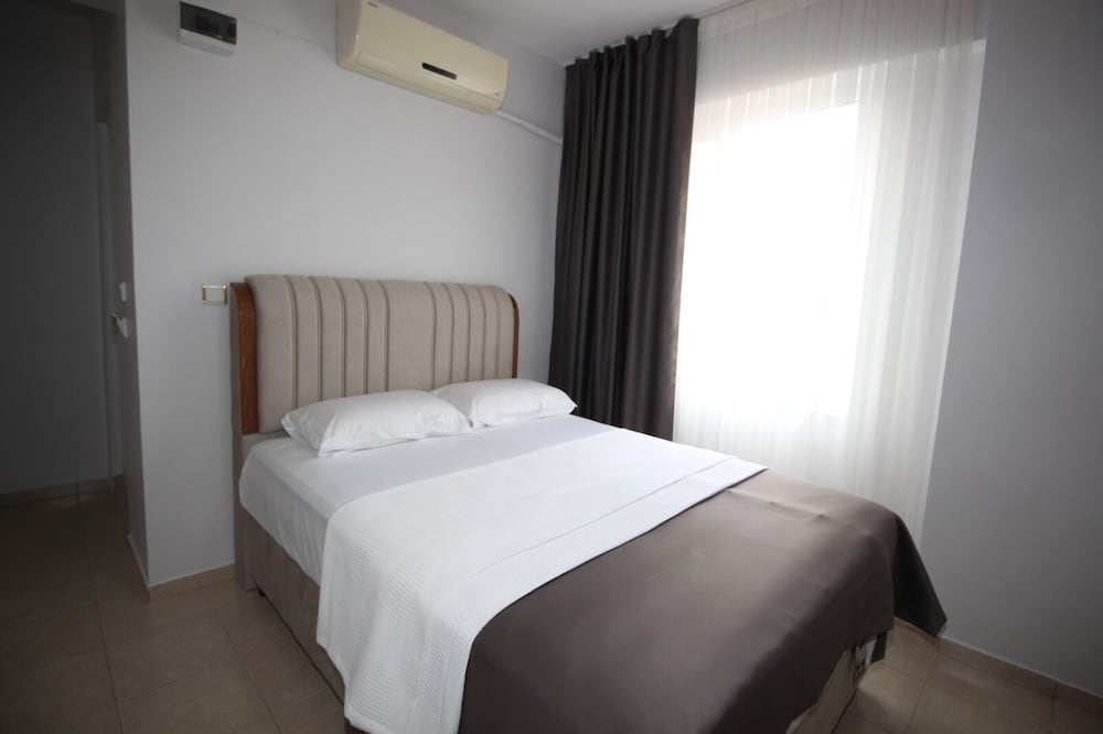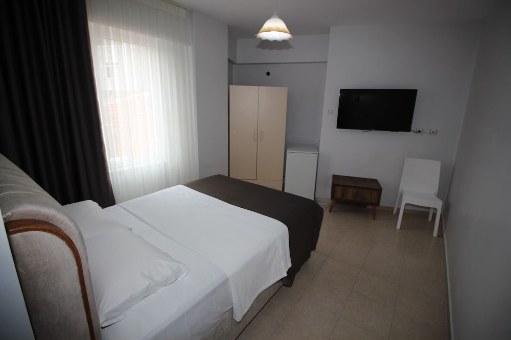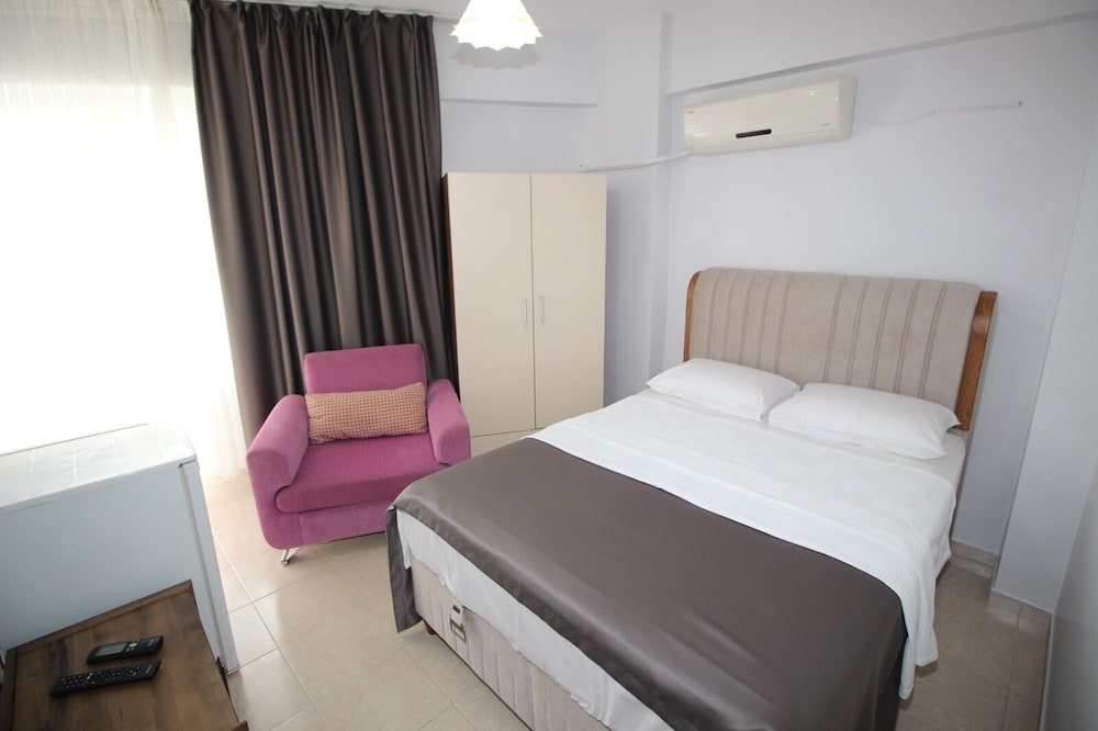 Мотель расположен отлично, в центре набережной, рядом магазины, булочные, кафешки, автостанция, можно съездить на соседние пляжи. Администратор владеет только турецким, номер за 5 дней не убирали ни разу, белье и полотенца тоже не меняют, мусор не выносят , моющих принадлежностей нет, надо просить даже бумагу туалетную (дали 1 раз). Кондиционер работал, русского телевидения нет, плита газовая без электроподжига. Фена нет. Ночью не шумно.