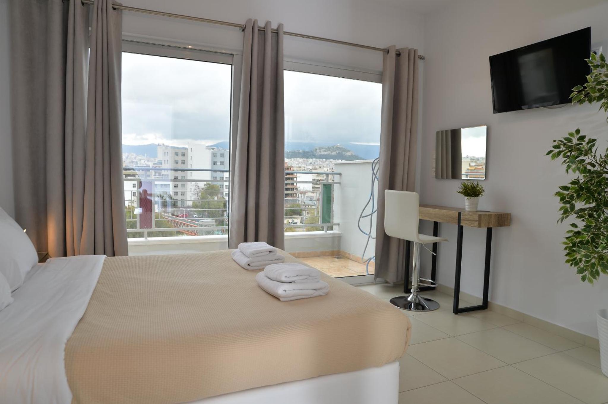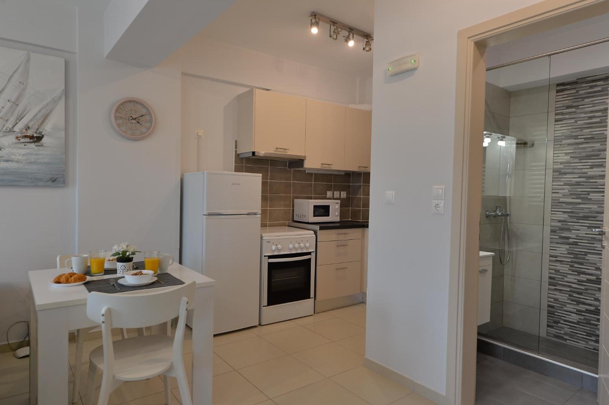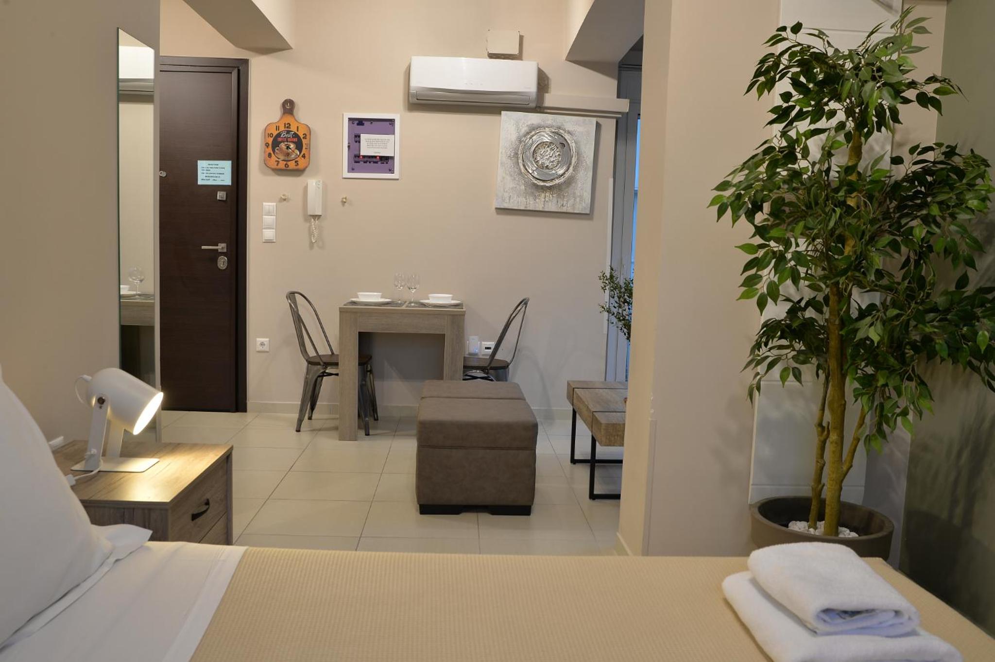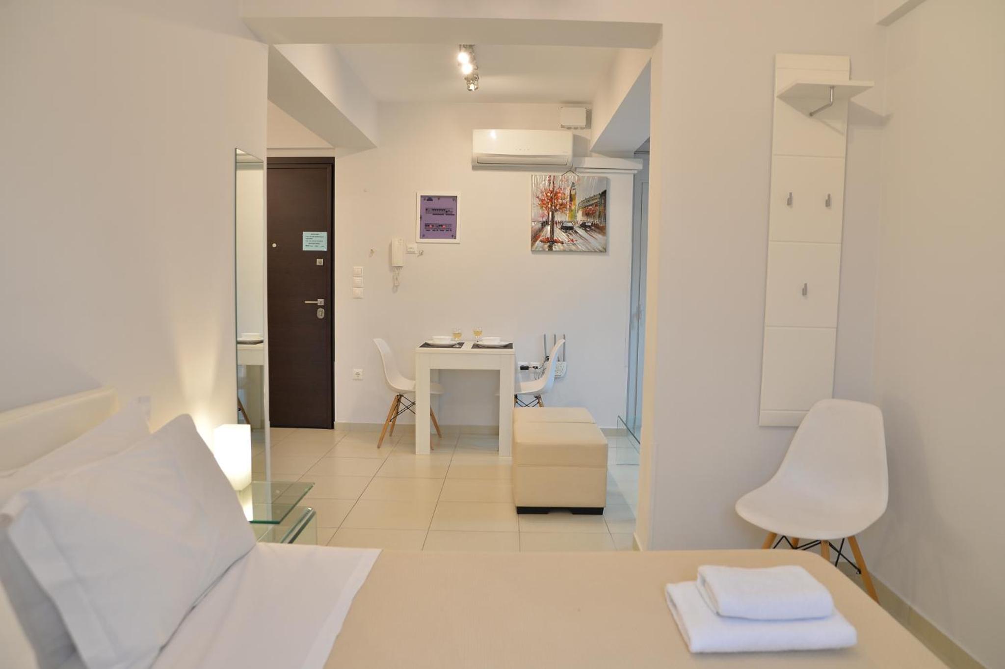 W obiekcie znajduje się 9 apartamentów. Przebywałam w apartamencie z 2 sypialniami. Wspaniały, wygodny, bardzo czysty i dobrze wyposażony apartament z balkonem. Wszystkie pomieszczenia są klimatyzowane. Telewizor z netflixem. Wejście do apartamentu za pomocą kodu. Obsługa apartamentu codziennie sprzątała i zmieniała ręczniki. Dodawała wodę, kawę i herbatę. W obiekcie 3 miejsca parkingowe, co jest bardzo ważne, bo w Atenach znalezienie miejsca parkingowego graniczy z cudem. Do centrum ok. 3 km, więc spokojnie można dojść spacerkiem. Bardzo i pomocny miły gospodarz. Dziękujemy za wspaniały pobyt.
