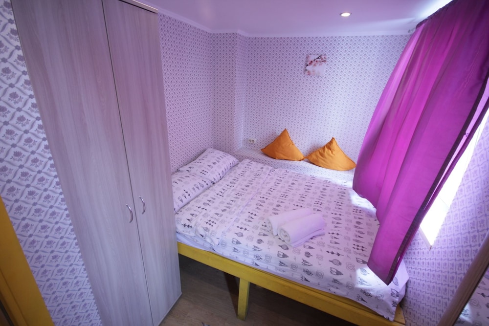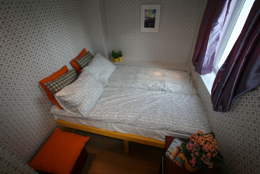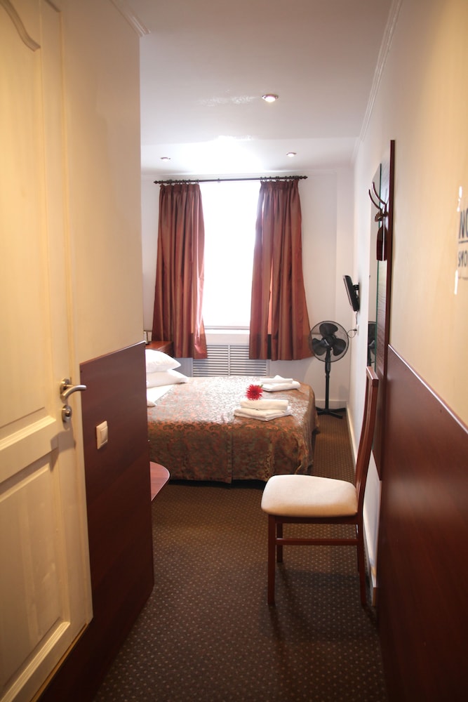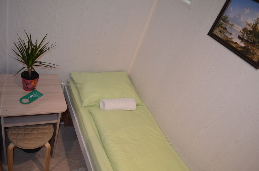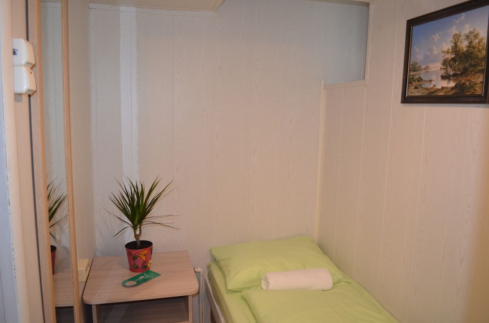 Первое, о чем думаешь - тебя поселили в шкаф. Малюсенькая комната, входишь и сразу упираешься в кровать. Сама кровать тоже довольно узкая - даже одному человеку может быть тесно. Ничего для хранения вещей нет, только пара плечиков прямо над кроватью. Чисто, тепло. Однако окна,хоть и пластиковые, заклеены - проветрить не выйдет. Стены картонные, поэтому слышно каждый чих на этаже. За 4 дня номер ни разу не убирали,мусор не выкидывали. Расположение отличное - центр города,до метро можно дойти минут за 10. Если планируете только ночевать - сносно, для большего точно не рекомендую.