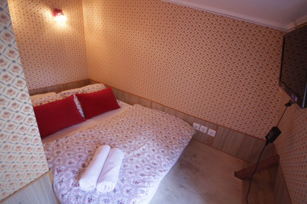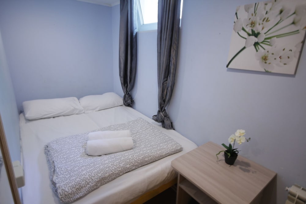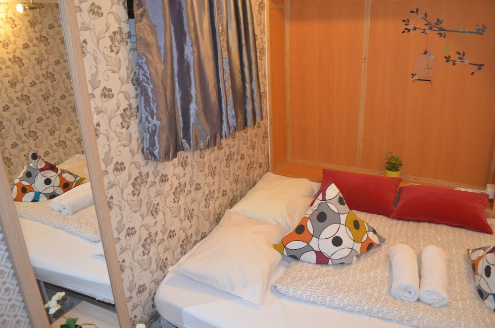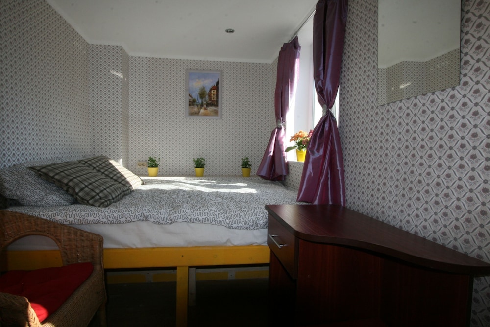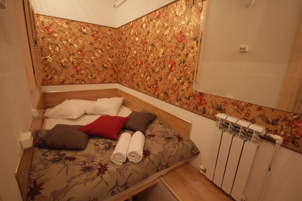 Первое, о чем думаешь - тебя поселили в шкаф. Малюсенькая комната, входишь и сразу упираешься в кровать. Сама кровать тоже довольно узкая - даже одному человеку может быть тесно. Ничего для хранения вещей нет, только пара плечиков прямо над кроватью. Чисто, тепло. Однако окна,хоть и пластиковые, заклеены - проветрить не выйдет. Стены картонные, поэтому слышно каждый чих на этаже. За 4 дня номер ни разу не убирали,мусор не выкидывали. Расположение отличное - центр города,до метро можно дойти минут за 10. Если планируете только ночевать - сносно, для большего точно не рекомендую.