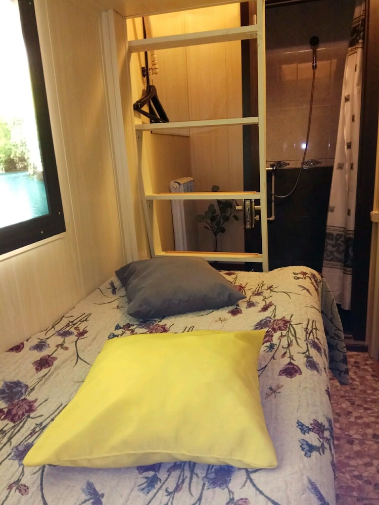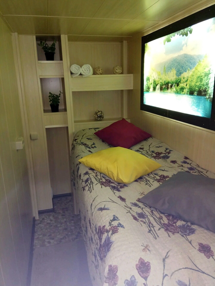 Фотографии не вполне соответствуют действительности. К сожалению, не было времени делать фотографии. Данное жилье подойдет только в том случае, если Вам необходим небольшой сон для продолжения своего путешествия! Кроме как лежать на сколоченных из старых поддонов кроватях больше ничего сделать не удалось. Номер просто шикарный: представьте себе половину купе в поезде...только в поезде немного уютнее