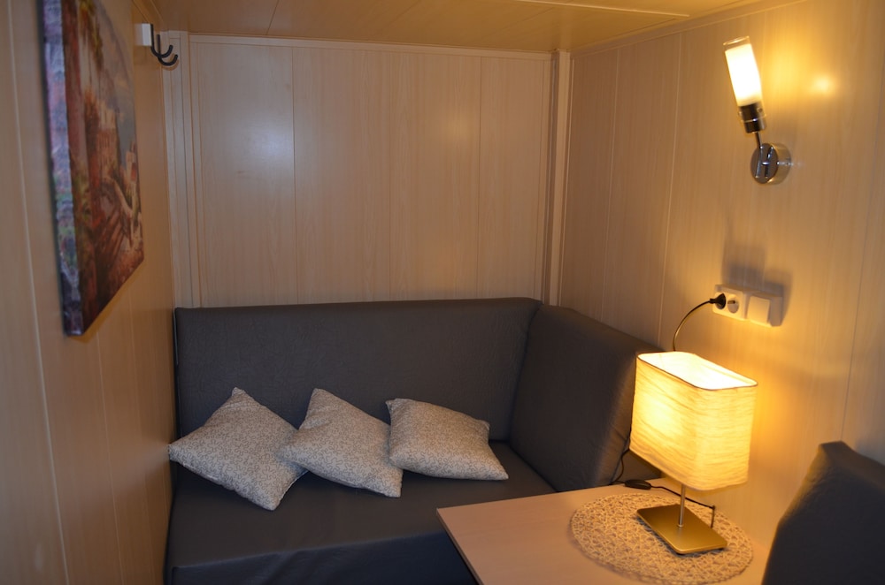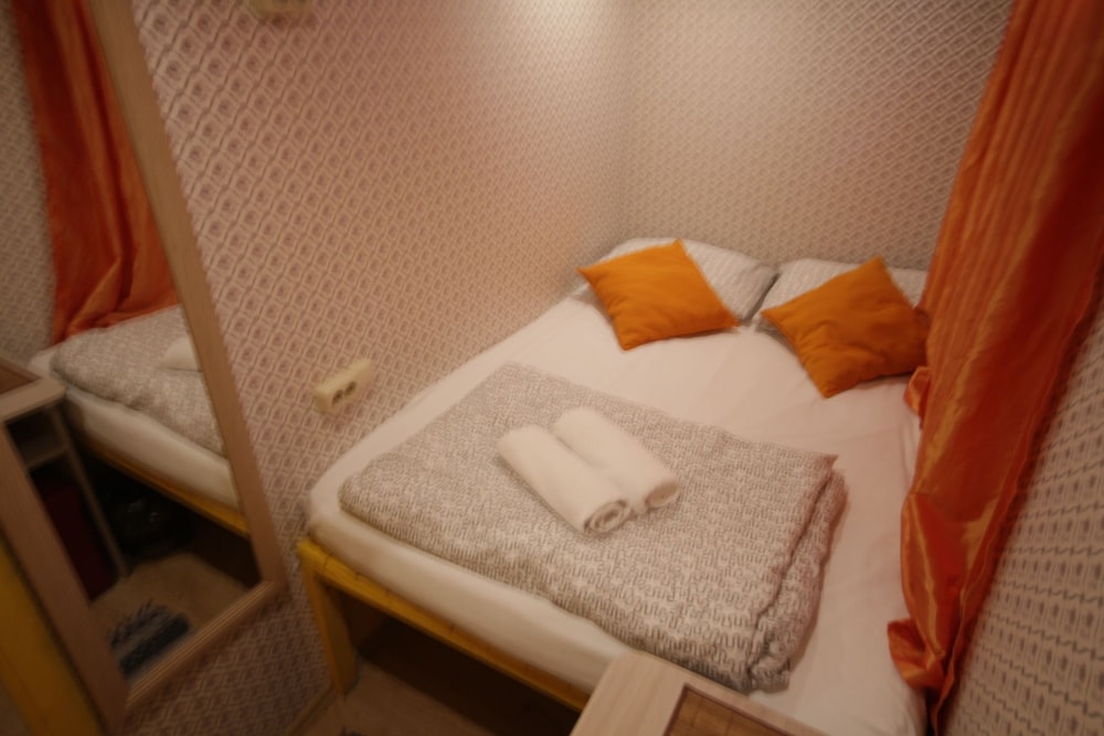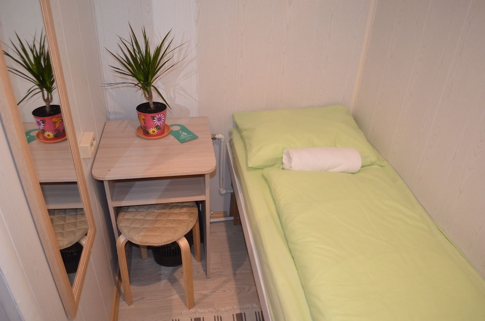 Достоинства. Удачное расположение рядом с центром. Можно выспаться, номер хотя и крошечный, но на кровати вытянуться возможно в полный рост. В номере есть розетка на две вилки. Быстрое заселение. На телефонные звонки отвечают и дают честные ответы на вопросы. В день заселения сами позвонили, чтобы узнать, все ли в силе по заселению. На кухне есть работающая СВЧ печь. Недостатки. Горячей воды в кулере не было, очевидно, была какая-то проблема с ее нагревом. Кофейный автомат не работал. Попить кофе стала проблемой. В туалете сесть на унитаз и закрыть перед собой дверь в туалет возможно, но с трудом, лицом упираешься в дверь, унитаз расположен очень близко к двери. В туалете в рукомойнике вместо горячей воды еле теплая. В душ не пошел, думаю, что там тоже горячей воды не было. В номере можно выспаться, если только никто не ходит в туалет, труба канализации проходит рядом с номером, шум сливающейся по трубе воды очень громкий. Чтобы лучше понять размеры номера, представьте купе в поезде. Две полки, одна над другой, в проходе два столика друг над другом, все. Т.е. размер номера равен примерно 2/3 размера купе. Окно в номере прилегает неплотно, есть небольшой сквозняк. Мы заплатили за ночь почти две тысячи рублей. Не уверен, что оно того стоило. Но, надо сказать, что на сайте дано почти точное описание номера, поэтому мы были готовы к этому. Тем не менее, реальность все же превзошла ожидания. Приедем еще раз, если не будет других вариантов.