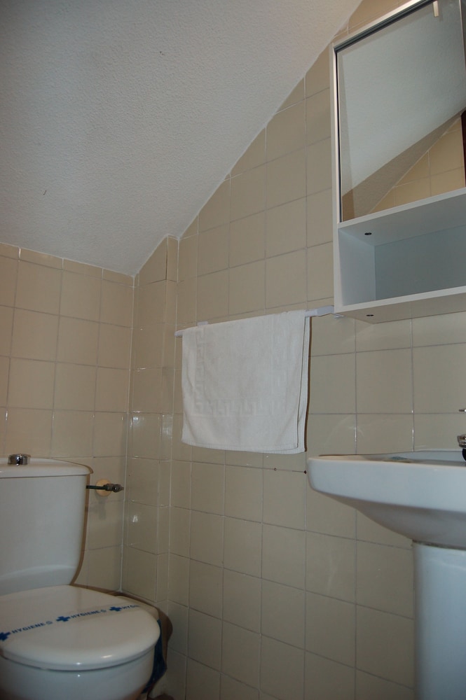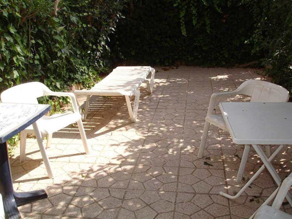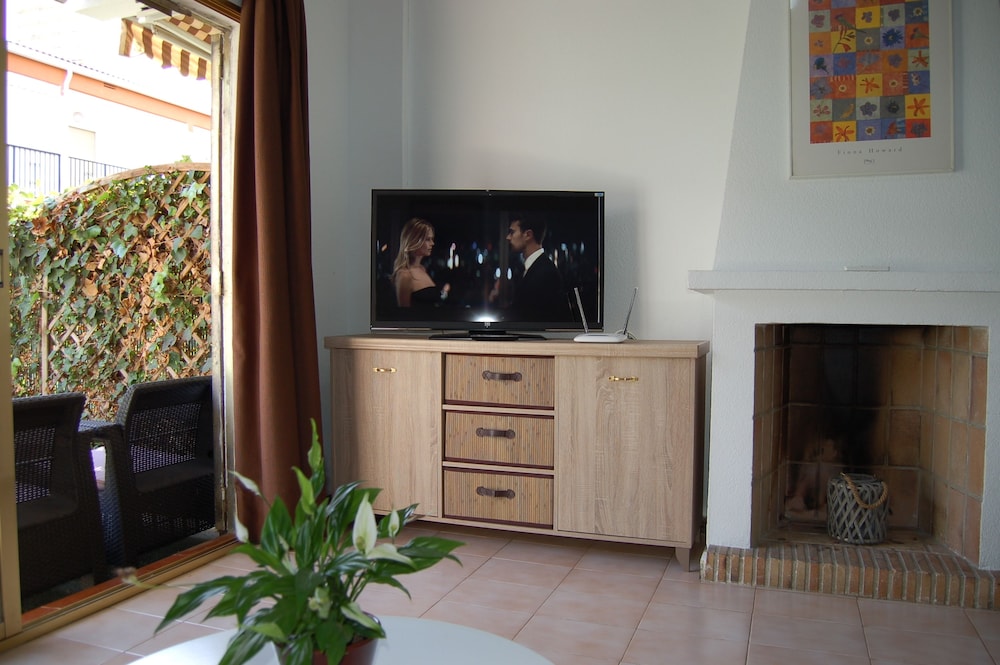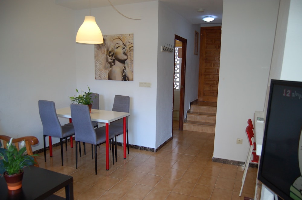 Quiet location and secure complex with 3 swimming pools. Near to supermarkets and cafes and within 5 minutes walk to a multitude of bars restaurants and twice weekly street market. Downstairs toilet which was handy , TV with English channels and a full bathroom and bedrooms up a steep flight of stairs. Only a partial hand rail on the stairs which could be dangerous for children or less mobile guests. Nice friendly office staff who let us check out after 10am without extra charge. Back terraced area which got the sun most of the day but downside was only 2 sun beds for potentially 6 occupants and occasional smell wafting over from the nearby storm drain. Overall however an excellent property and location.
