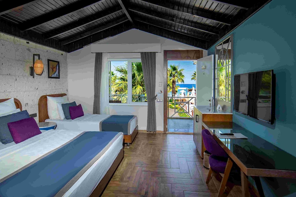 Otelin plajı ve oda temizliği hariç herşeyi çok kötü odalar çok eski yataklar rahat değil iki tek kişiliği birleştirip çift kişilik yapmışlar sürekli yatak ayrılıyordu. Oda kapısı tahta ve eskiydi kilitlenmiyordu. Güvenlik önlemleri sıfır. Otele sahilden birileri rahat rahat girip çıkabiliyorlar. Yemek menüleri tablot gibi çeşit yok. Odada minibar var içerisindeki su bile ücretli otelde kola ve fanta hariç herşey ücretli onlarıda sadece yemekte ikram ediyorlar. Ütü için 3 tane tişört verdim 1 gün sonra getirdiler o gün mağdur oldum. Yani verilen parayı hak etmiyor otel bir daha asla gitmem.