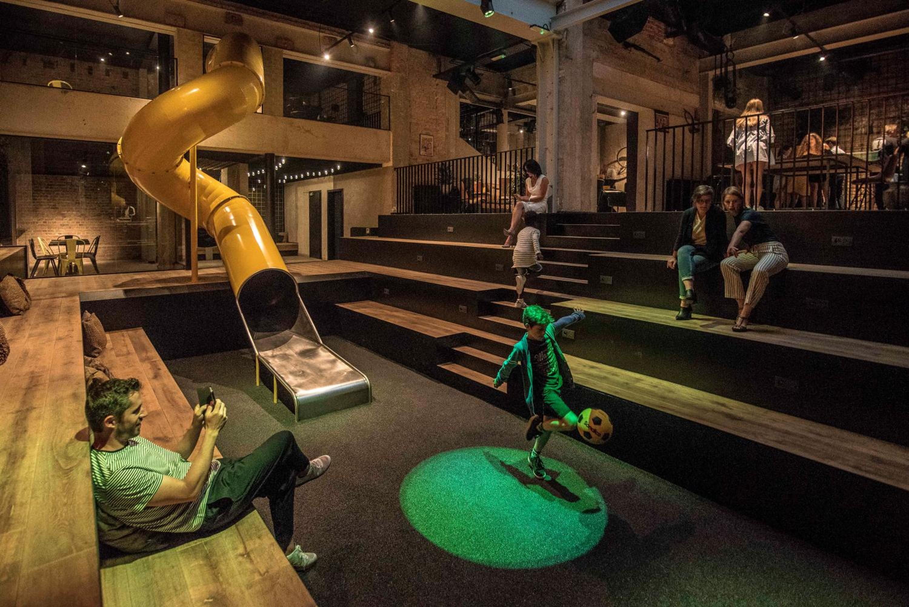 Le toboggan défoule bien les enfants et on peut profiter d'un petit verre en les voyant jouer !
