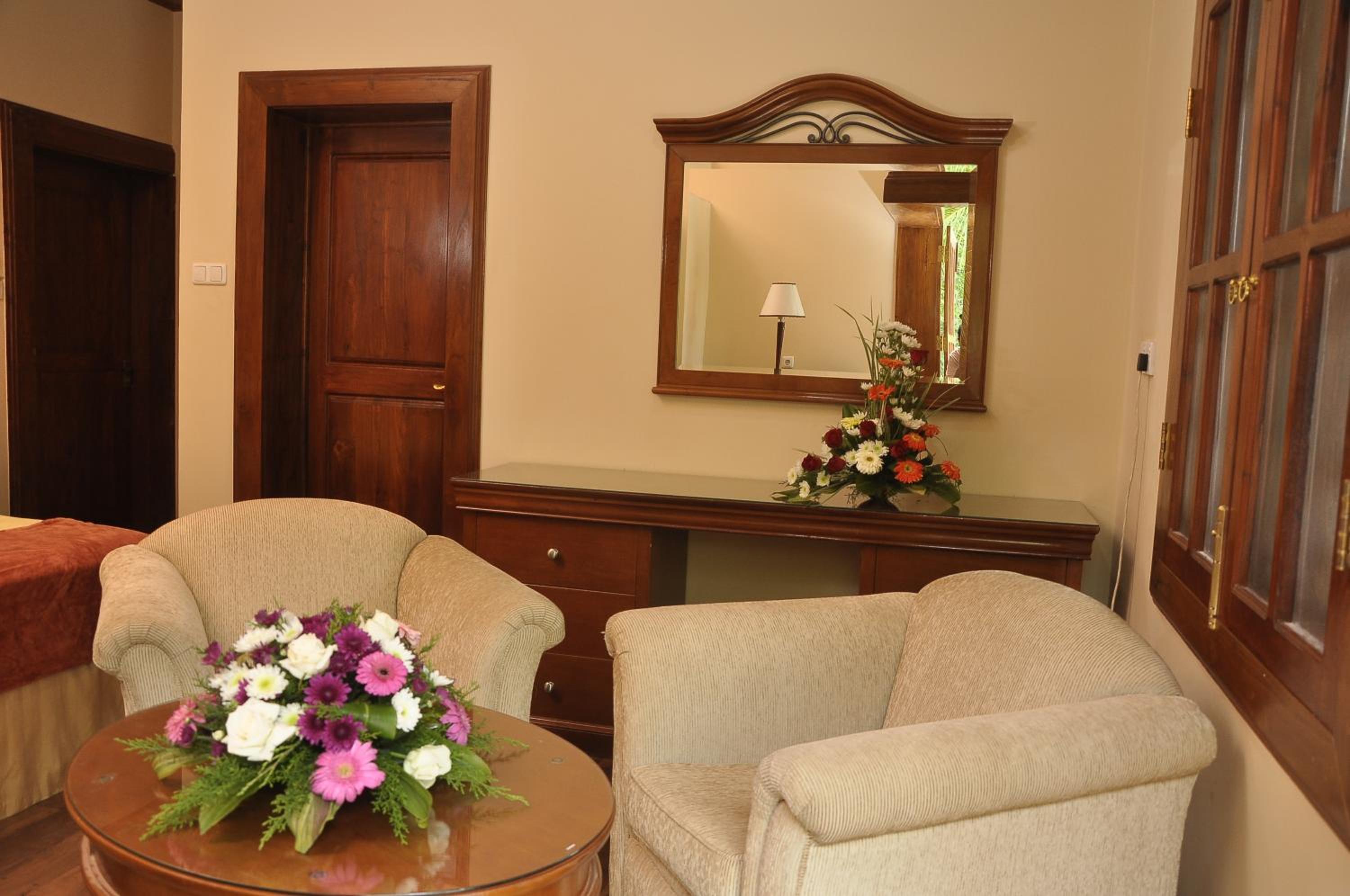 Très grande piscine dans un joli jardin. Petit déjeuner copieux et bon. Chambre agréable avec terrasse juste devant. Hôtel très calme car à l’extérieur de la ville. Bon restaurant à l’hôtel pour dîner le soir car trop loin de la ville (prix très raisonnable environ un peu moins de 2000rs le plat). Personnel très sympathique.