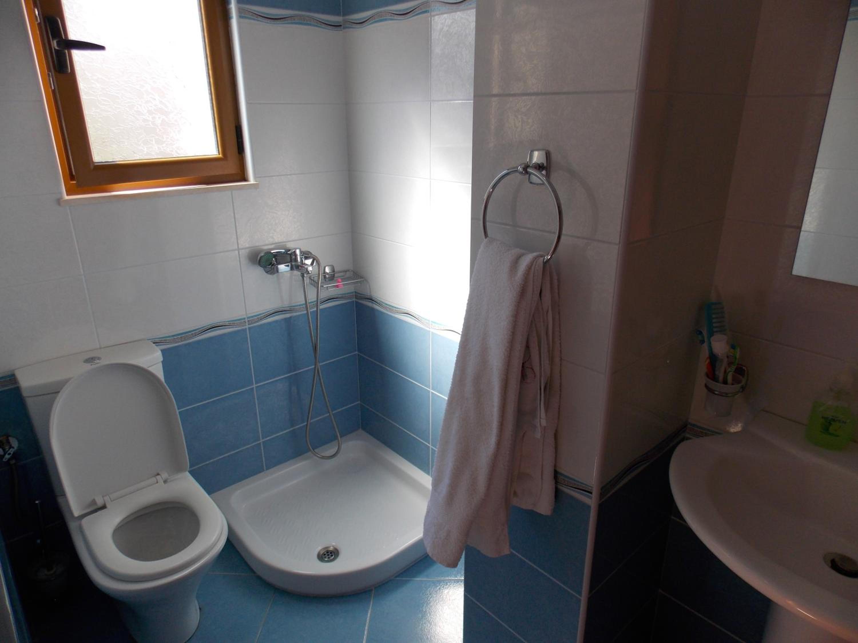 Non c è la cabina doccia, quando ti lavi sghizza acqua.