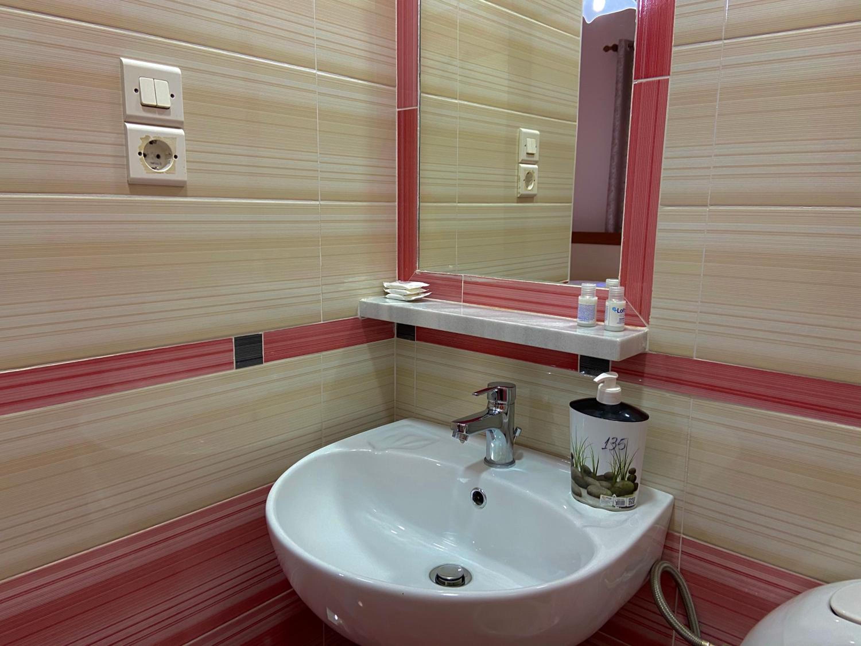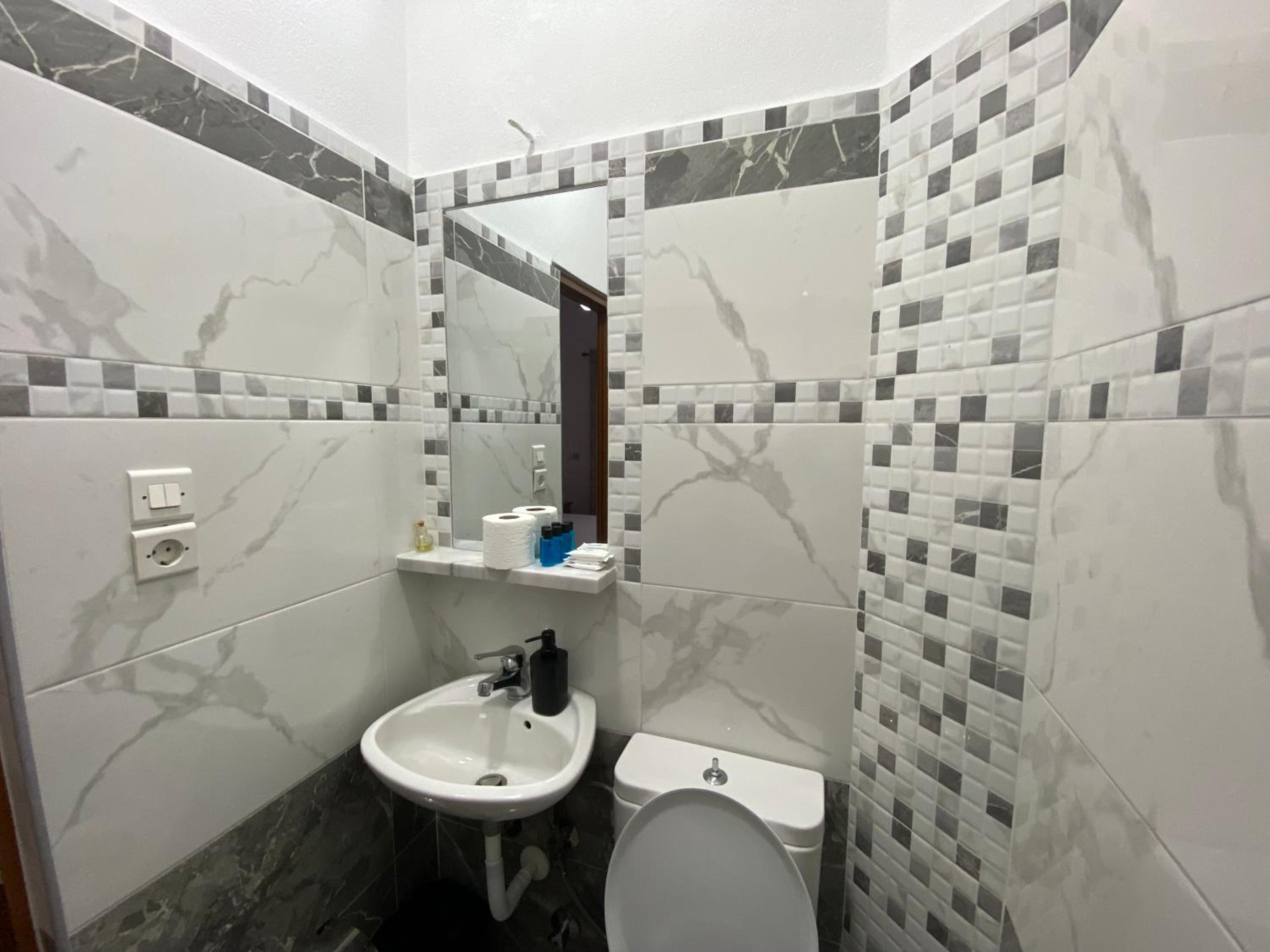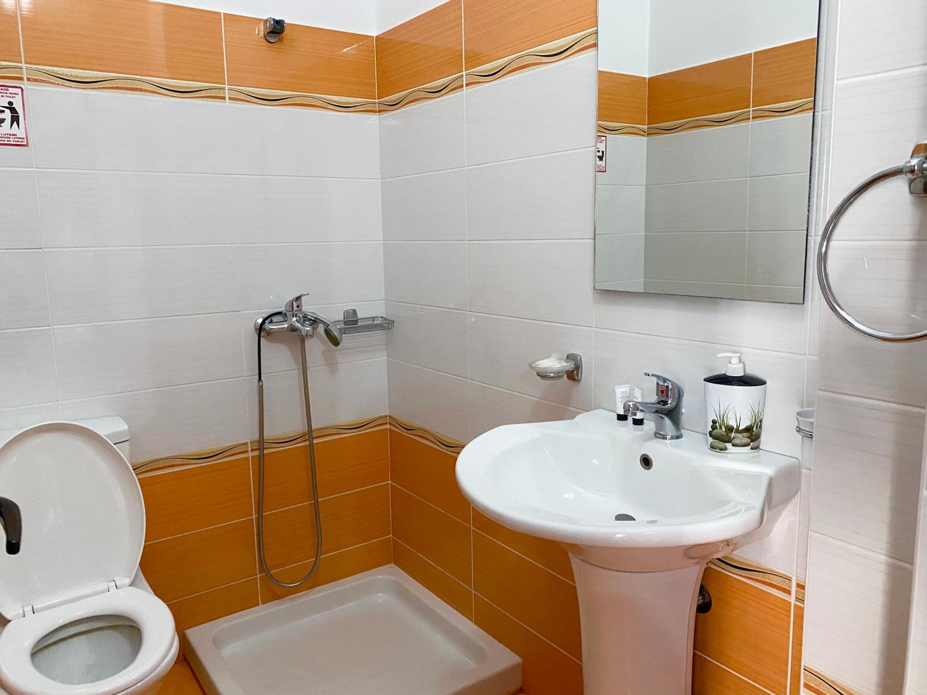 Il bagno era imbarazzante. Pulitissimo, per carità, ma minuscolo e di fatto la doccia non c'era. C'era solo un doccino con un tappetino, non c'erano né ante né tende, né il piatto doccia, quindi lavarsi era molto scomodo. Quando lo abbiamo segnalato, lo staff ha risposto con pressapochismo. Esperienza di check in poco gentile, l'hotel accetta esclusivamente contanti e li ha voluti subito. Attenzione perché non ci sono bagni fuori dalle stanze, quindi se fate il check out e lasciate i bagagli in hotel, quando poi li andate a riprendere non potete più andare in bagno. Noi dovevamo partire ed è stato scomodo.