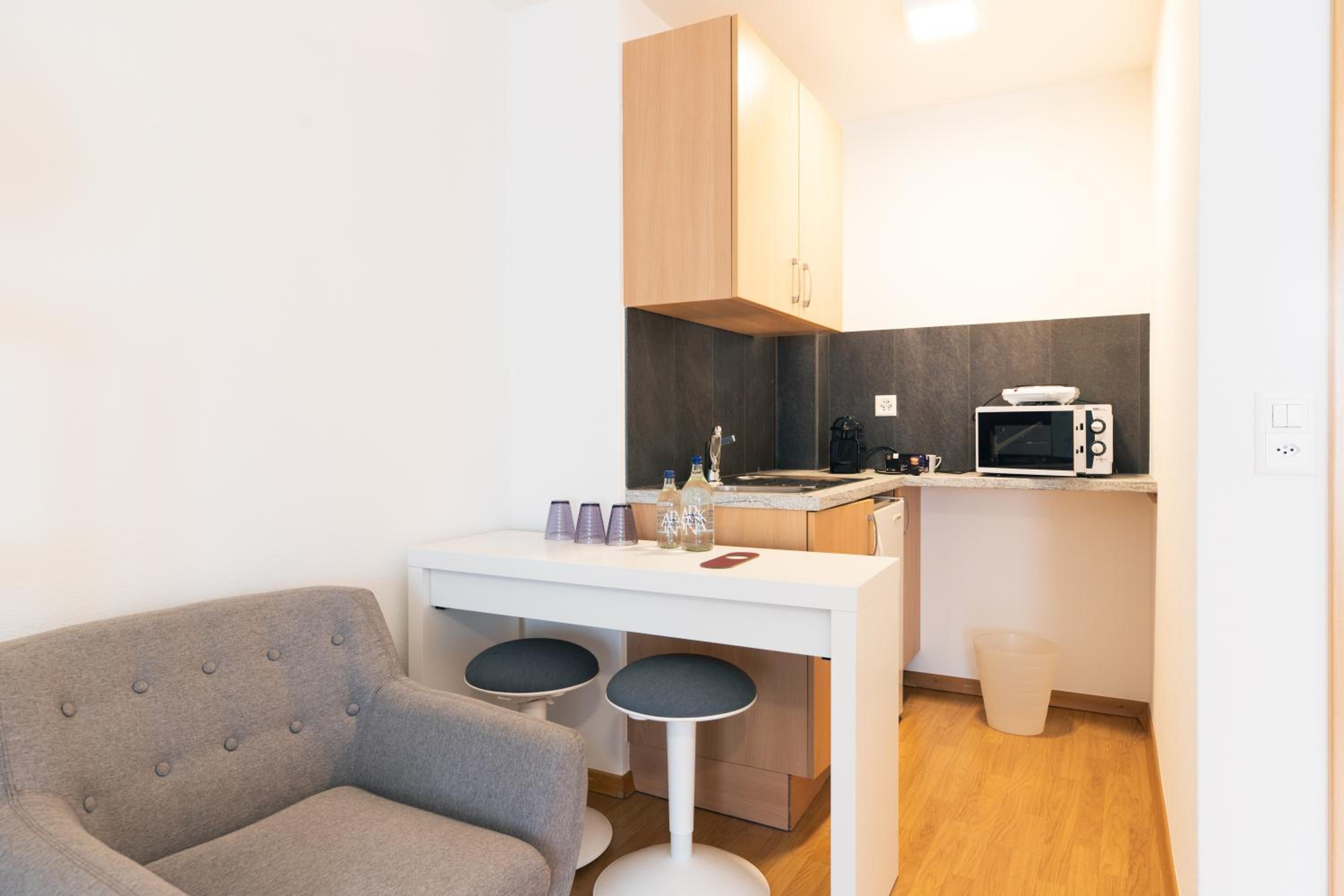 Un petit hôtel propre et agréable où l’on est bien reçu, avec le sourire ! La chambre était vaste, propre avec même une kitchenette !