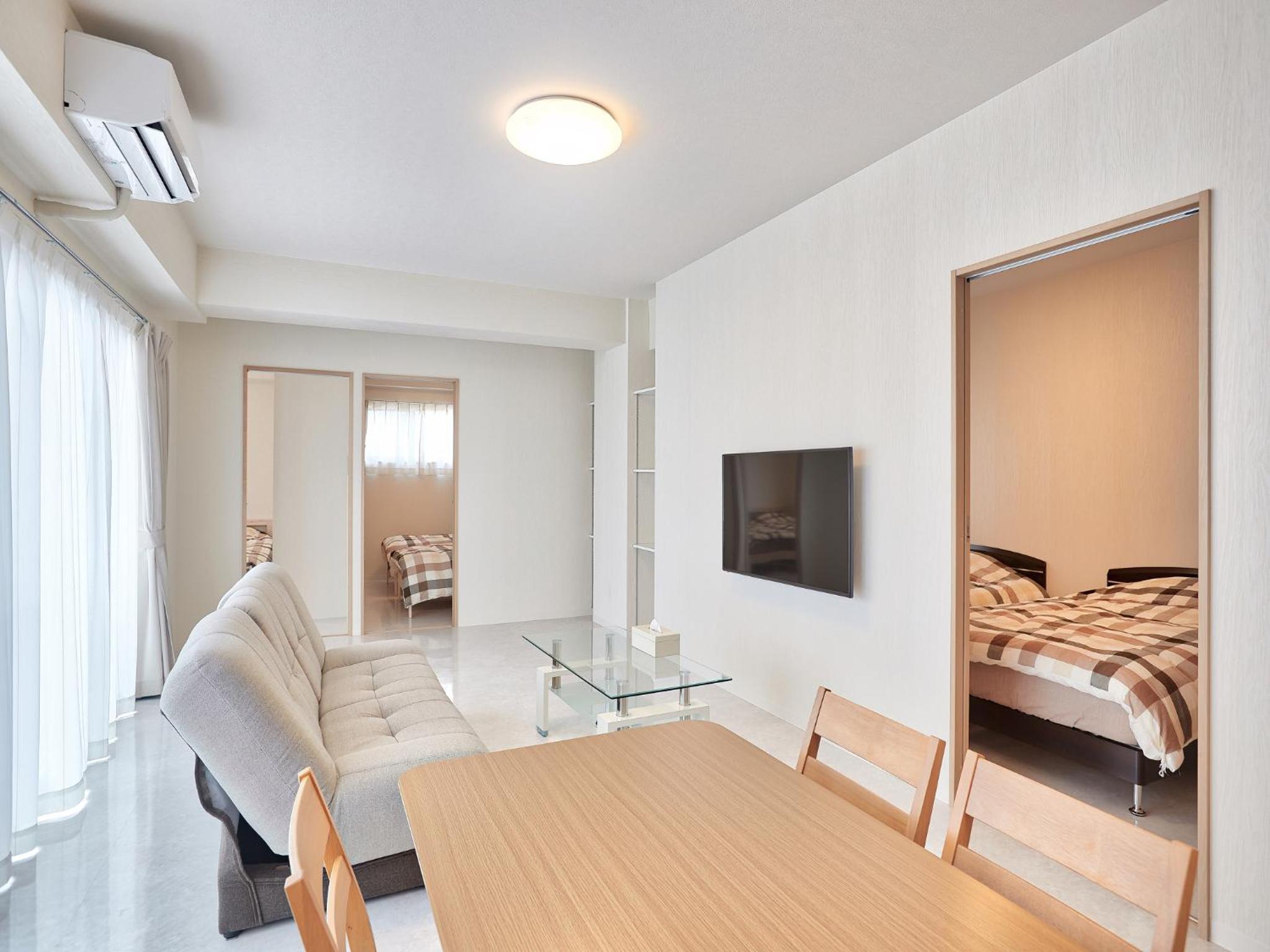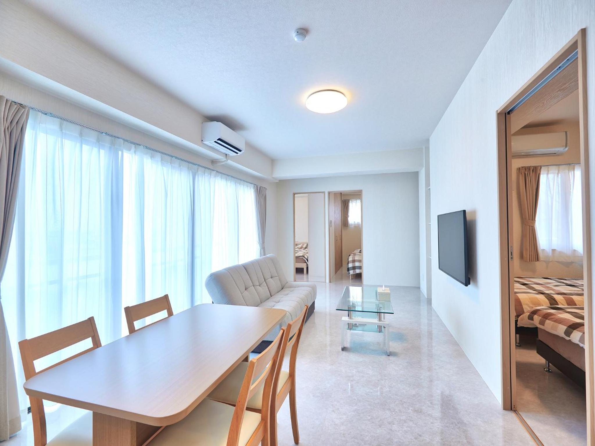 I really liked this was an apartment style. The only thing is that my daughter was too big for the extra futon and the floor was too hard to sleep with futon. We needed an extra bed. But we enjoyed our staying and would book again if we go Okinawa.