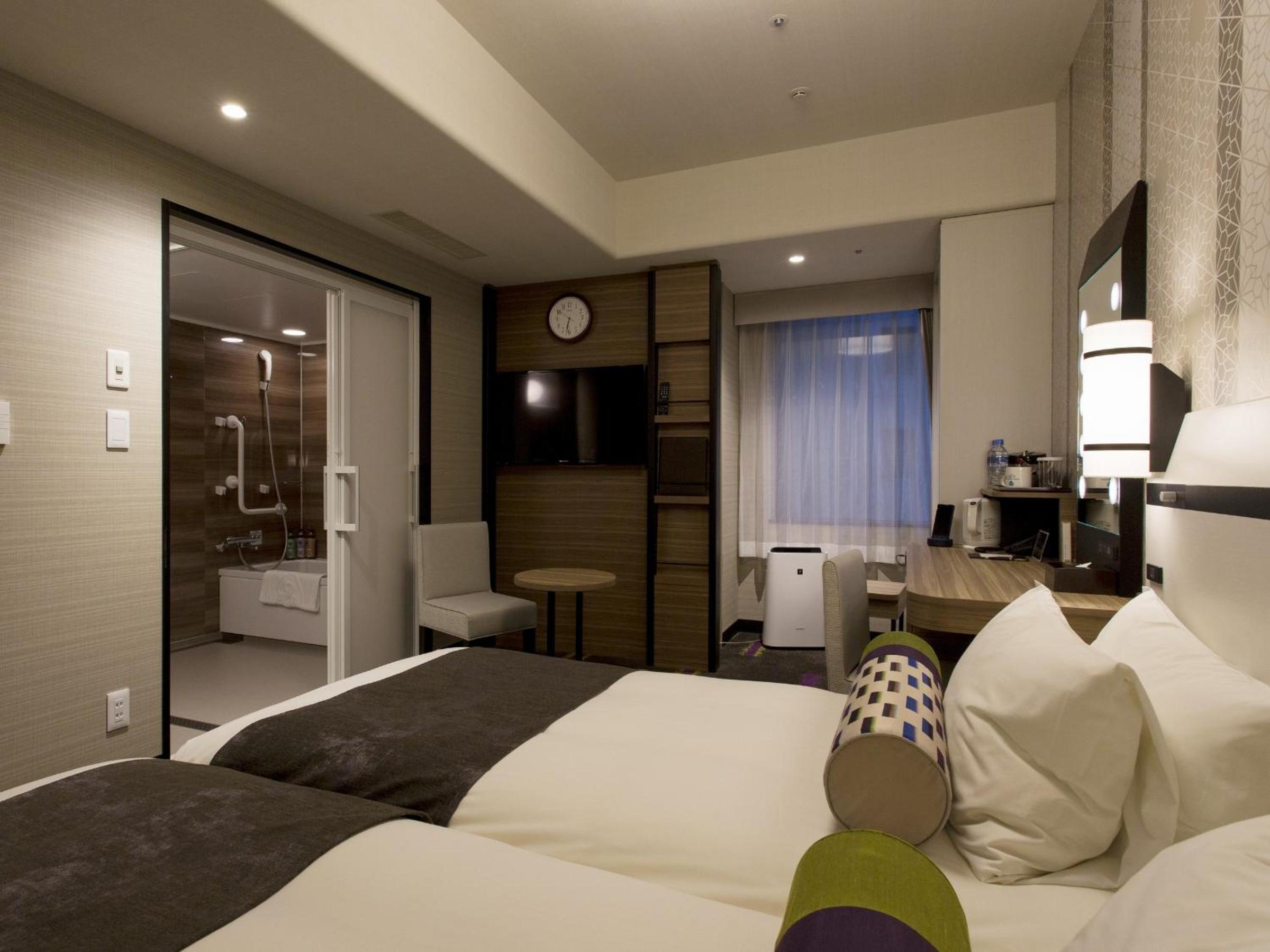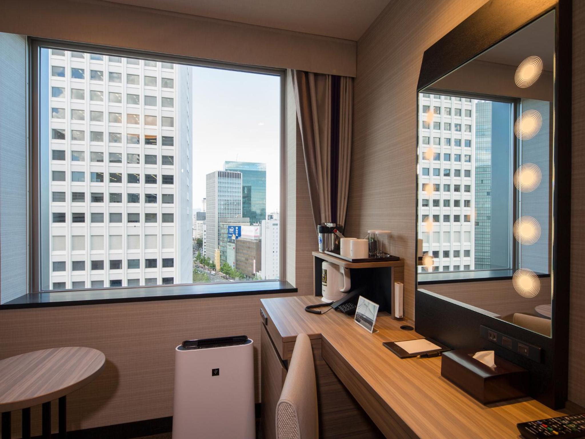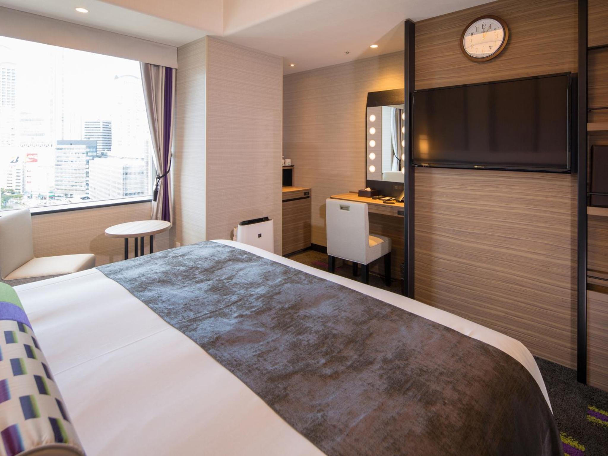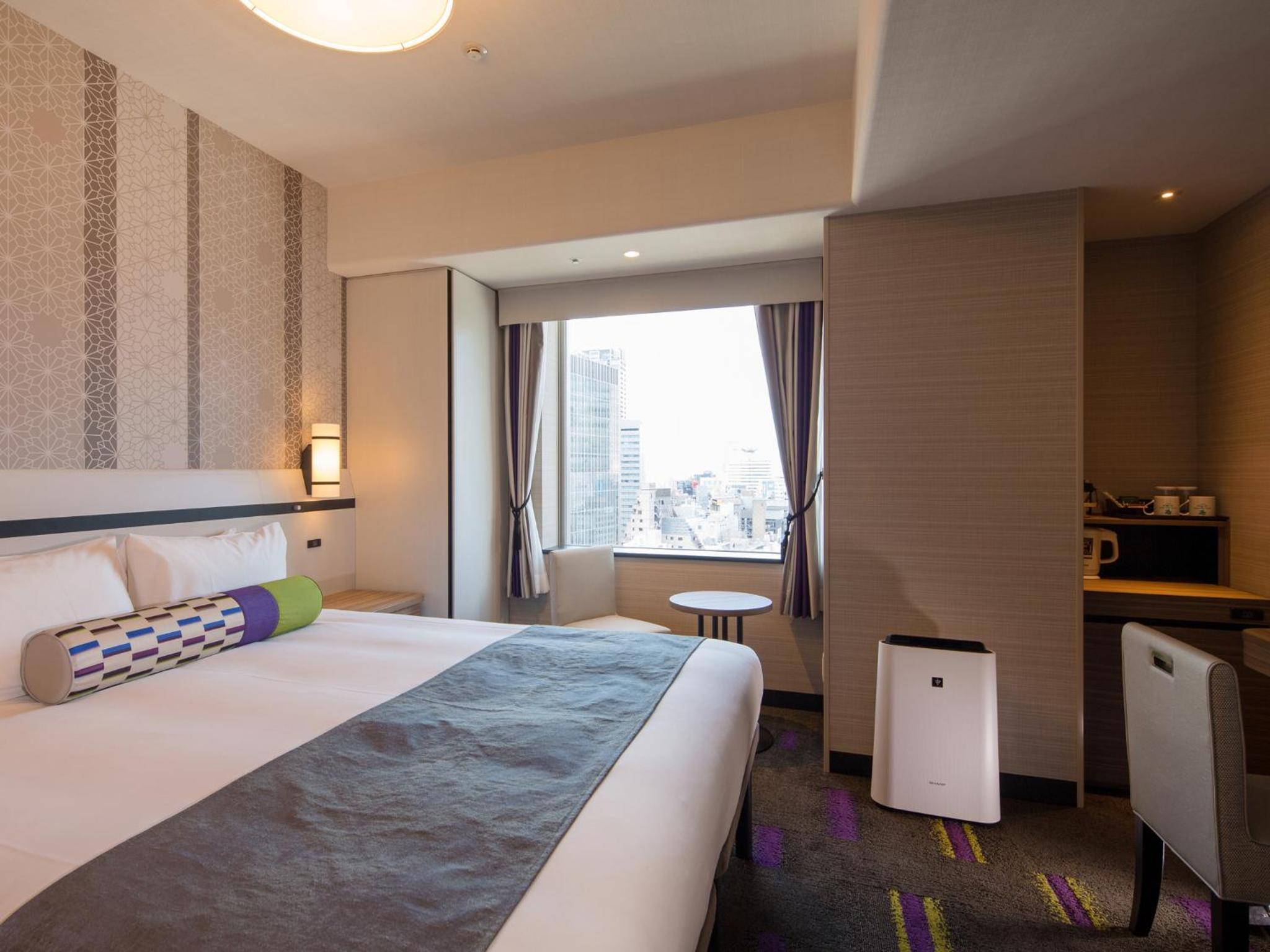 Hotel Monterey Le Frere Osaka offers air-conditioned rooms with modern amenities such as a flat-screen TV, safety deposit box, and private bathroom. Each room is elegantly furnished to provide guests with a comfortable stay.