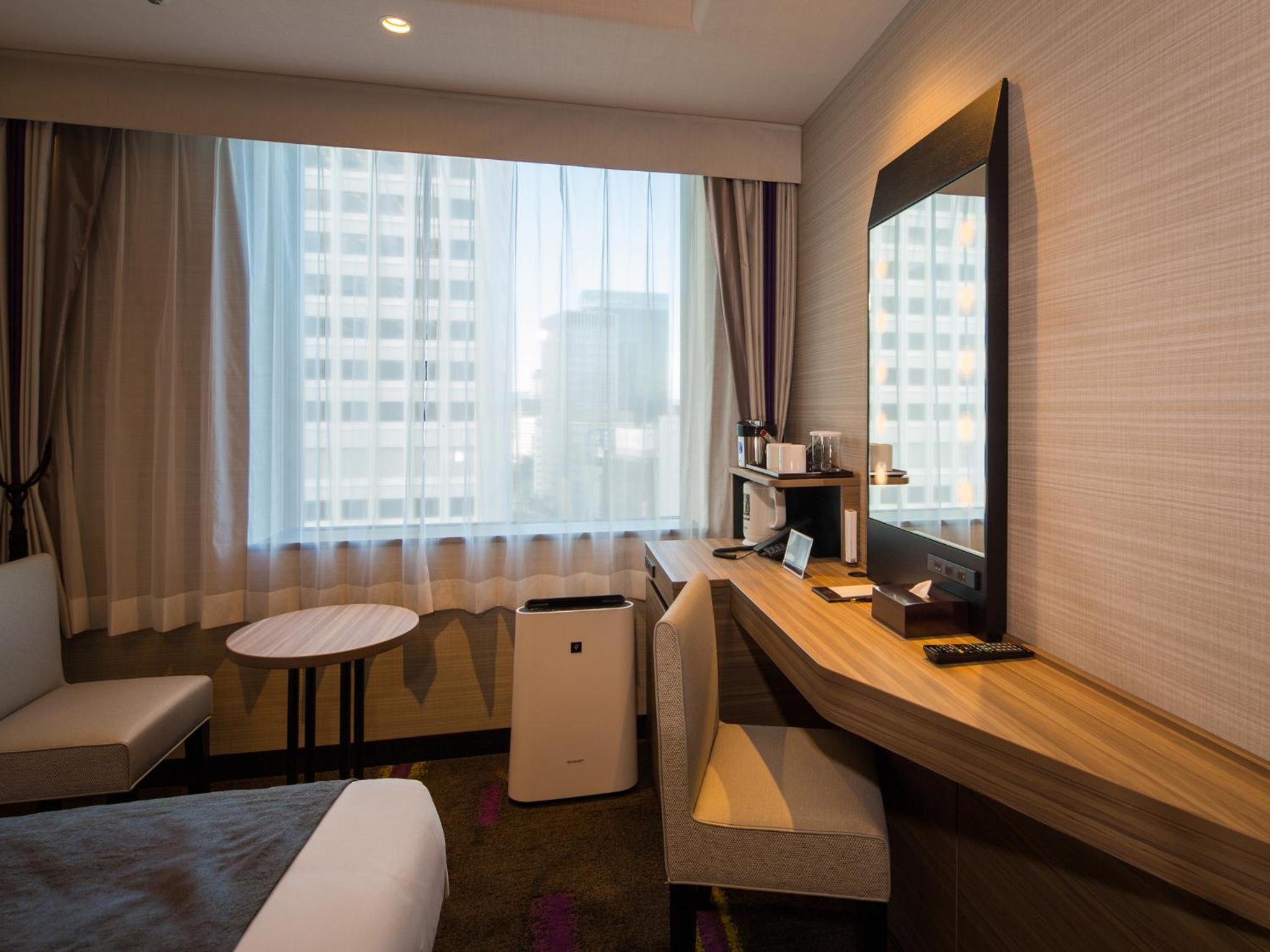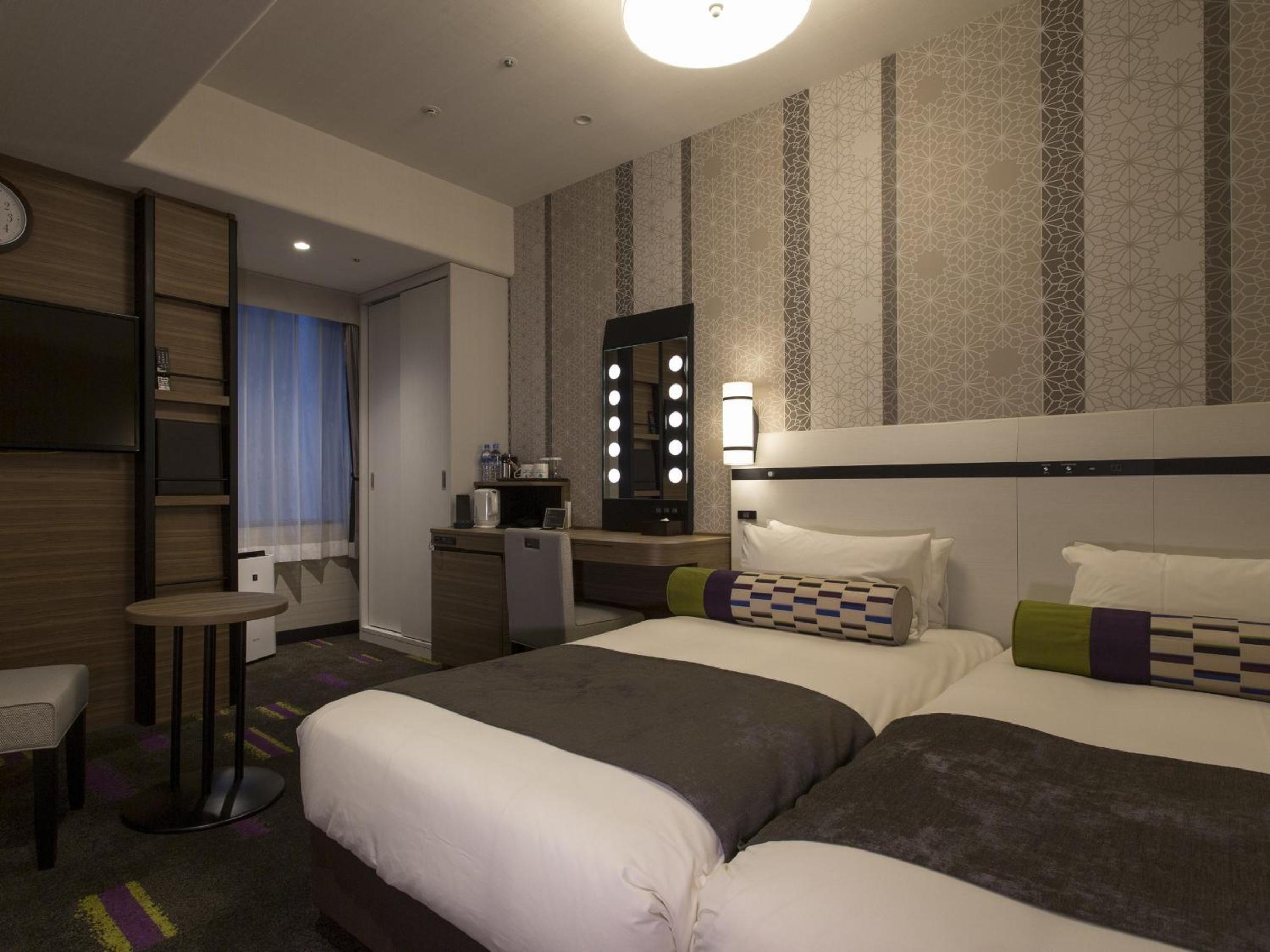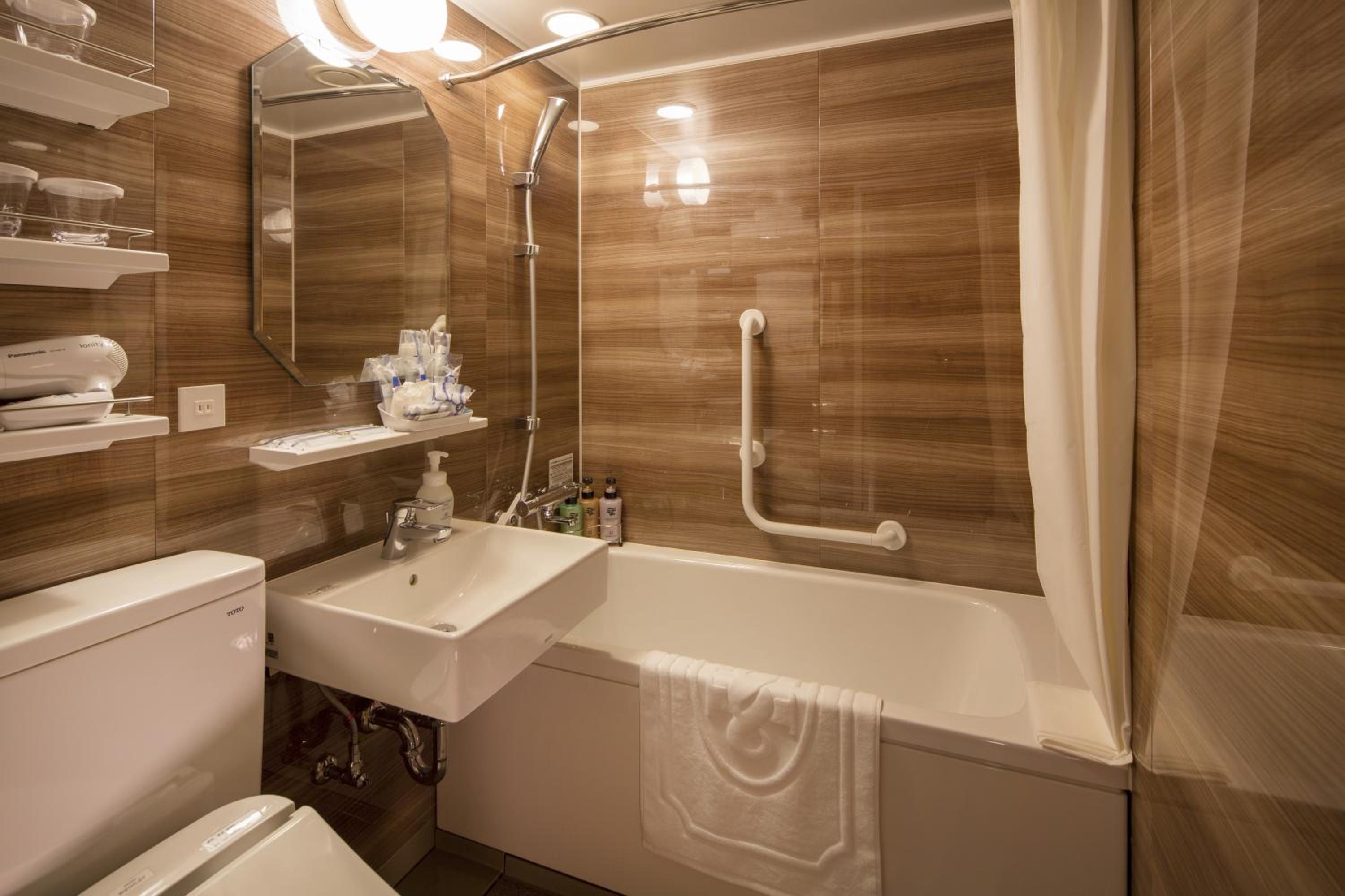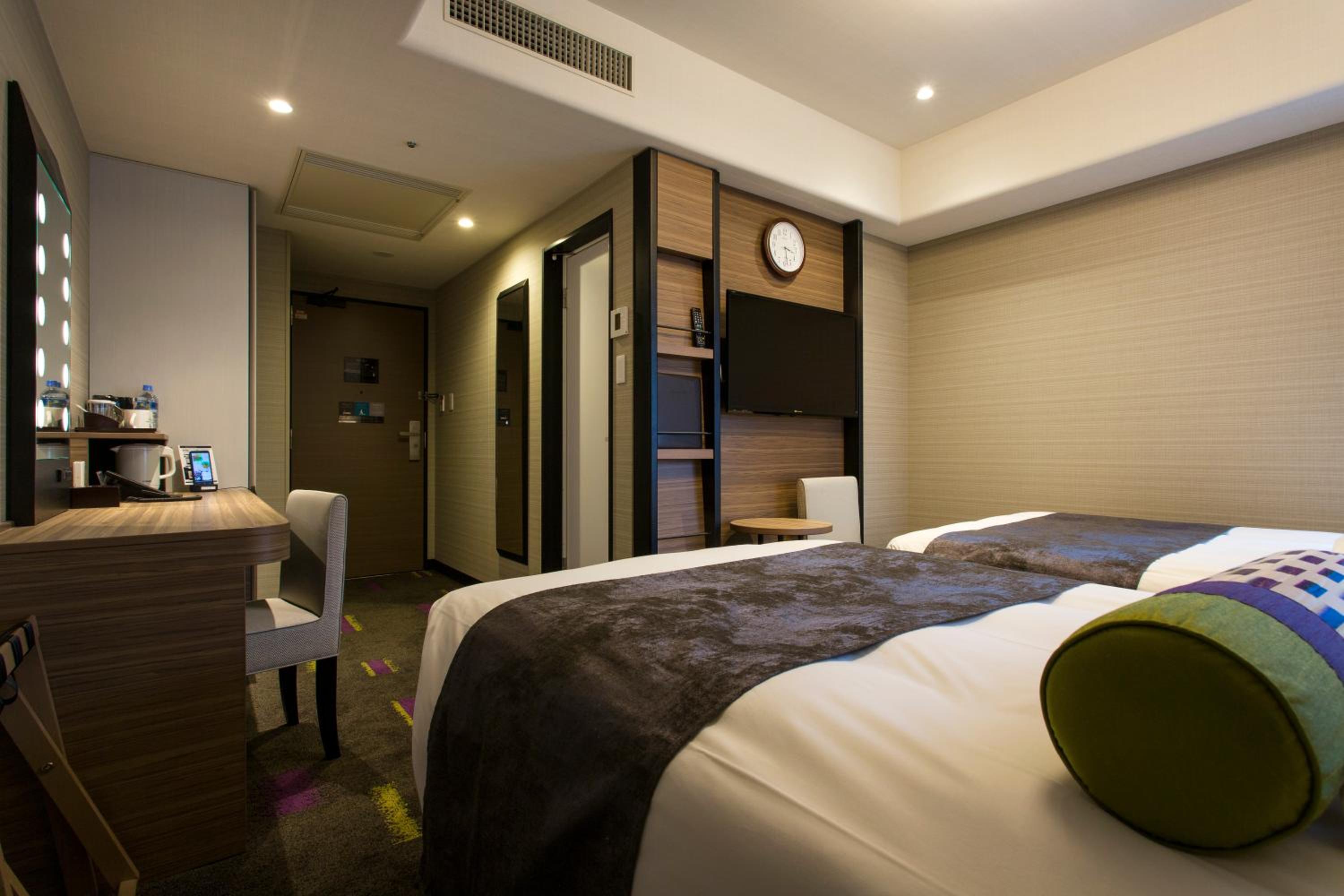 Hotel Monterey Le Frere Osaka offers air-conditioned rooms with modern amenities such as a flat-screen TV, safety deposit box, and private bathroom. Each room is elegantly furnished to provide guests with a comfortable stay.