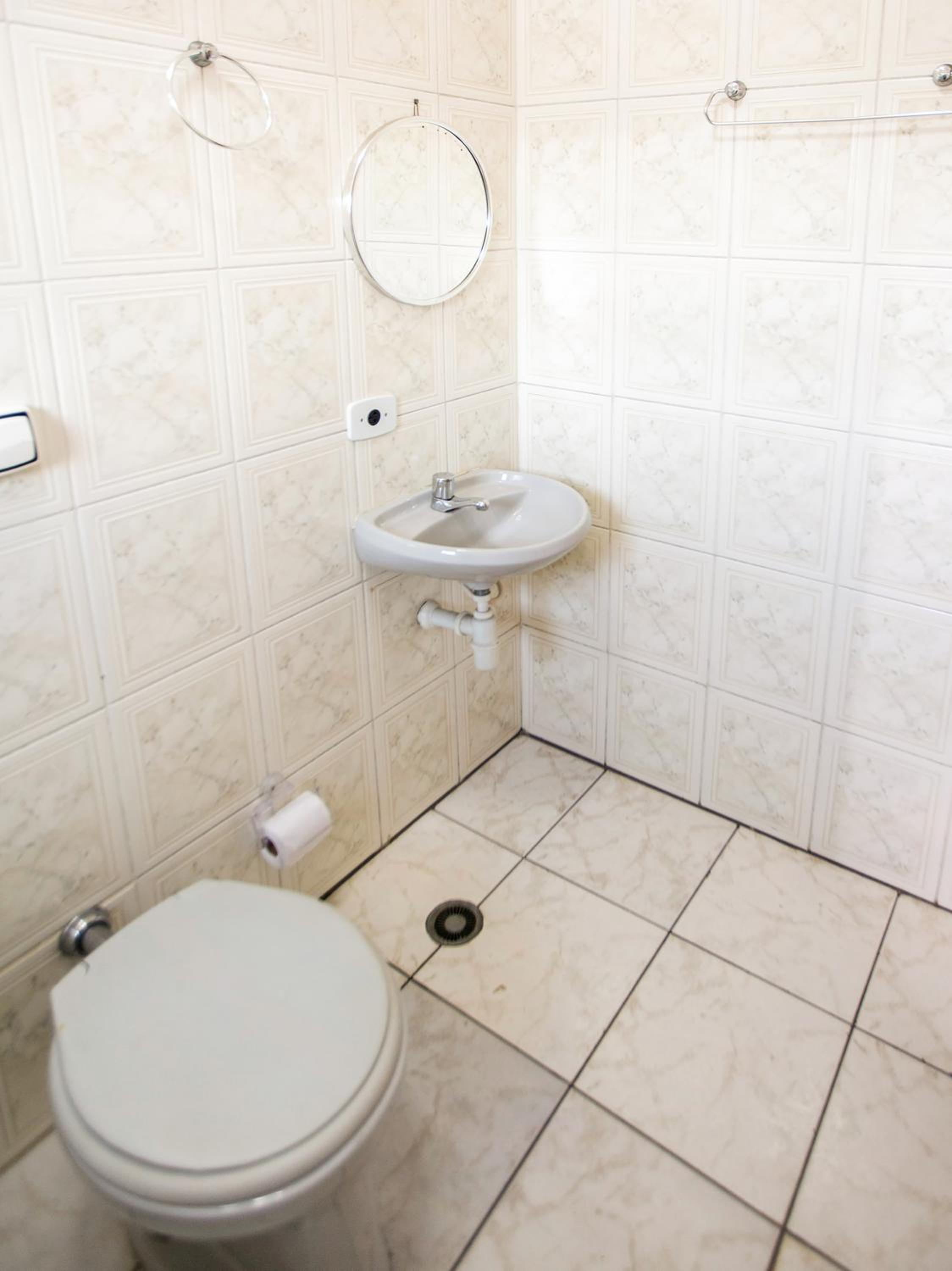 Paredes do quarto um pouco sua ,não tinha lugar para por o papel higiênico
