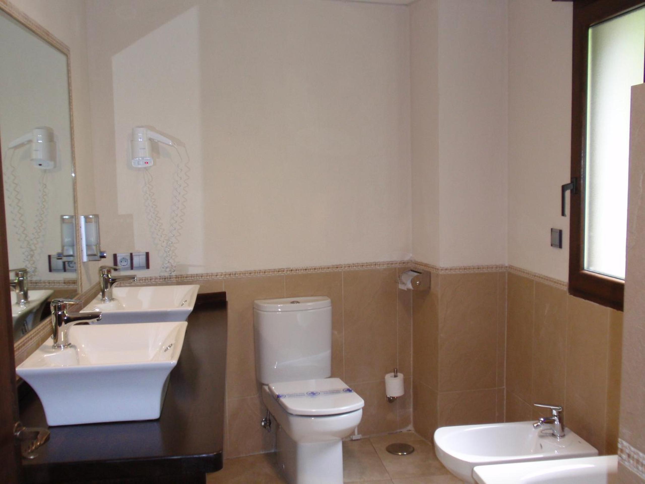 The country-style rooms are equipped with heating, air conditioning, flat-screen TV, minibar, and work desk. Indulge in traditional Spanish cuisine at the hotel's bar and restaurant, with options for à la carte or set menu dining.