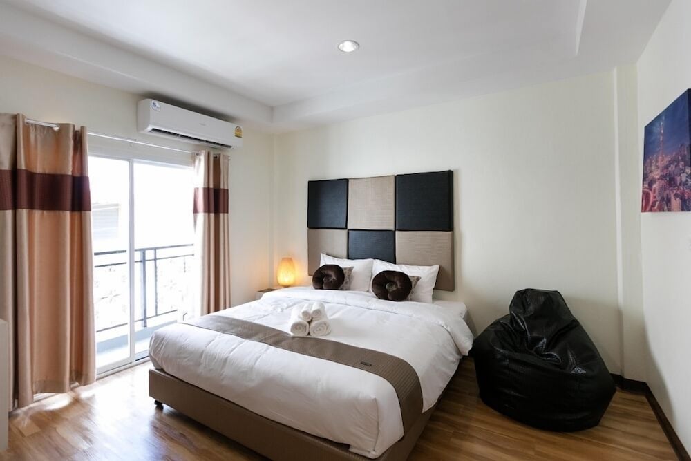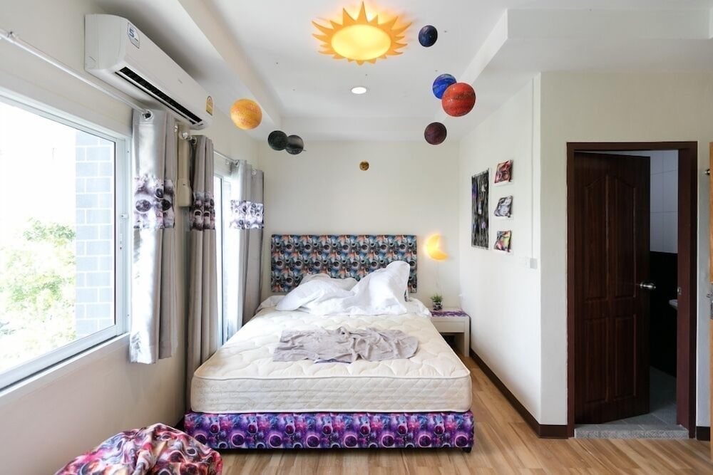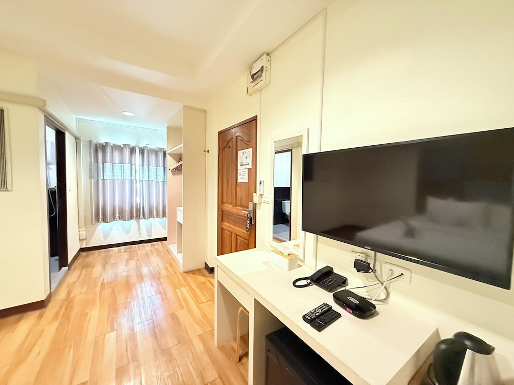 Siisti ja tilava huone parvekkeella. Oltiin vain yksi yö ja siihen tarkoitukseen sopiva vaihtoehto. sijaitsee muutaman sadan metrin päähän jurassic world experience paikasta. Kannattaa varautua käteisellä, ottavat 500 thb pantiksi avaimesta.