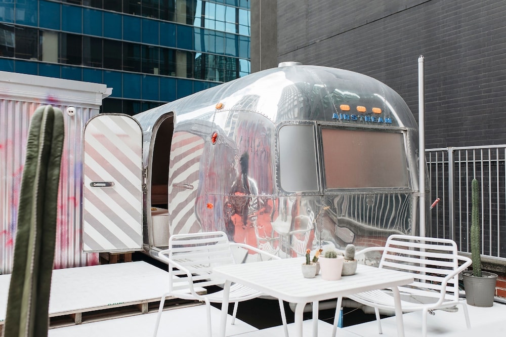 I'm probably the wrong demographic - this was hip, funky or whatever words are used nowadays, but basically an oversized caravan on top of a carpark in Melbourne's CBD. Access through a hole in the wall coffee shop, then up two flights of fire stairs with garishly painted pink walls. Expensive for what it was, but the complimentary mini bar was a nice touch.