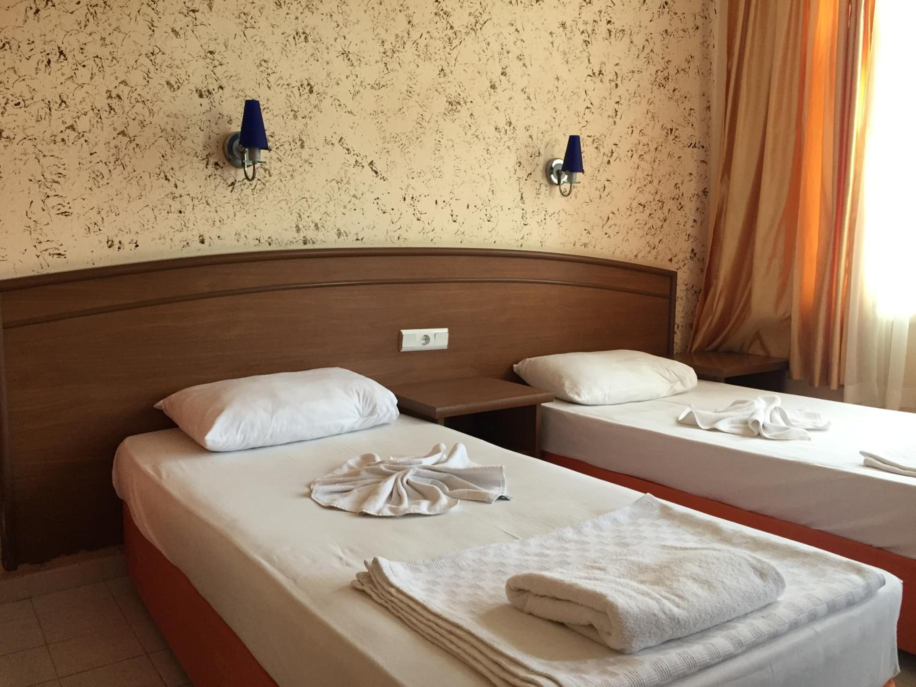 Location is good, just 5 minutes from the Cleopatra beach. We had breakfast and dinner included, the food was tasty. The bed was comfortable. The staff was ok. We came at night, didn't have any problems with check-in. Free parking next to the hotel.