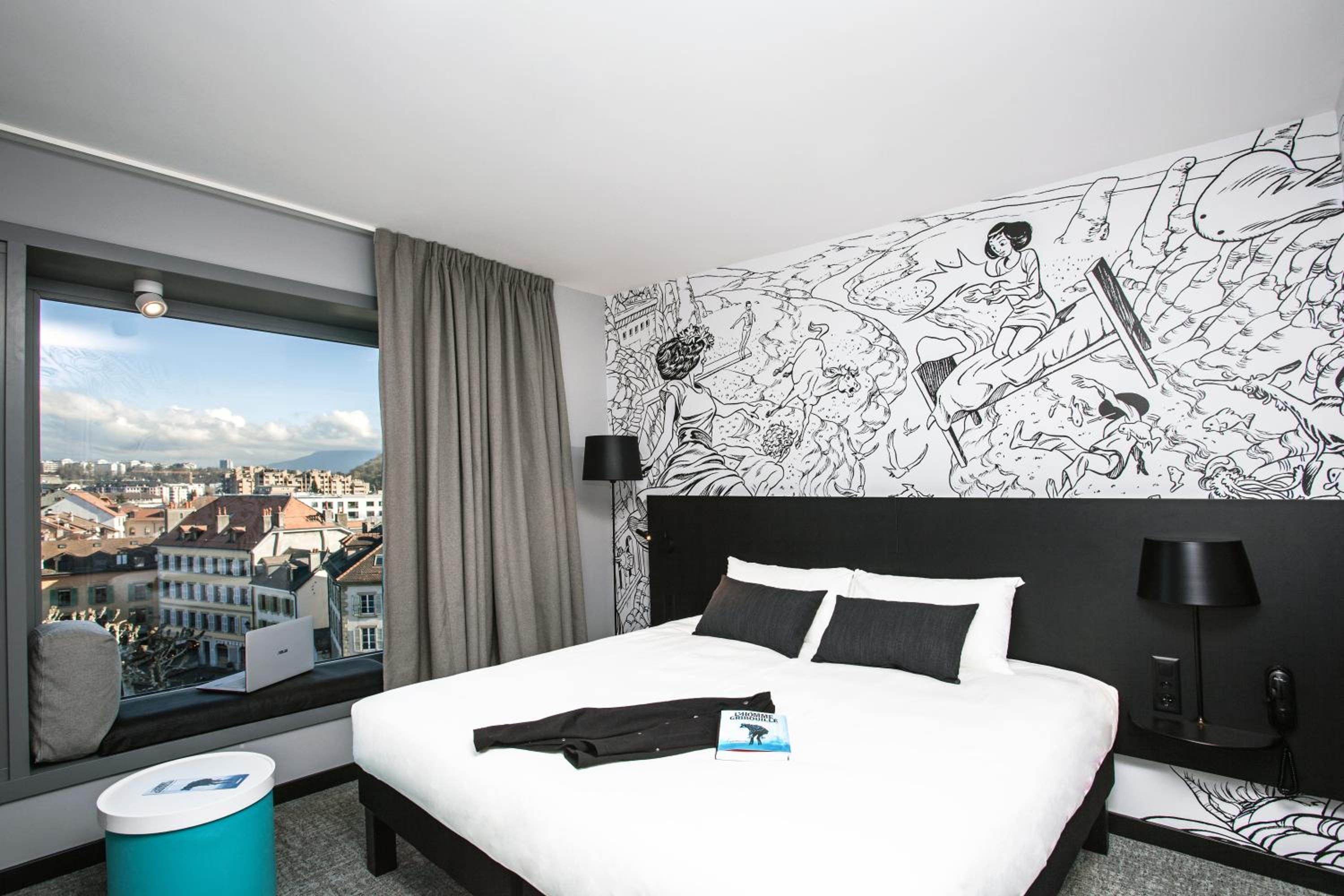 Discover the artistic charm of Ibis Styles Genève Carouge, where each floor is a canvas showcasing the creativity of 7 local comic artists.