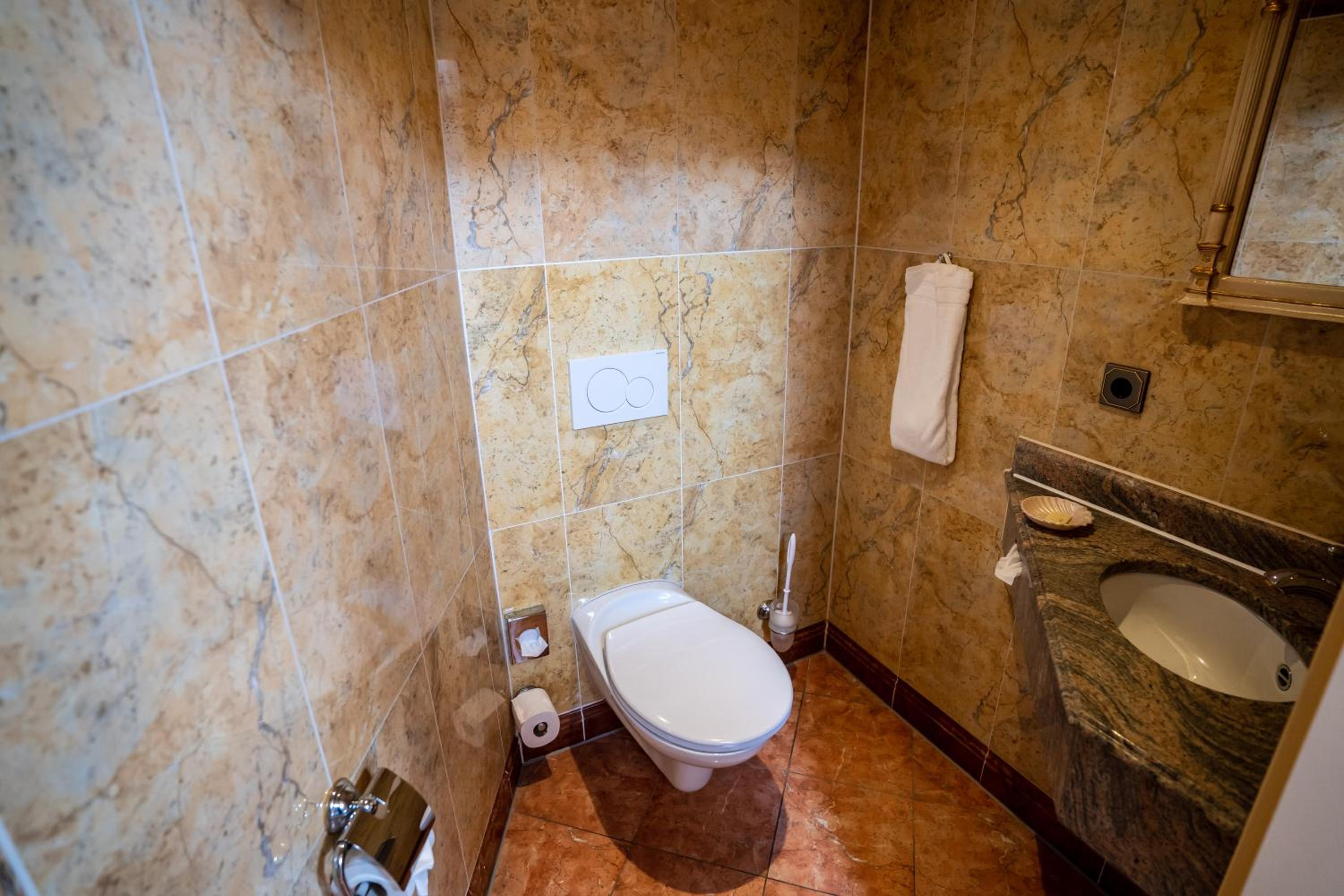 Das Badezimmer war so klein und verschachtelt, dass es mich an einen Campingwagen erinnerte. (ohne 5 Sterne).