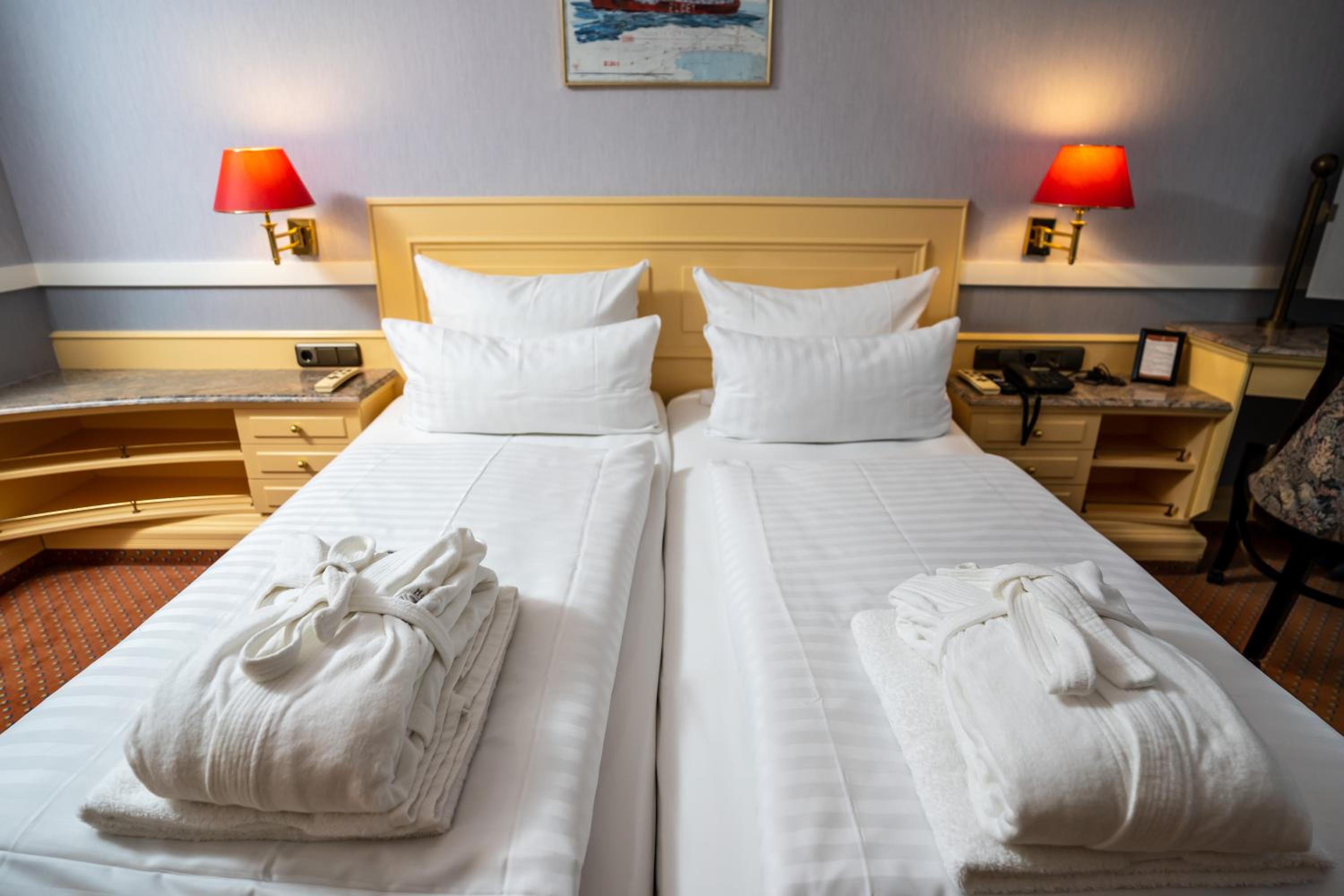 Hotel Strandperle offers 5-star accommodations with rooms featuring satellite TV, Sky channels, and bathrobes. Some rooms even provide stunning views of the North Sea and Neuwerk Island, ensuring a memorable stay for every guest.