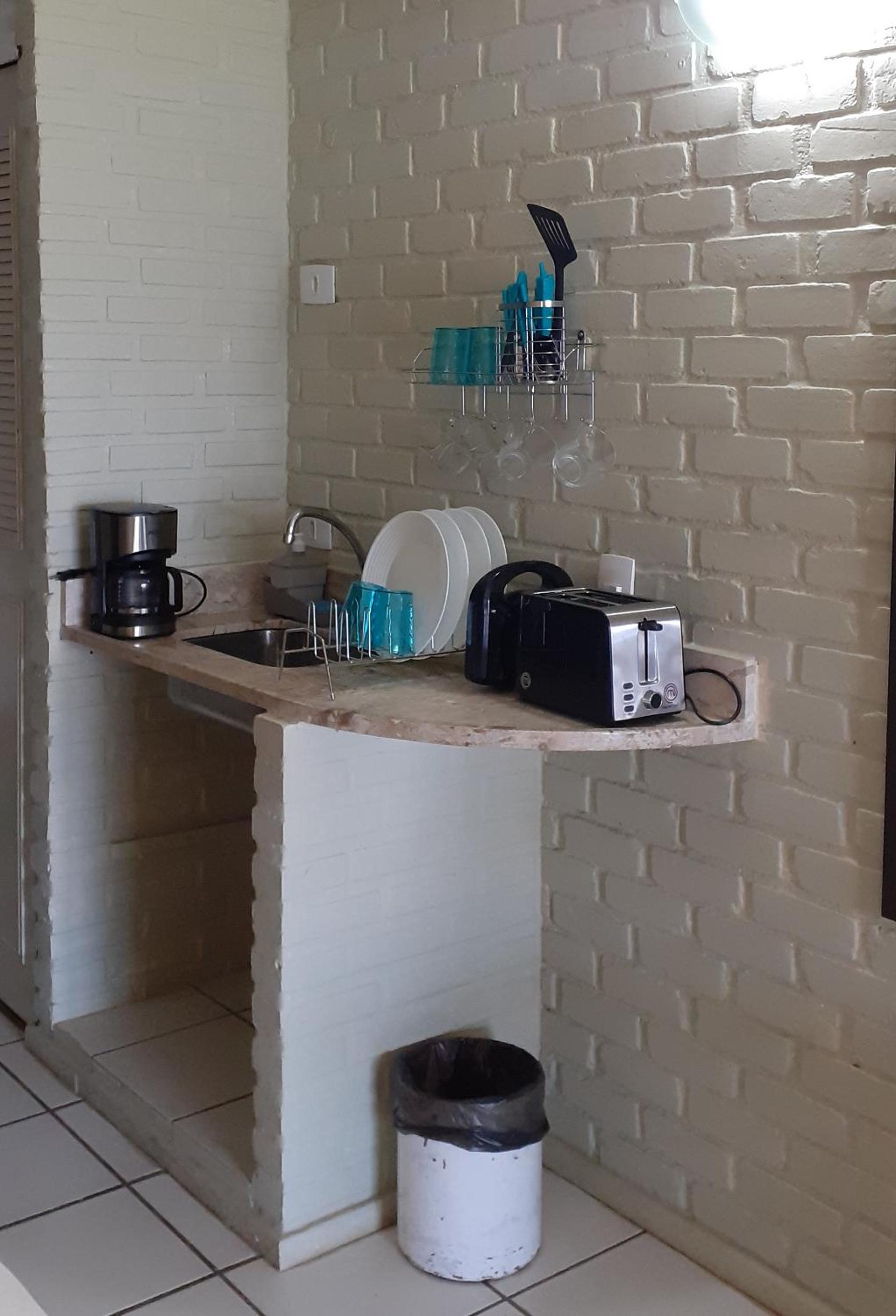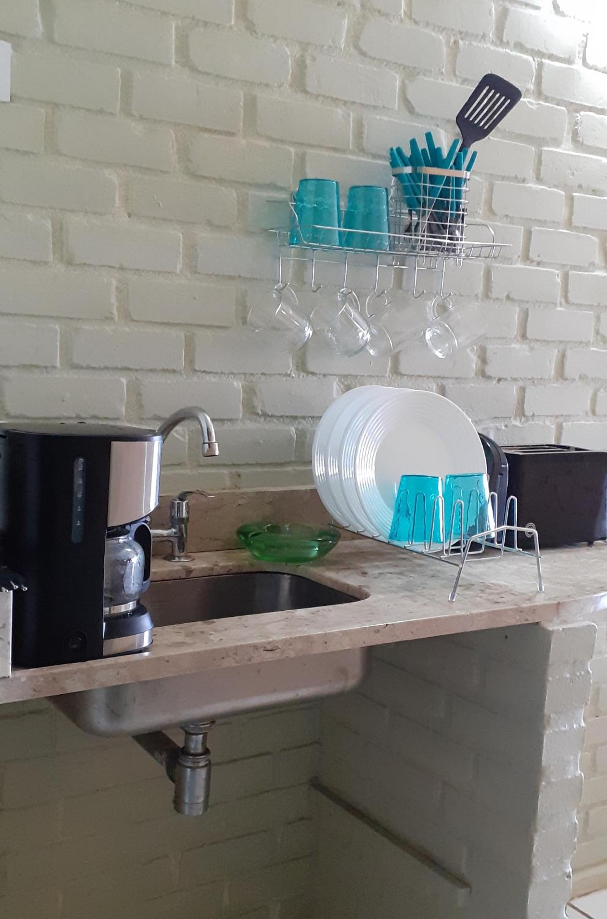 Deveria haver um fogão mesmo que de duas bocas, cadeiras no jardim é aquele tipo mais básico que existe de plásticoo e o quarto fica um pouco distante da recepção e do estacionamento.