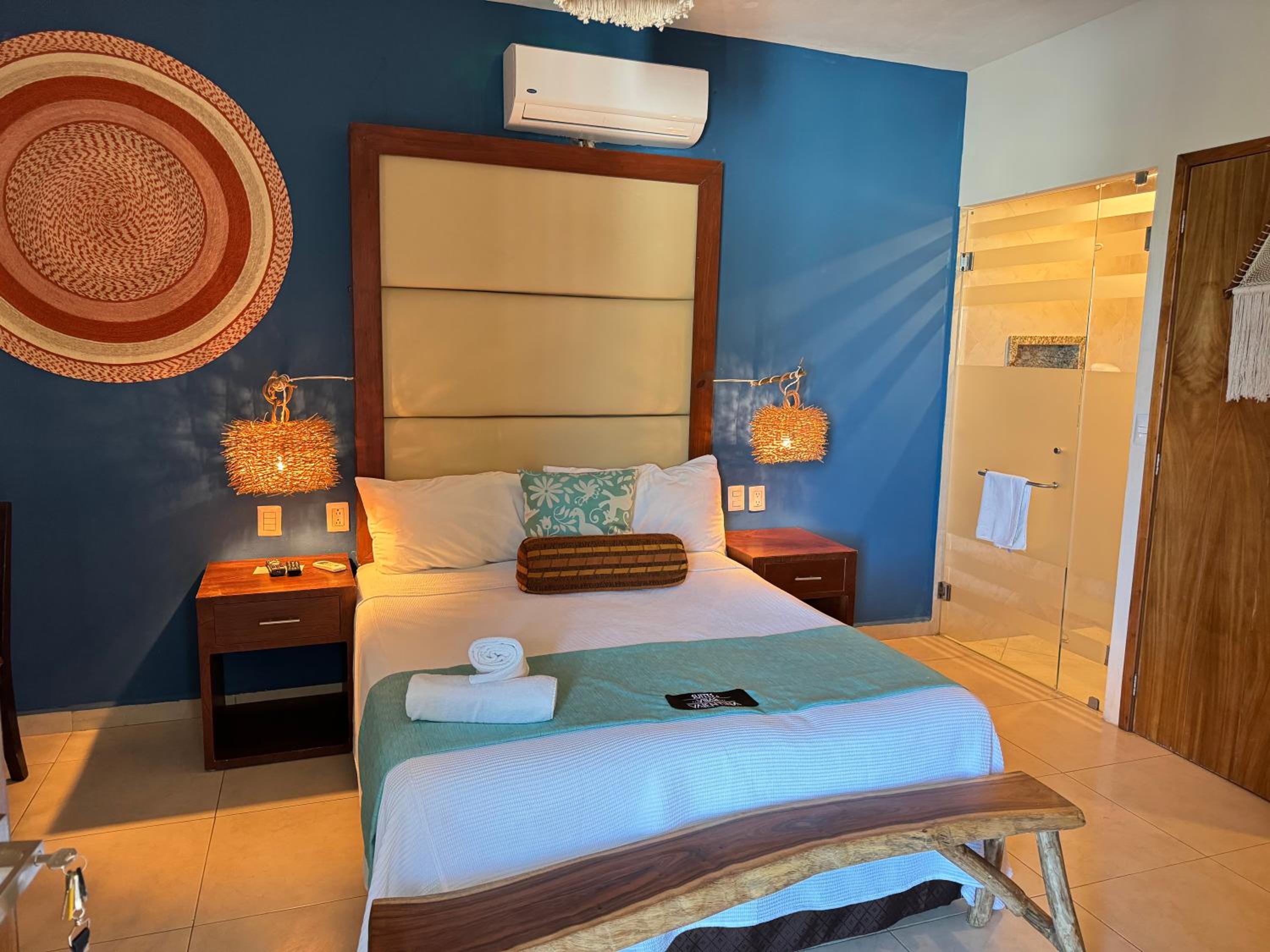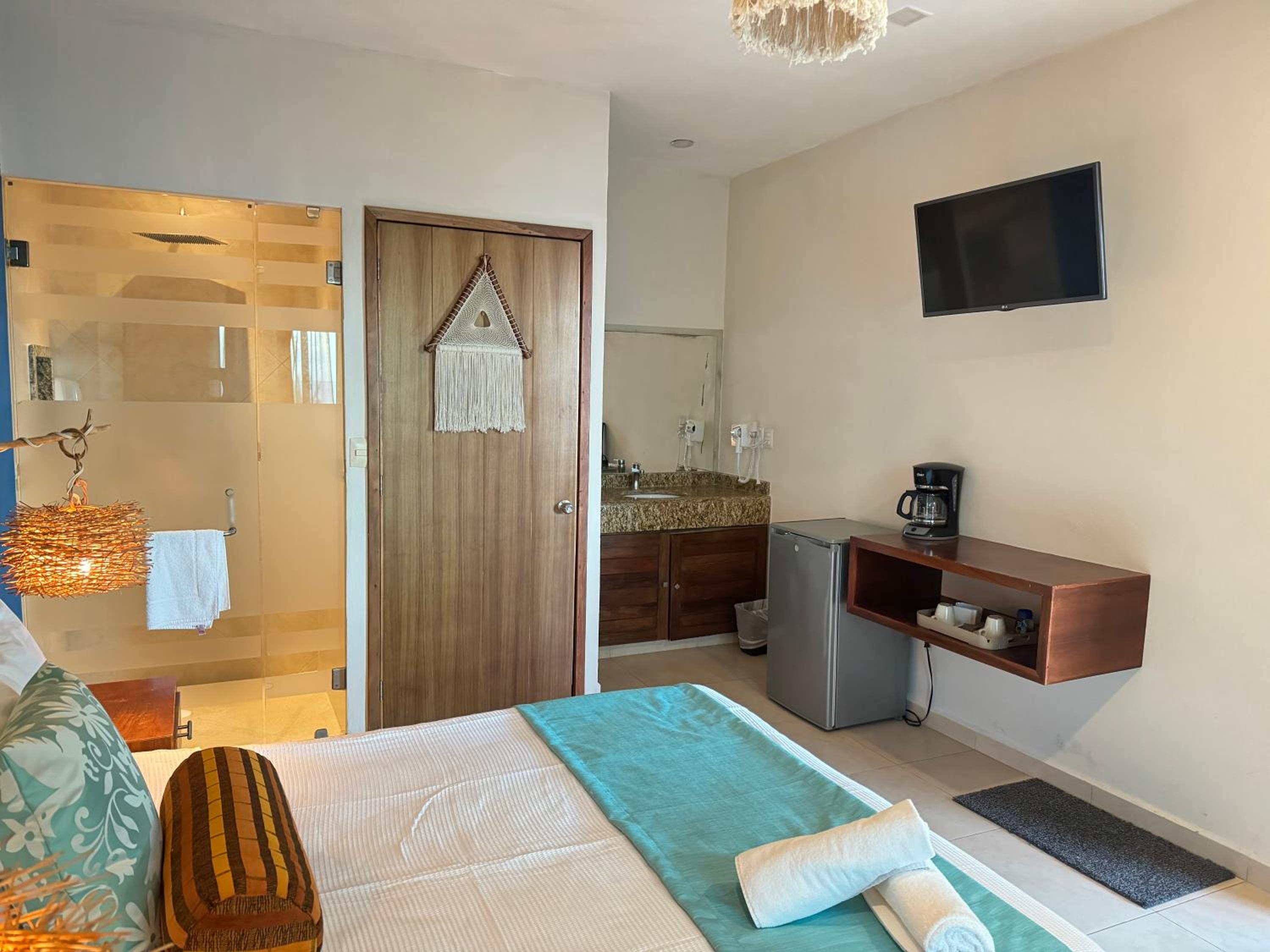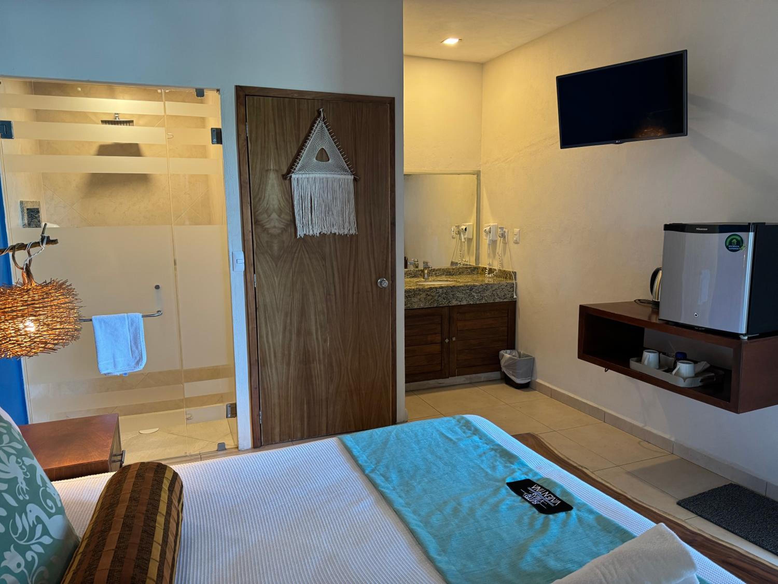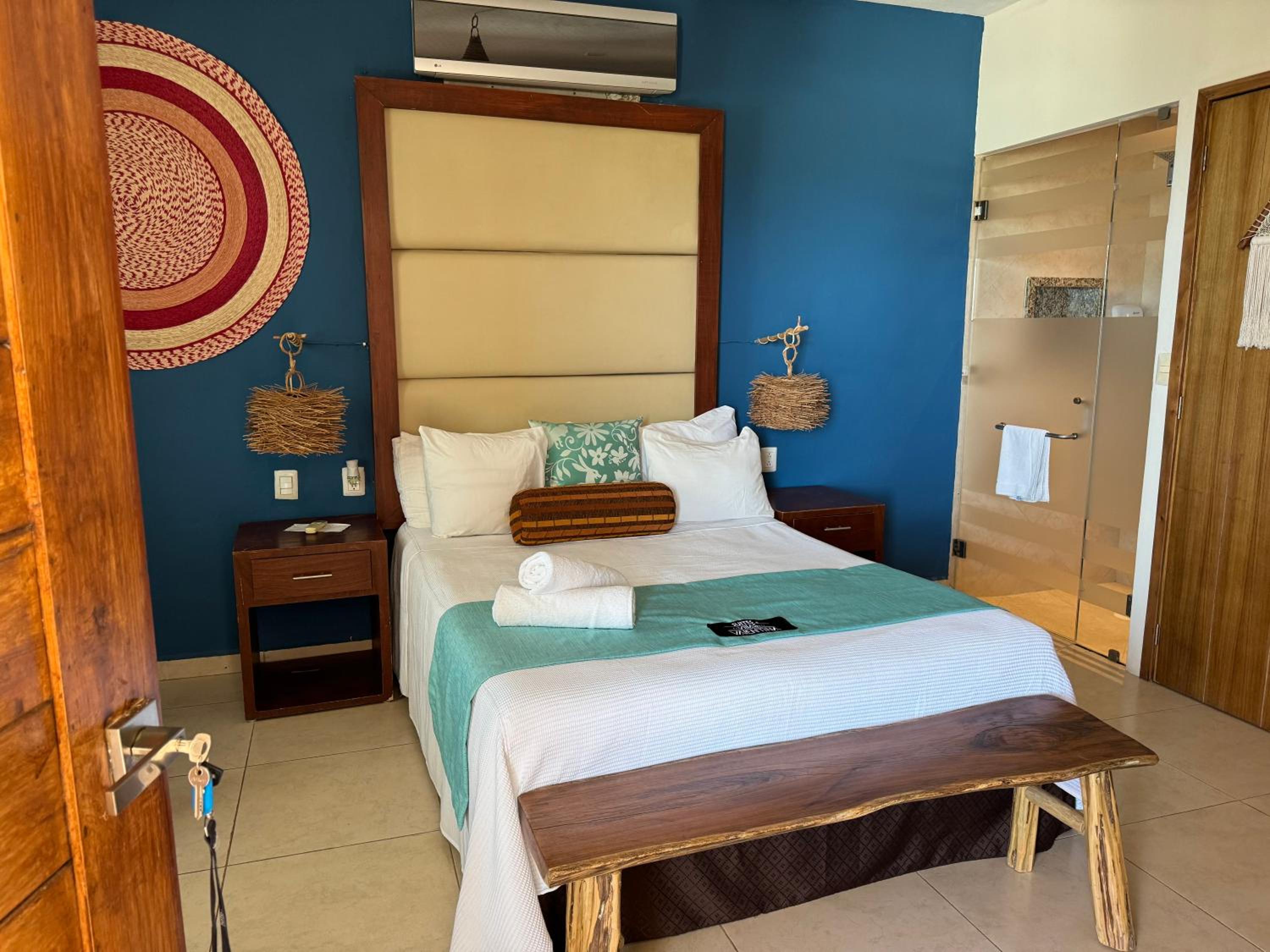 We had the best stay here in Suites Valentina during our 2 weeks roadtrip in Mexico! We stayed 2 nights. The room is spacious, cozy, and in excellent condition. It is beautifully decorated with lovely details. I have never slept in such a wonderfully soft bed—and all those pillows! The kitchen is well equipped, with a large fridge-freezer, a toaster, and a kettle. The shower has plenty of hot water and good water pressure. The room has a balcony overlooking the restaurant. The rooftop terrace offers stunning sea views, and no one else used it during my stay—such peace and quiet! The room has efficient air conditioning and fresh air. The staff are friendly and cheerful, and their messages were warm and provided clear information. The center of the village is just behind a few steps, easy distance where ever you want to go.