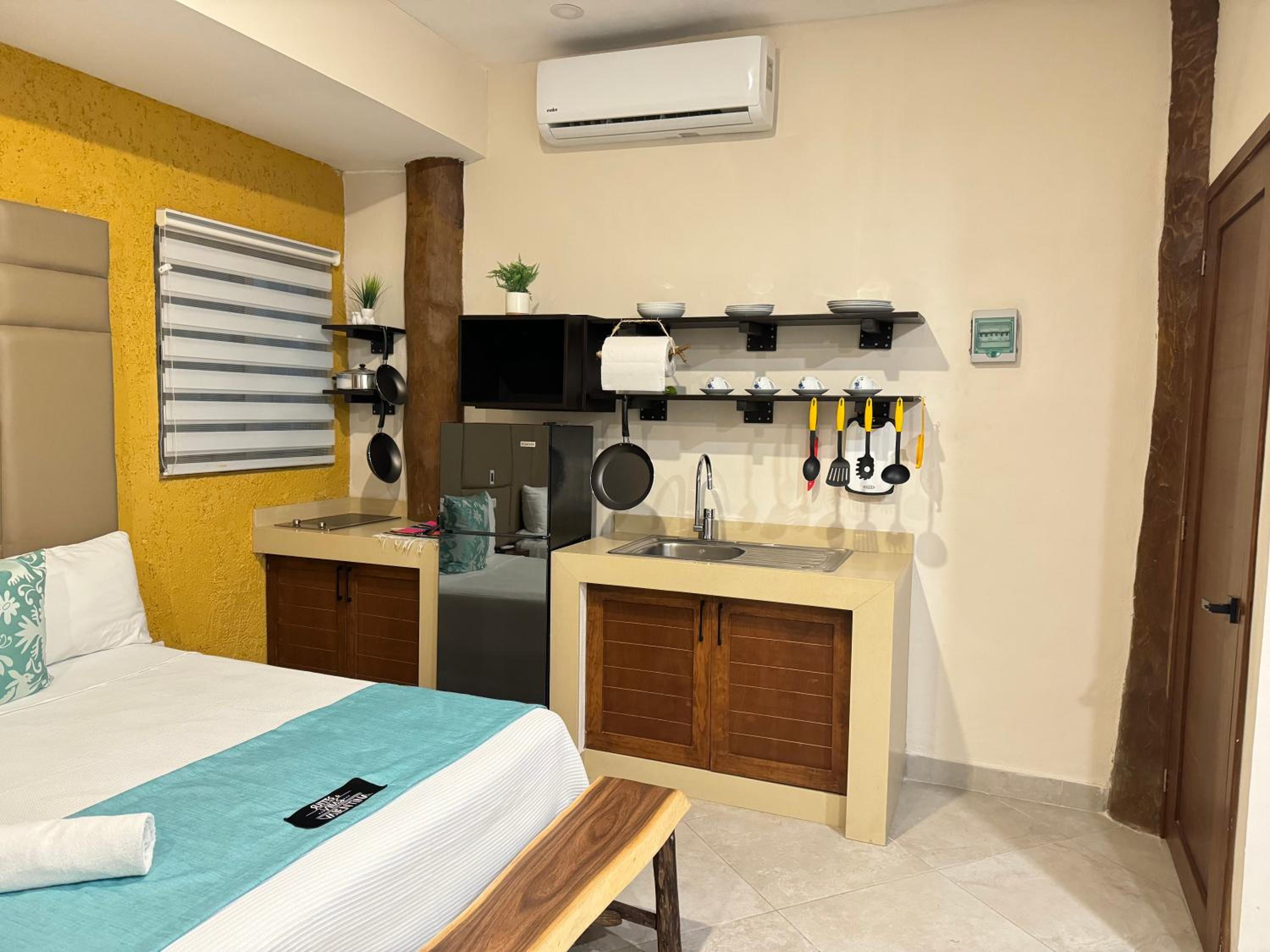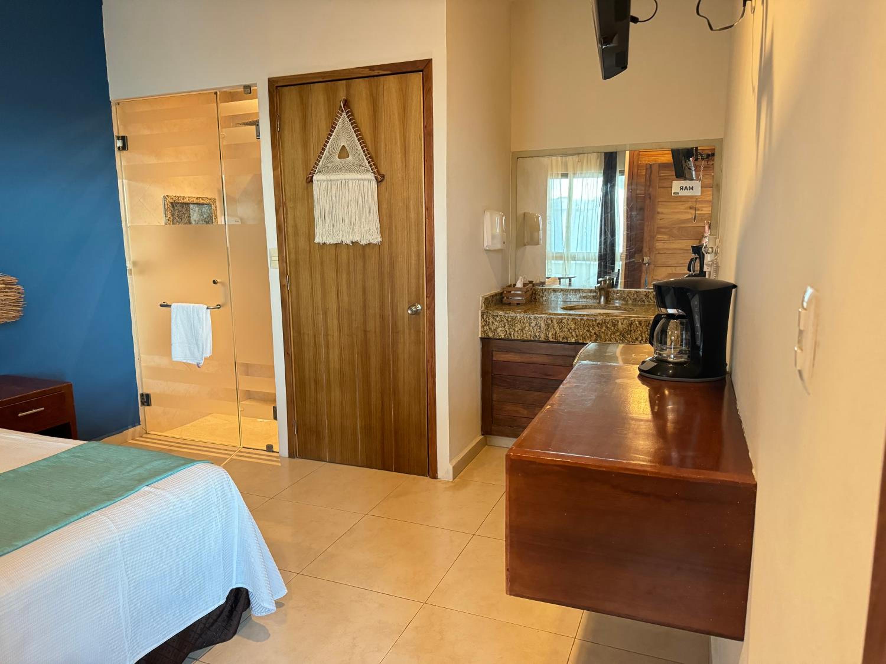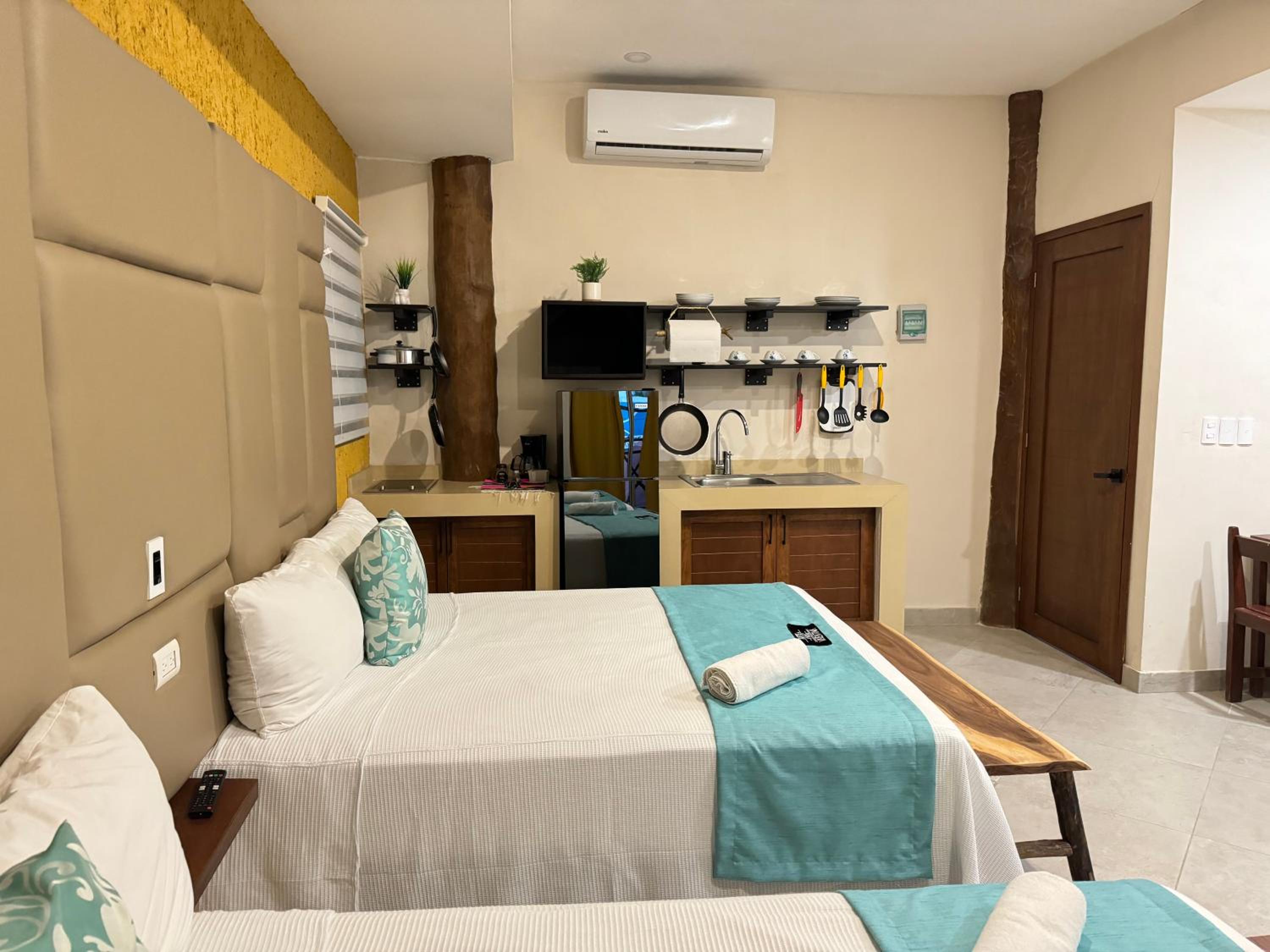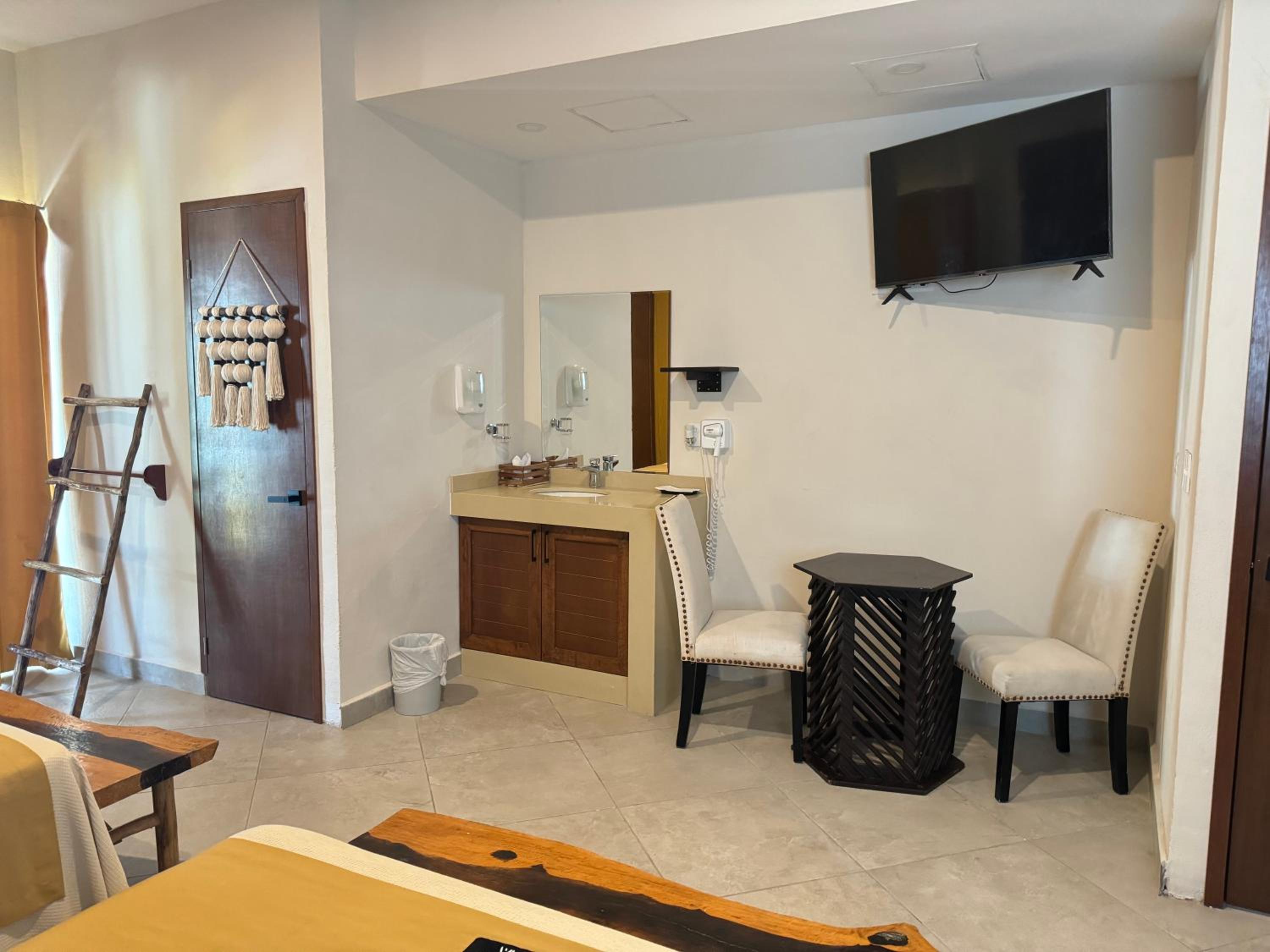 We had the best stay here in Suites Valentina during our 2 weeks roadtrip in Mexico! We stayed 2 nights. The room is spacious, cozy, and in excellent condition. It is beautifully decorated with lovely details. I have never slept in such a wonderfully soft bed—and all those pillows! The kitchen is well equipped, with a large fridge-freezer, a toaster, and a kettle. The shower has plenty of hot water and good water pressure. The room has a balcony overlooking the restaurant. The rooftop terrace offers stunning sea views, and no one else used it during my stay—such peace and quiet! The room has efficient air conditioning and fresh air. The staff are friendly and cheerful, and their messages were warm and provided clear information. The center of the village is just behind a few steps, easy distance where ever you want to go.