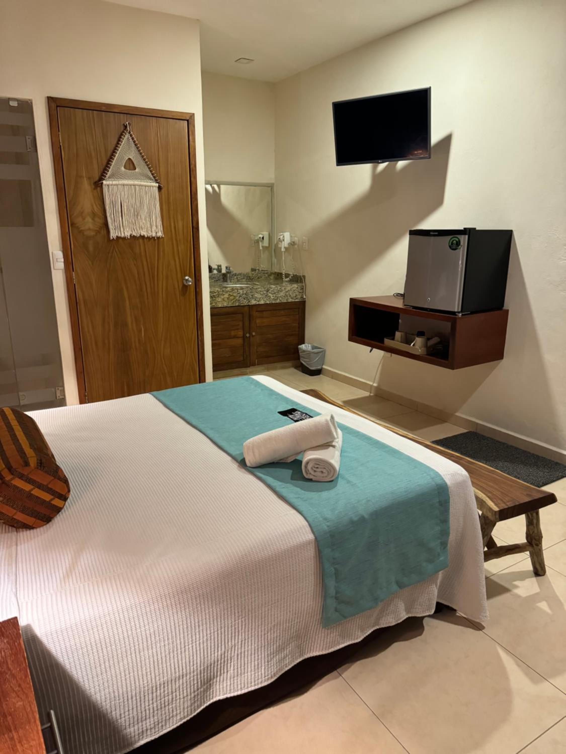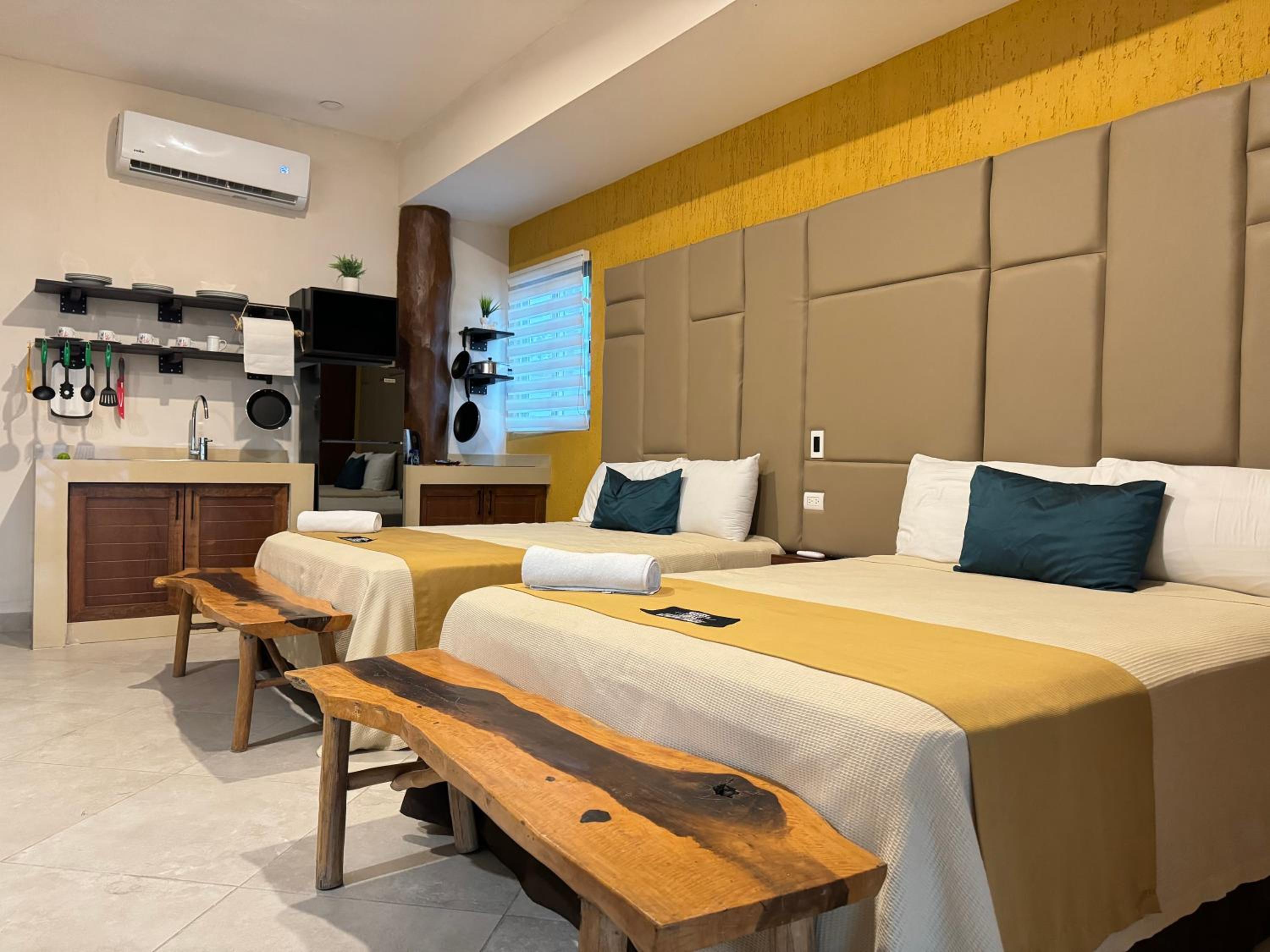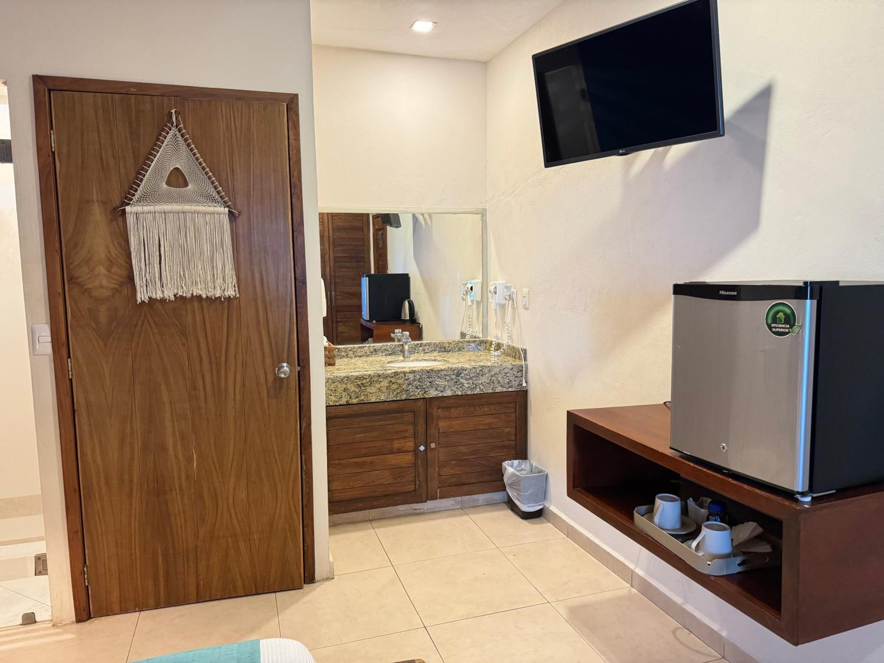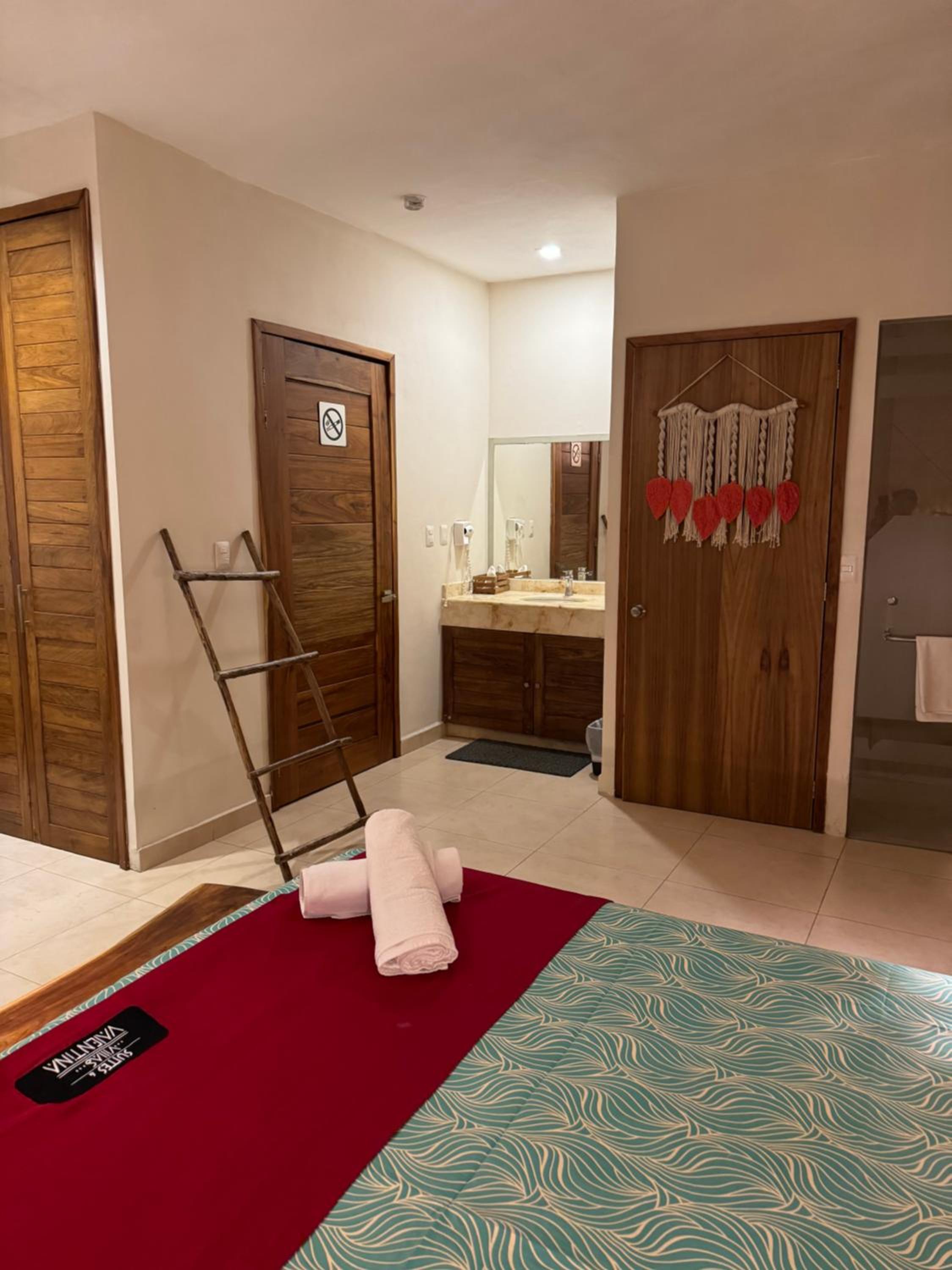 We had the best stay here in Suites Valentina during our 2 weeks roadtrip in Mexico! We stayed 2 nights. The room is spacious, cozy, and in excellent condition. It is beautifully decorated with lovely details. I have never slept in such a wonderfully soft bed—and all those pillows! The kitchen is well equipped, with a large fridge-freezer, a toaster, and a kettle. The shower has plenty of hot water and good water pressure. The room has a balcony overlooking the restaurant. The rooftop terrace offers stunning sea views, and no one else used it during my stay—such peace and quiet! The room has efficient air conditioning and fresh air. The staff are friendly and cheerful, and their messages were warm and provided clear information. The center of the village is just behind a few steps, easy distance where ever you want to go.
